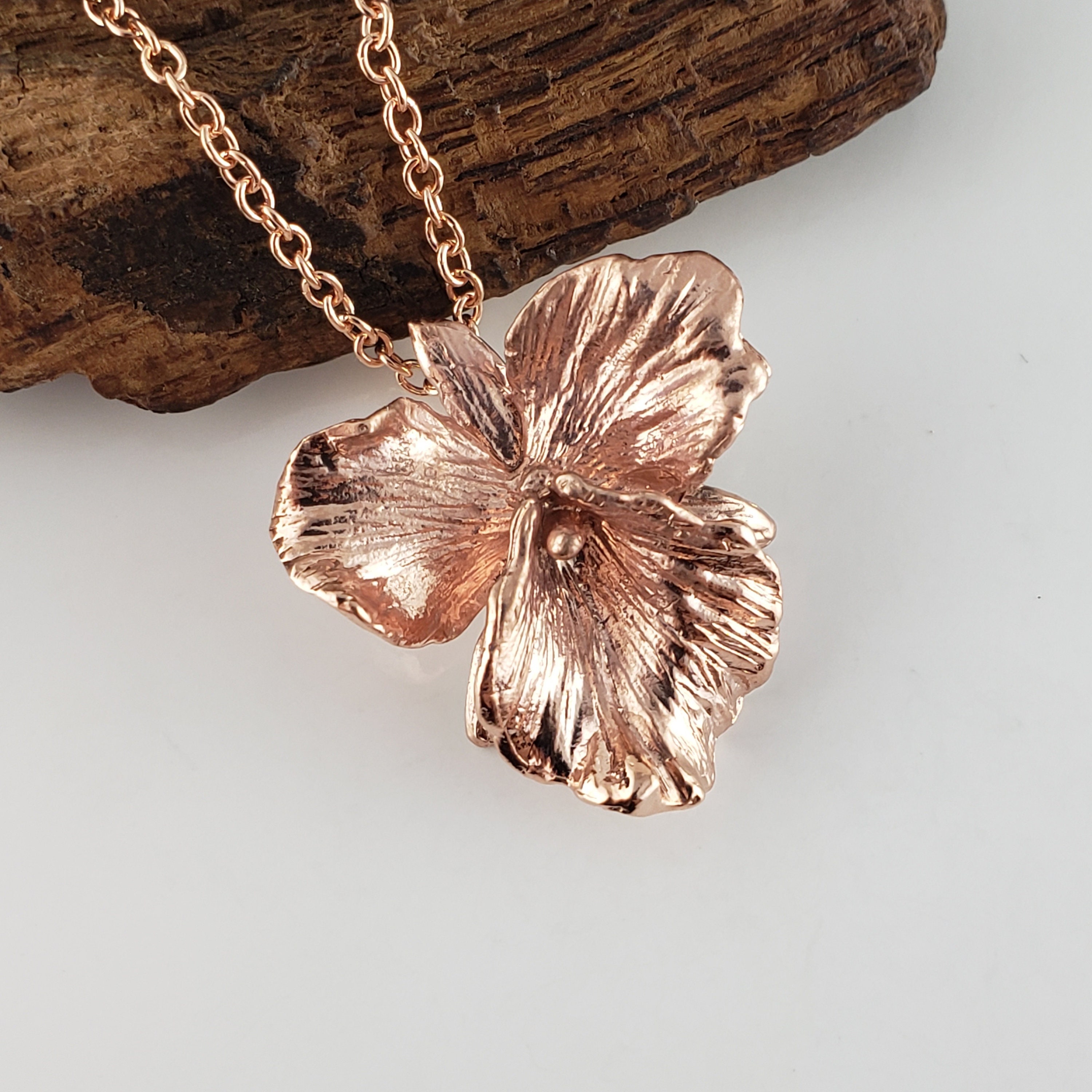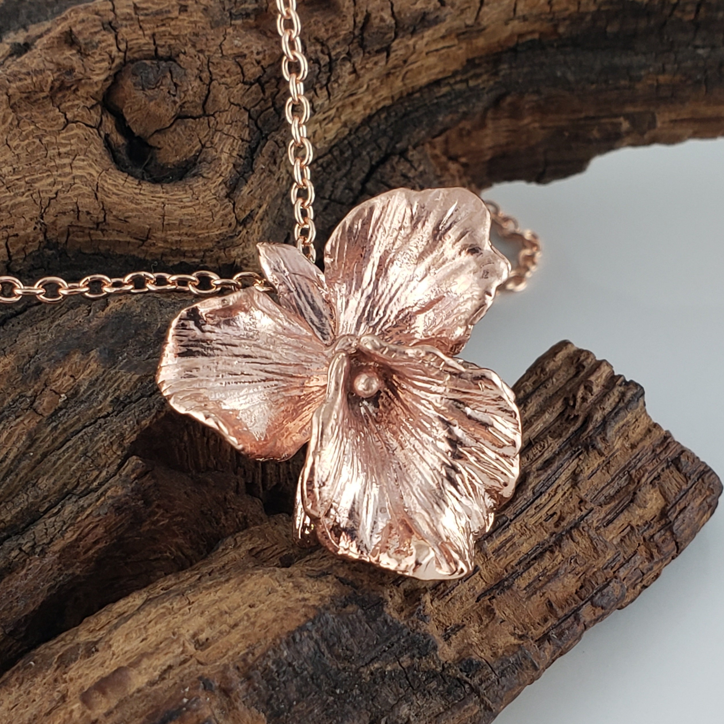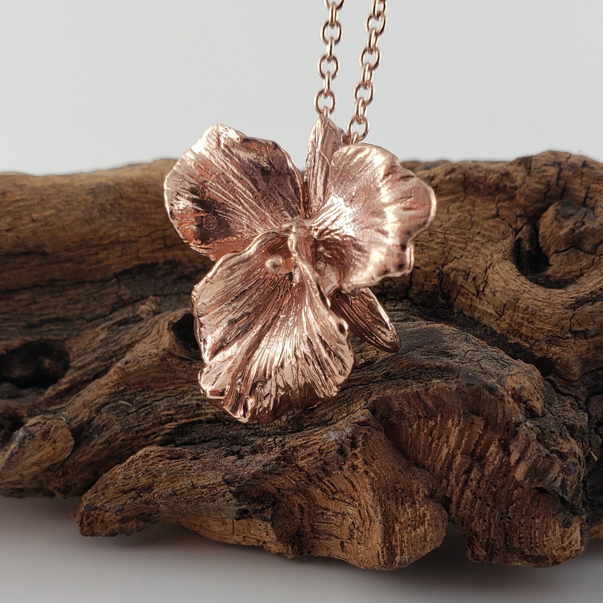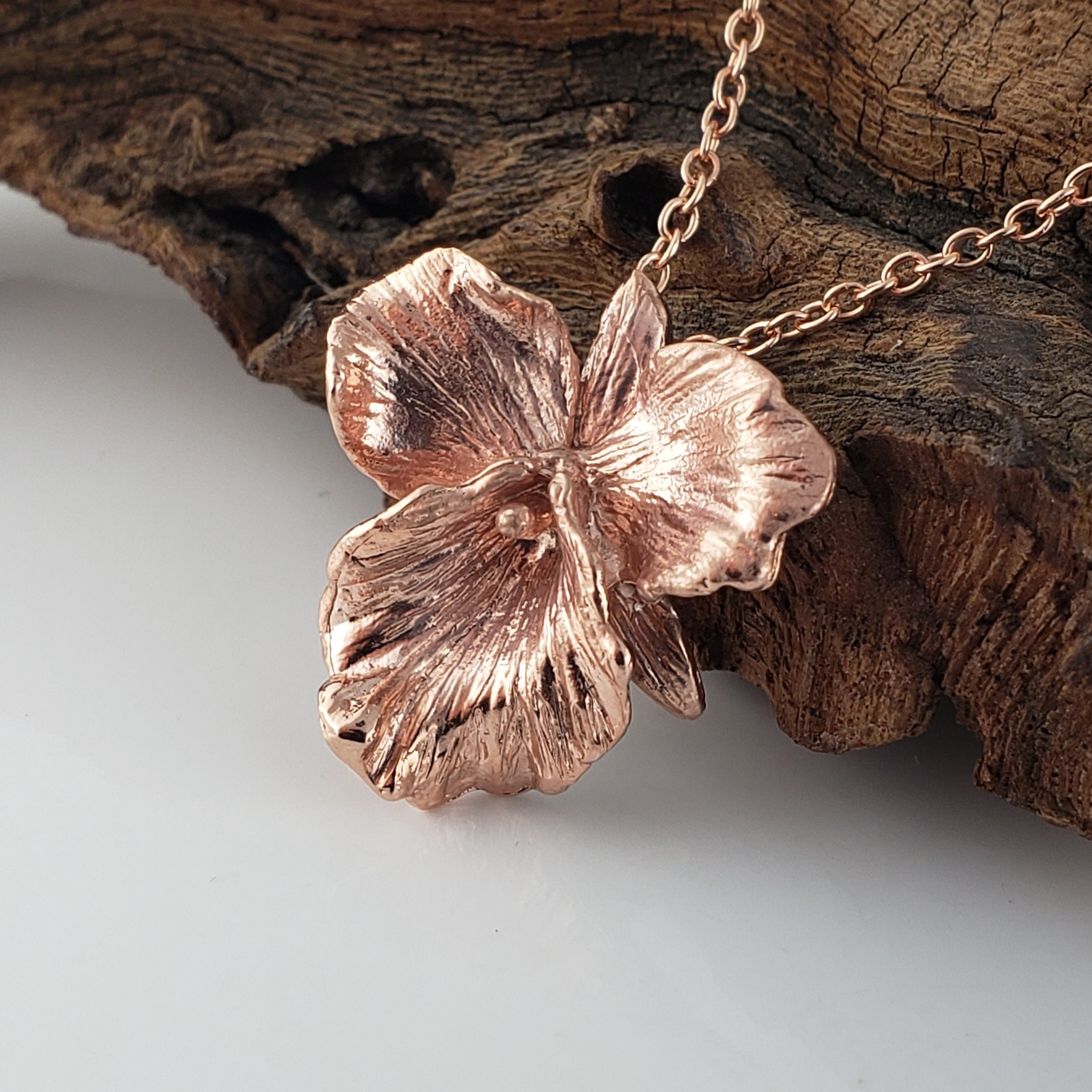 92.5 Sterling Silver Orchid Pendant plated in 14k Rose Gold, pendant only or with Gold Filled Cable Chain
