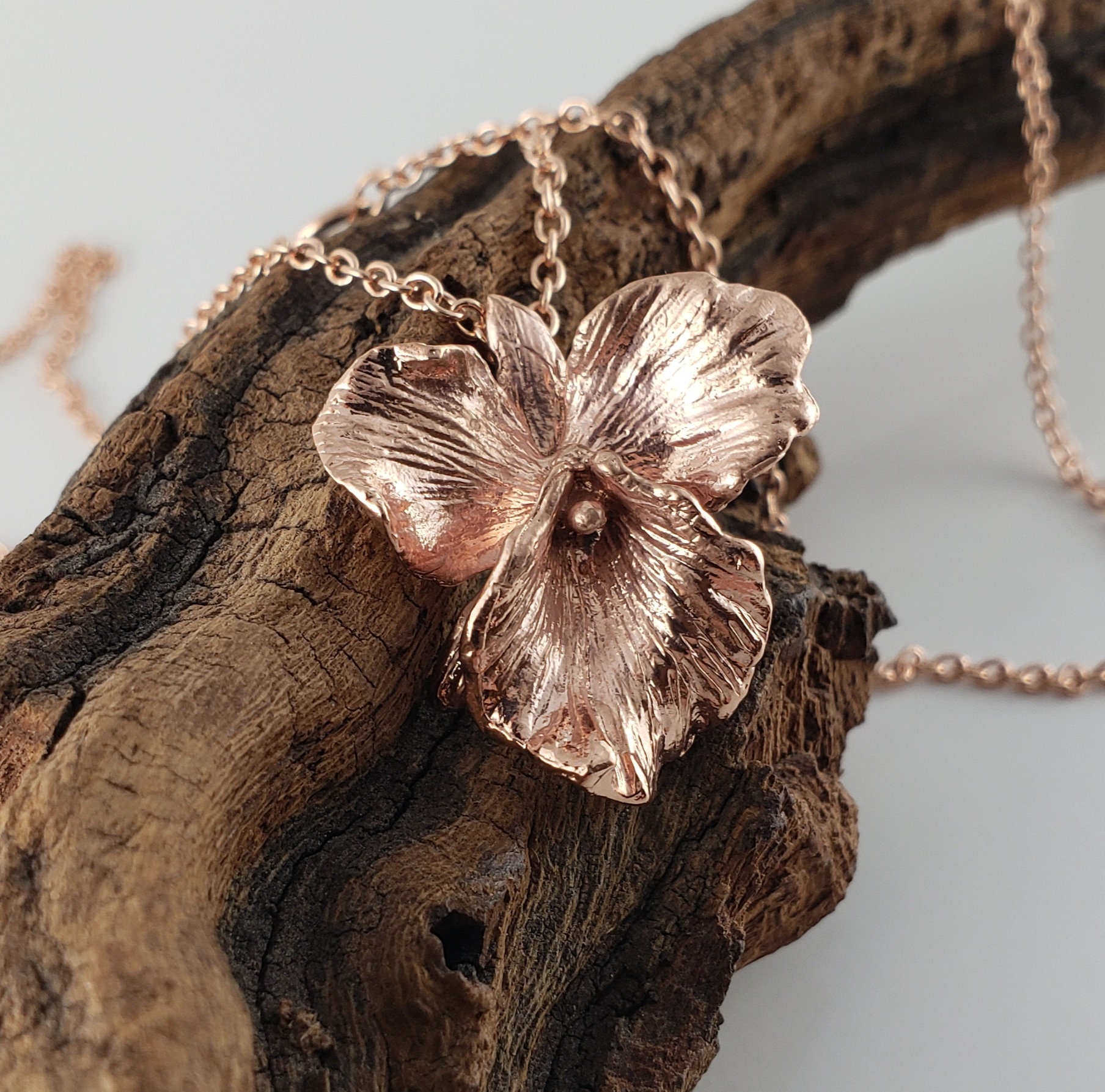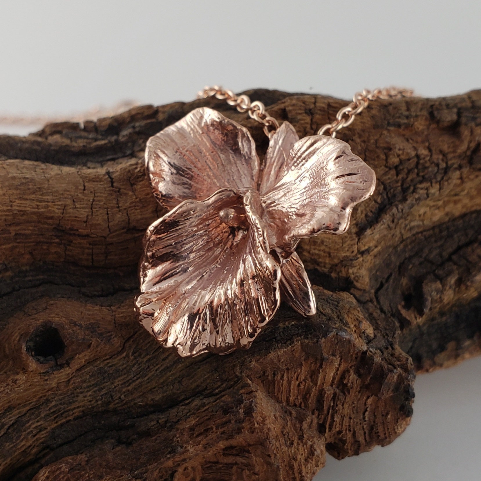 Rose Gold Plated Sterling Silver Cattleya Orchid Necklace - layer - Orchid Necklace - Rose Gold and Silver Necklace - by DV Jewelry Designs