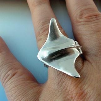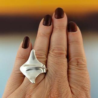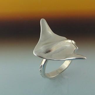 Sterling Silver Stingray Ring: Adjustable Nautical Jewelry