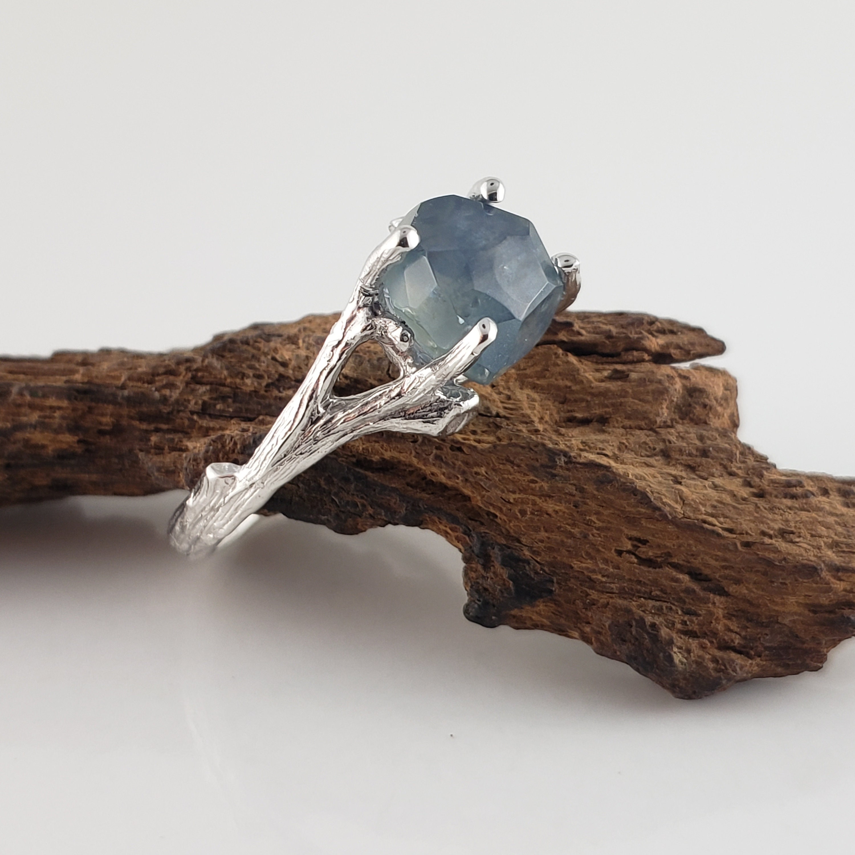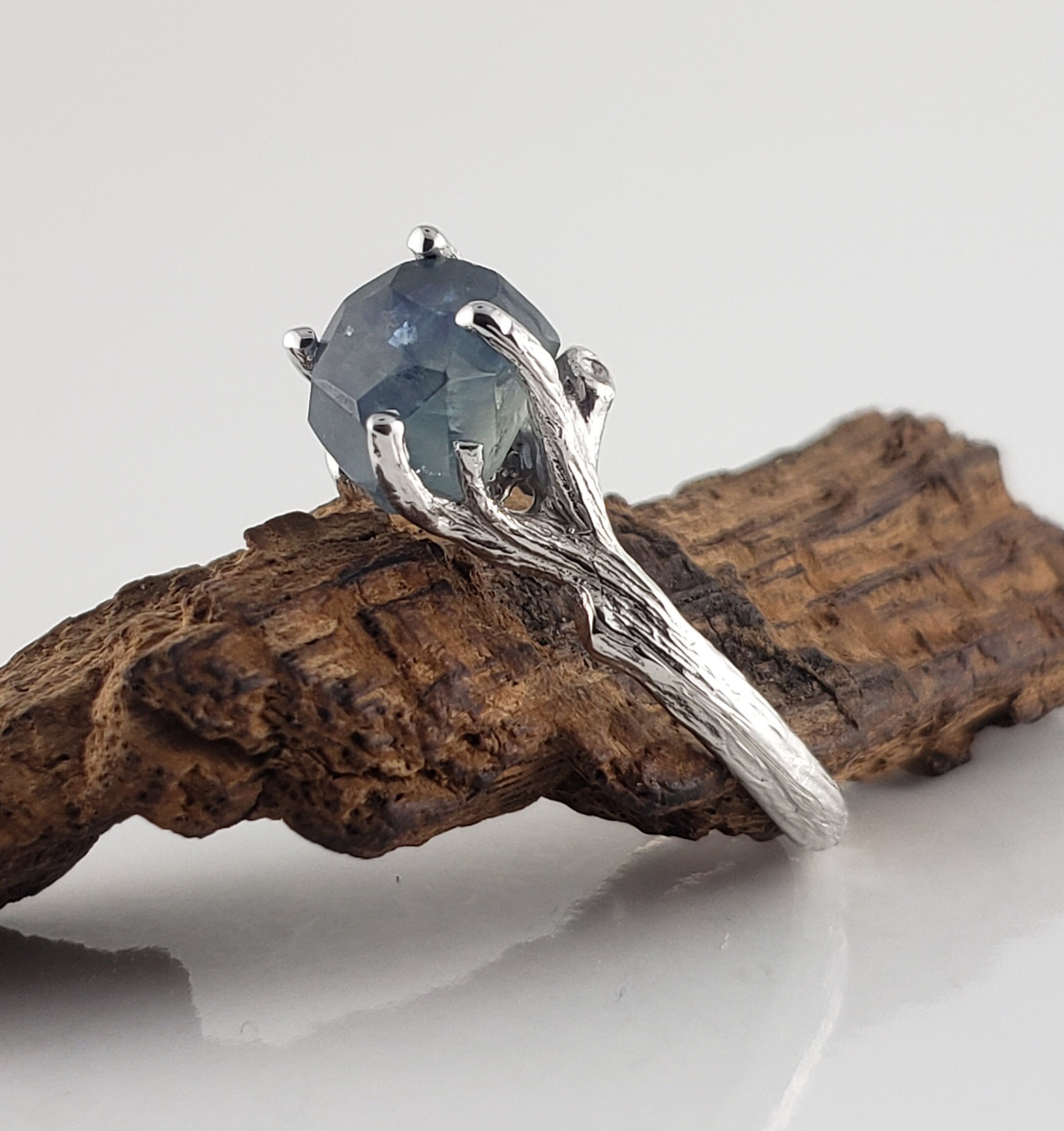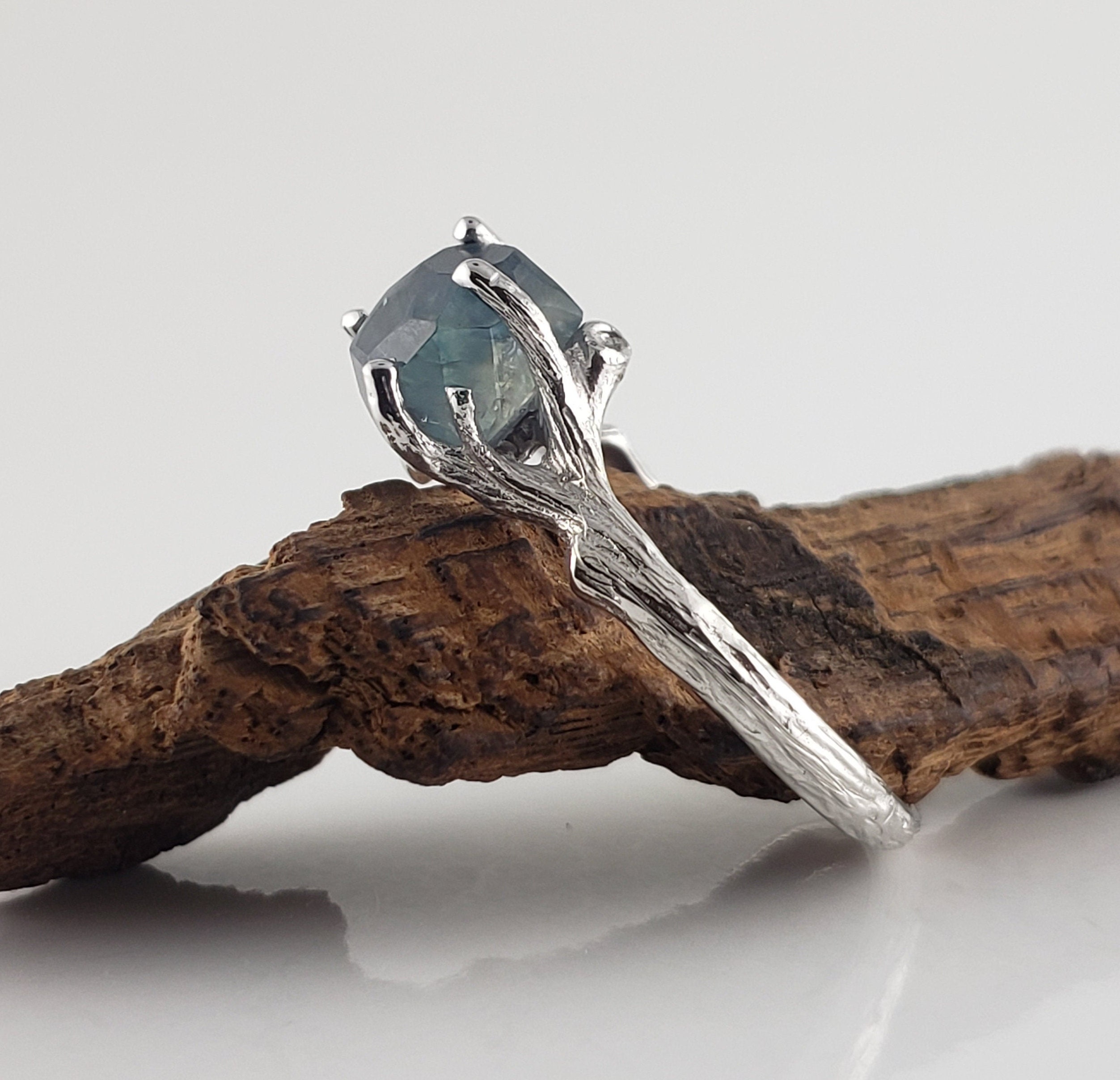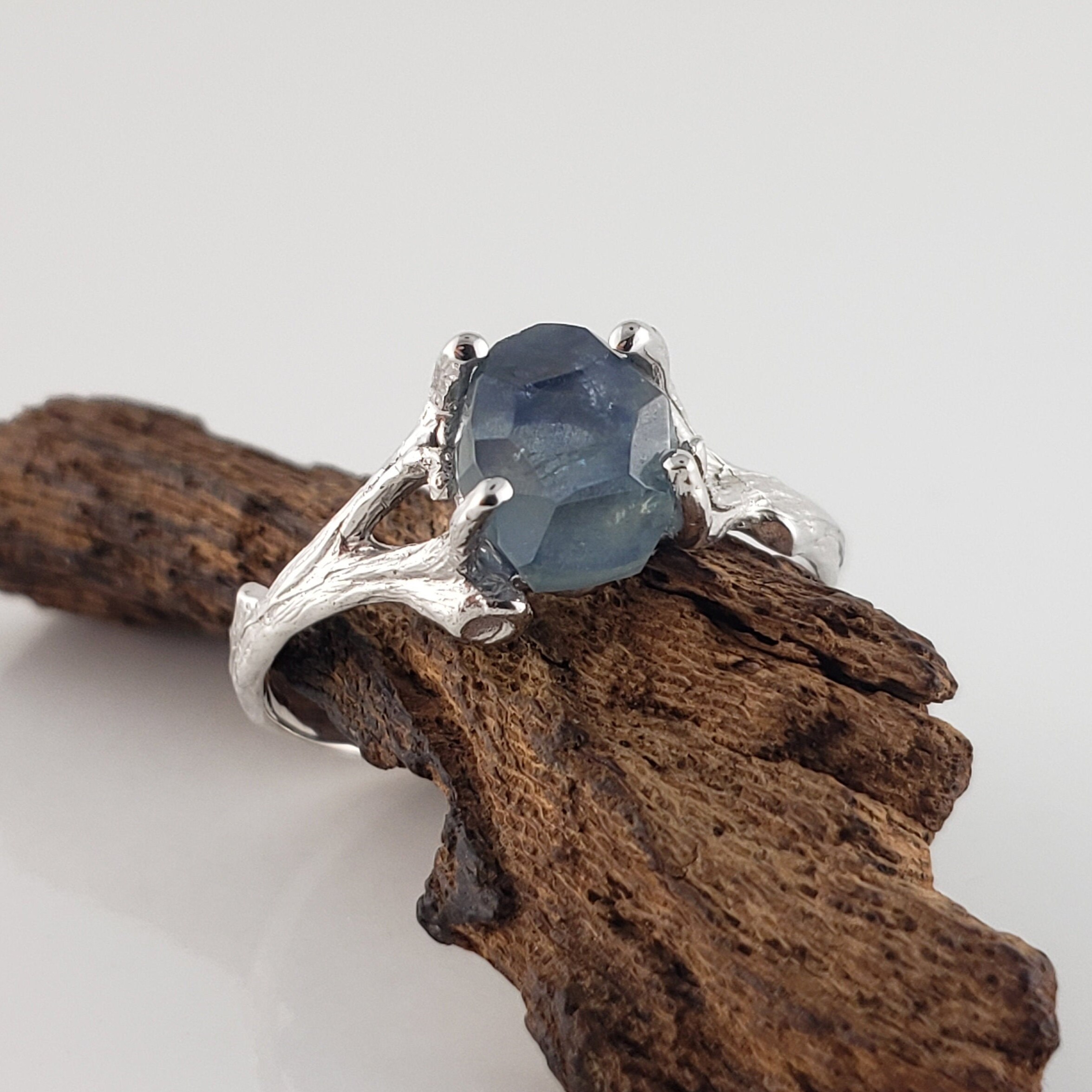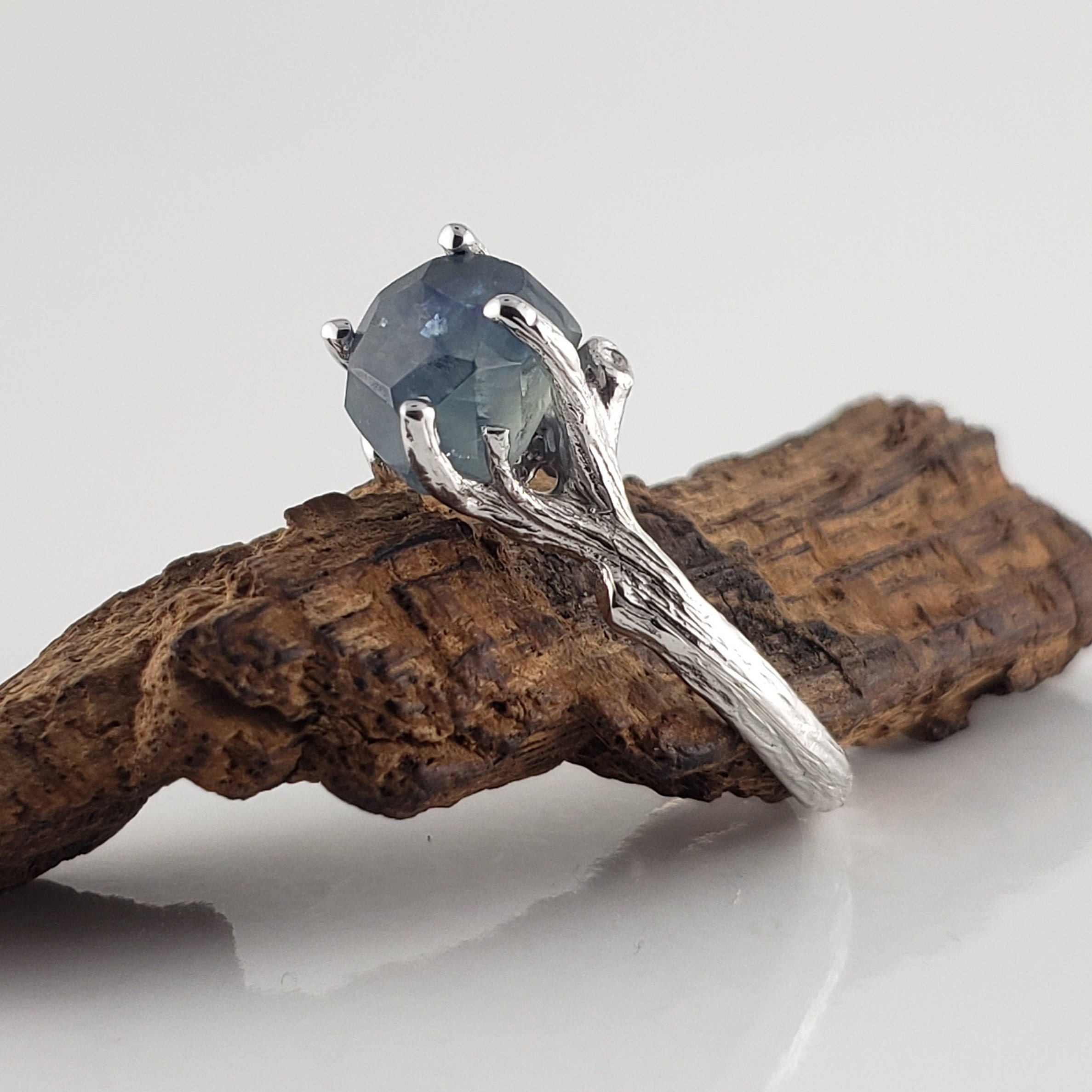 Montana Sapphire Twig Engagement Ring, Hand-cut Gemstone Solitaire, Anniversary Ring by DV Jewelry Designs