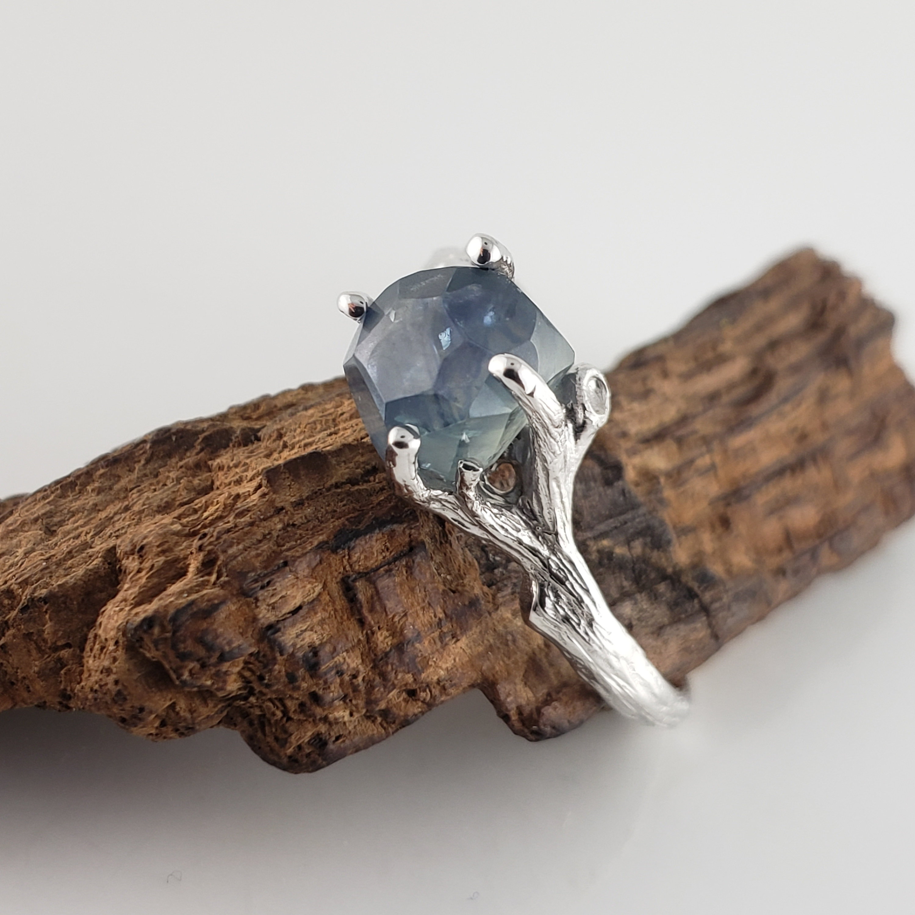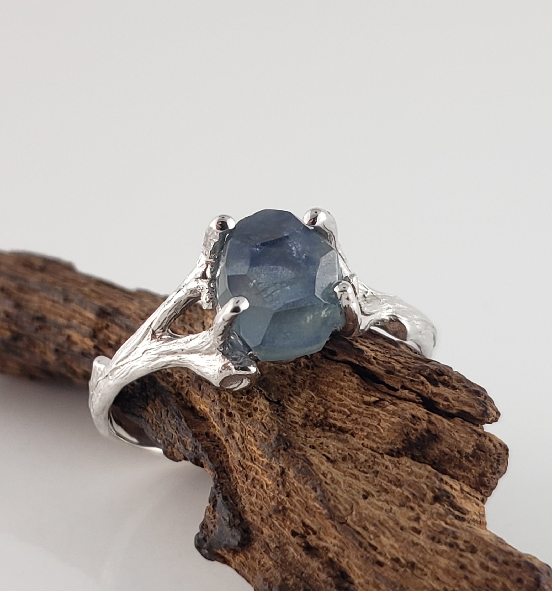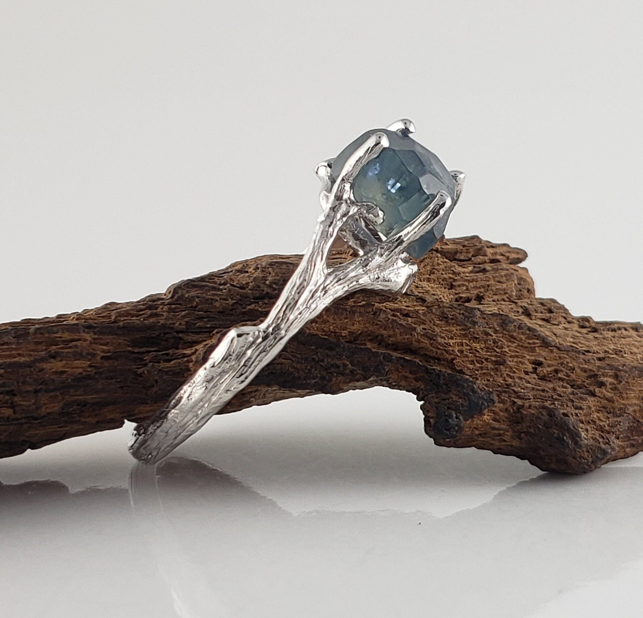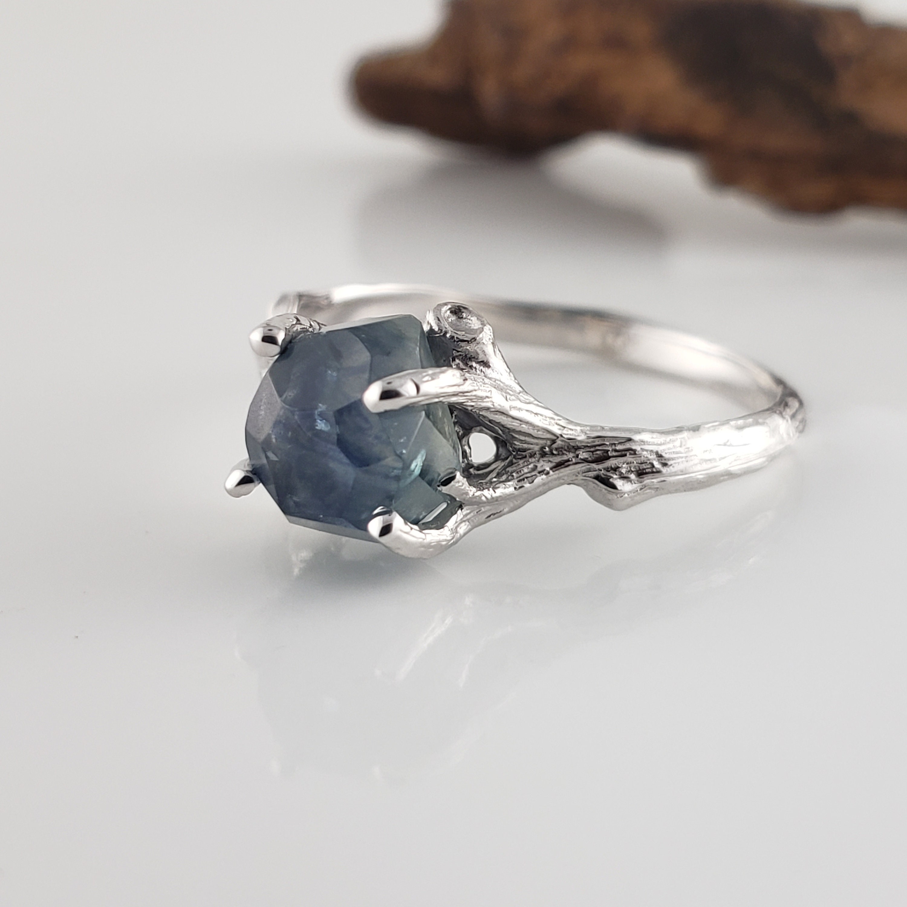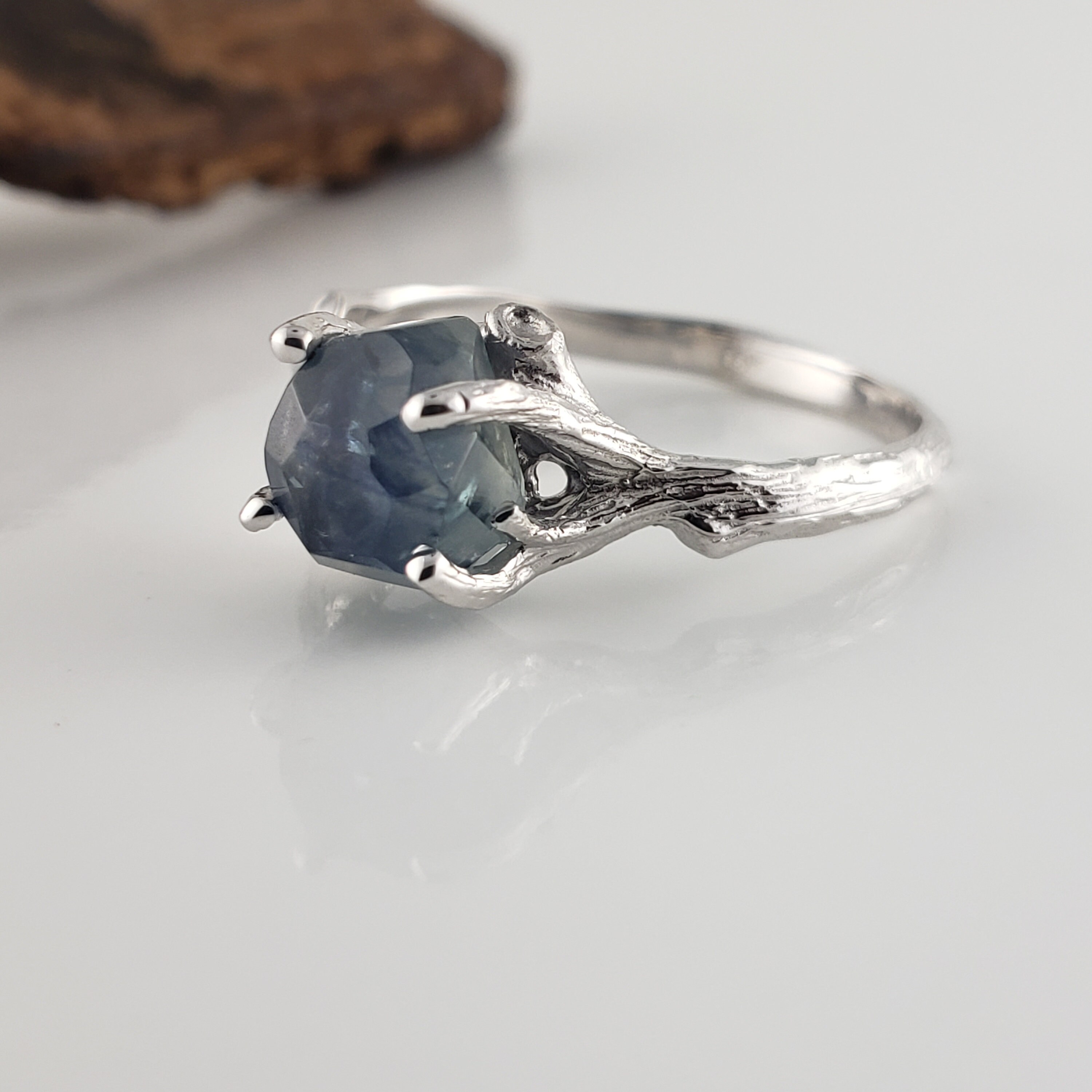 Montana Sapphire Twig Engagement Ring, Hand-cut Gemstone Solitaire, Anniversary Ring by DV Jewelry Designs