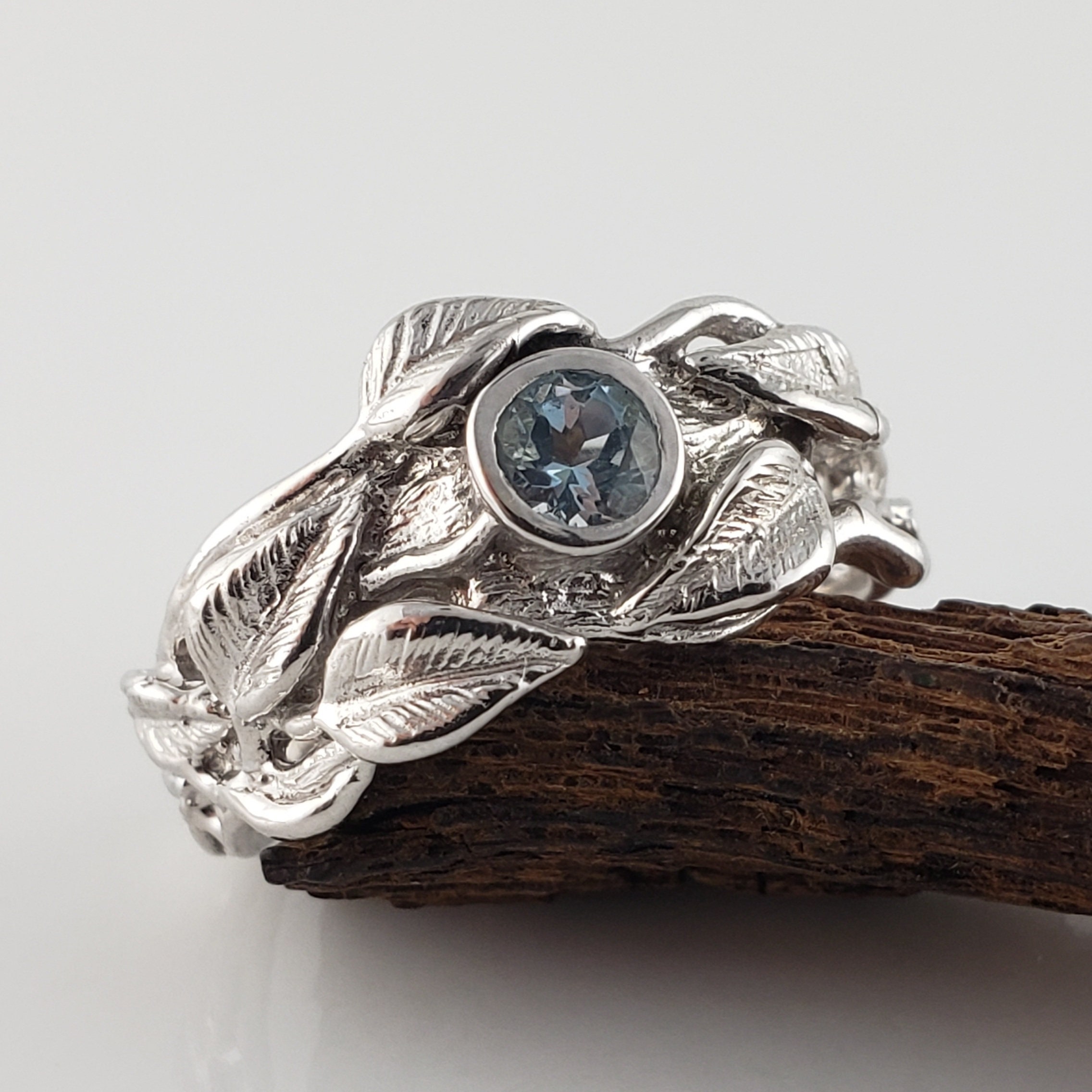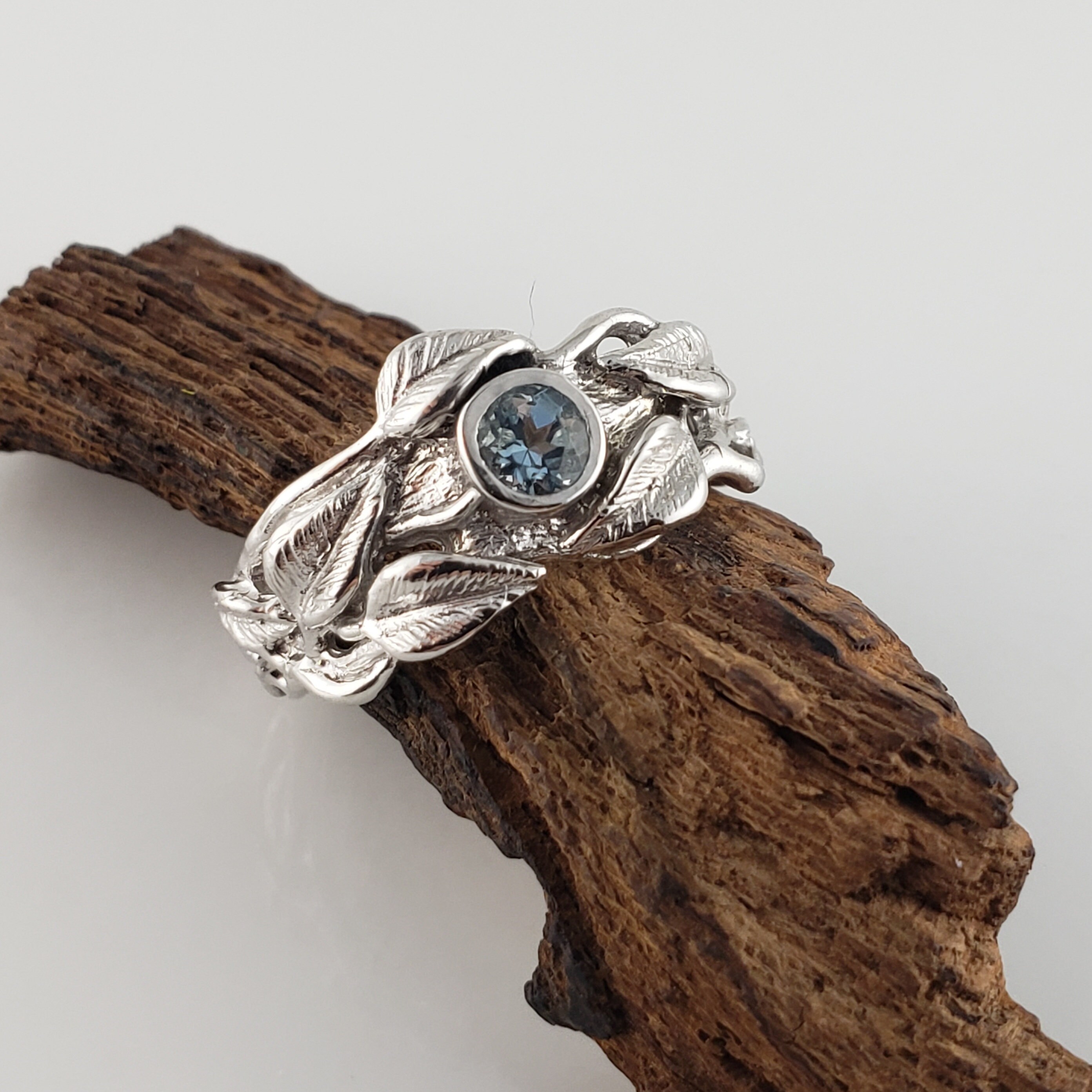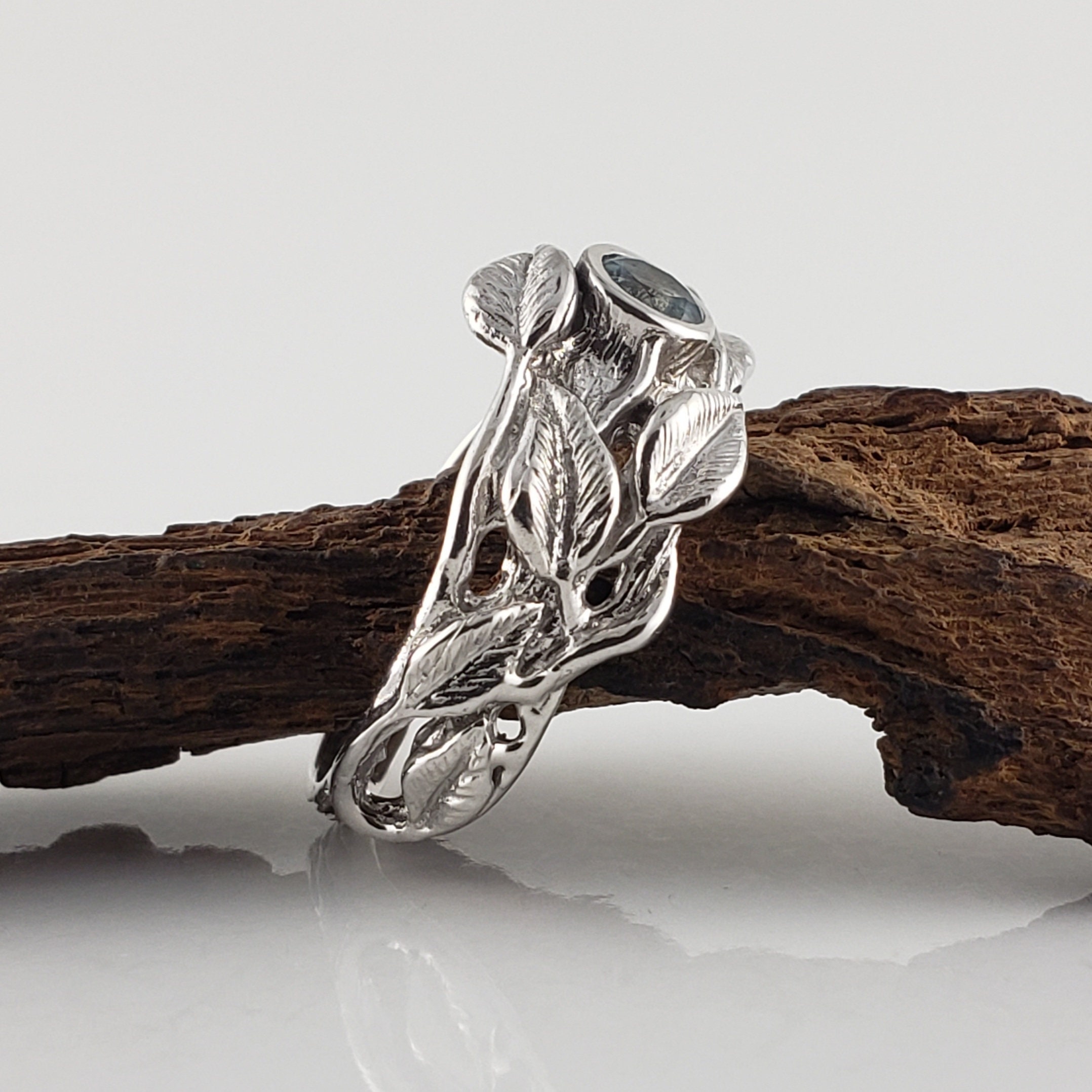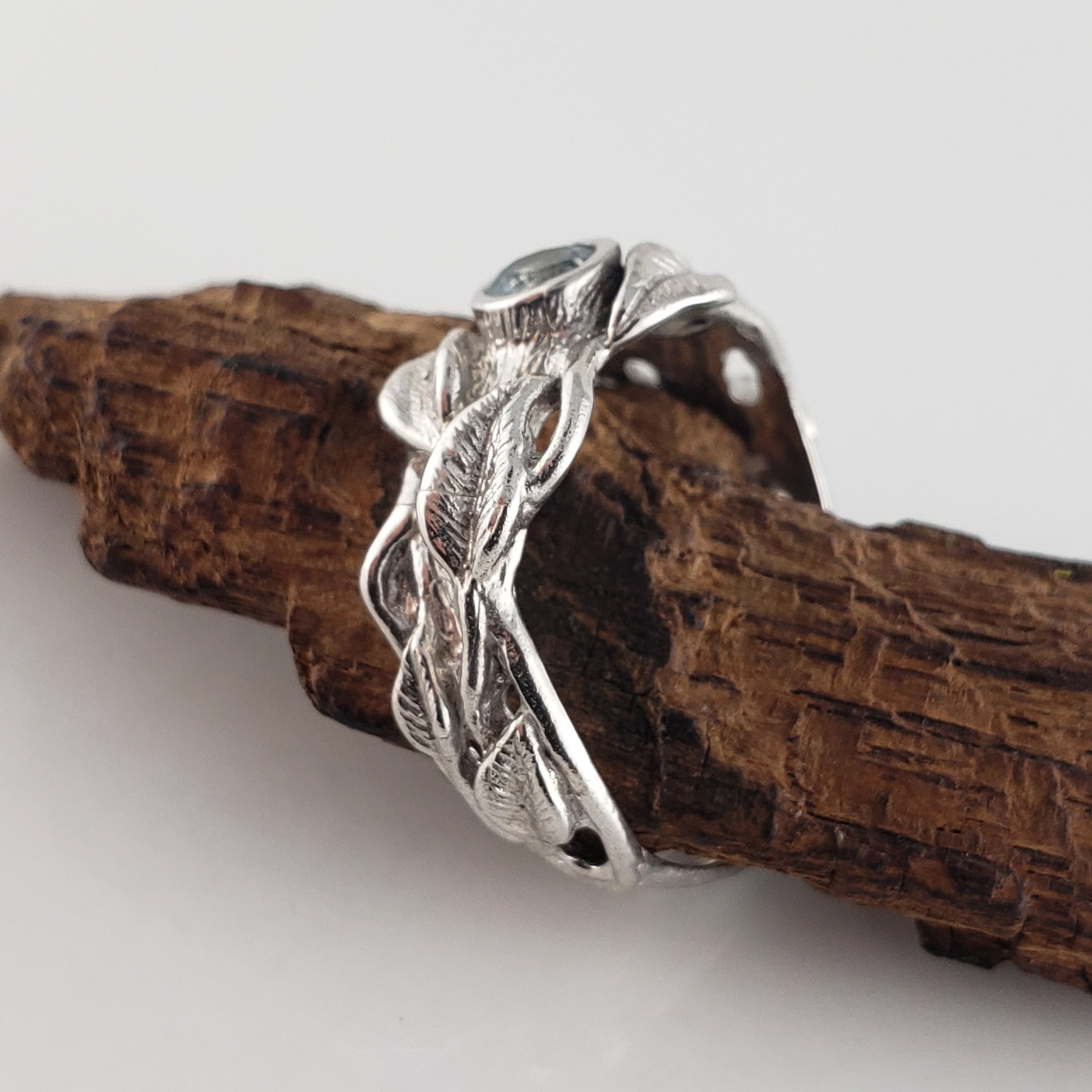 Leaf and Twig Gemstone Wedding Band, Engagement Ring, Statement Ring, Birthstone Fashion Jewelry by DV Jewelry