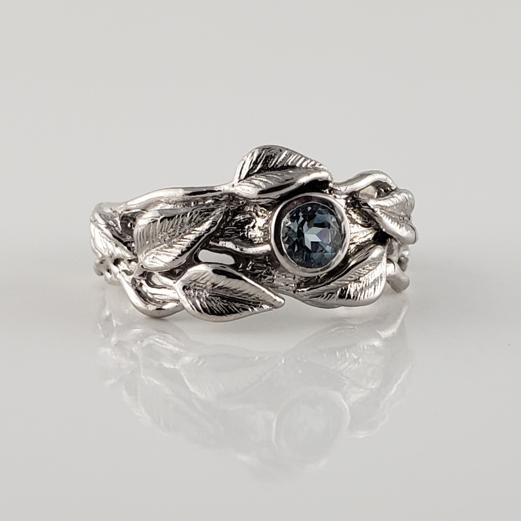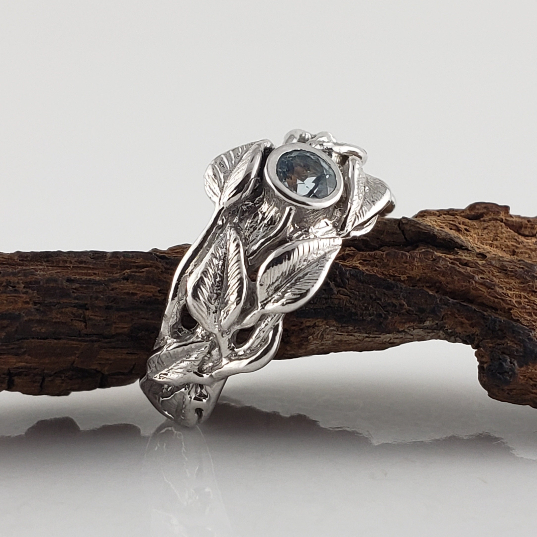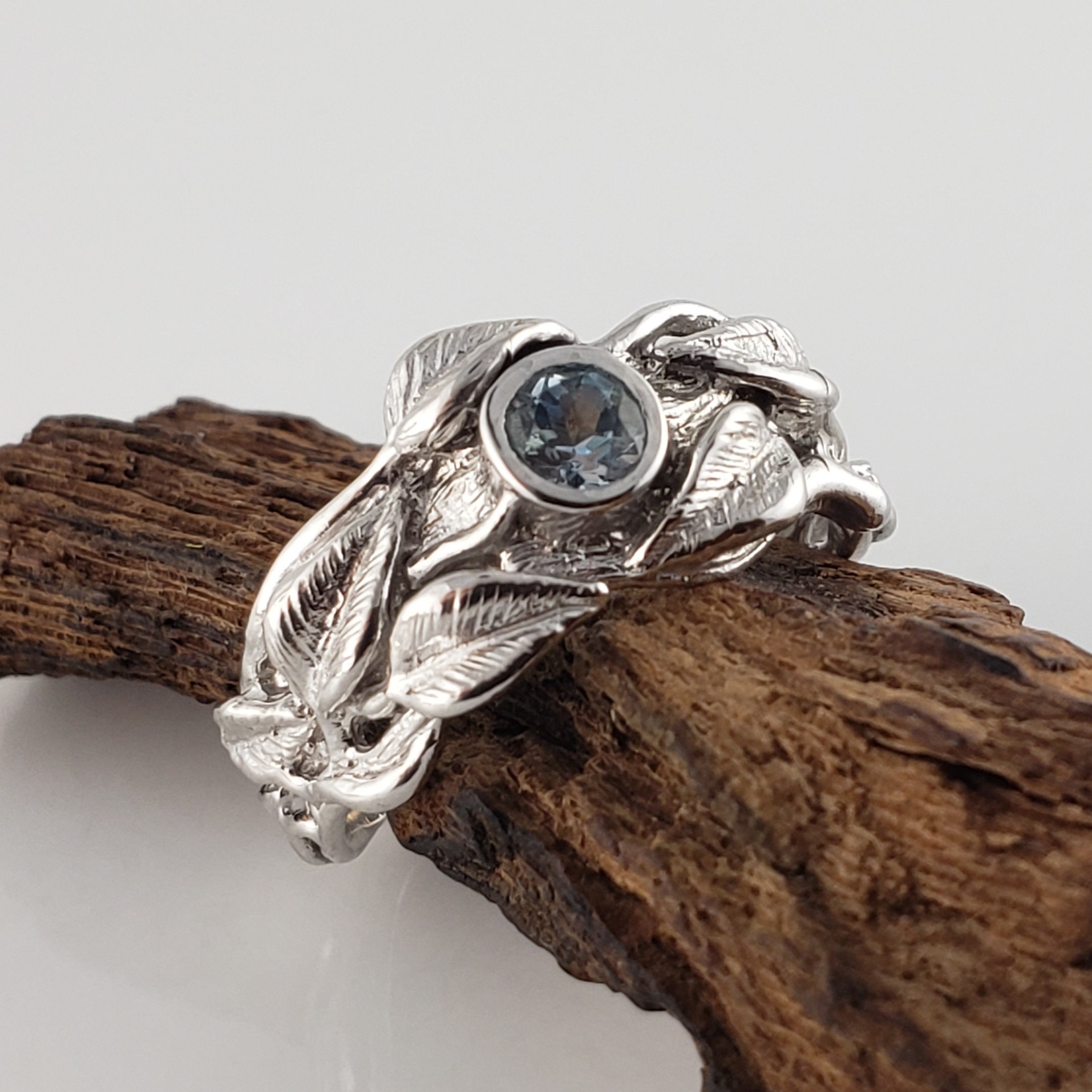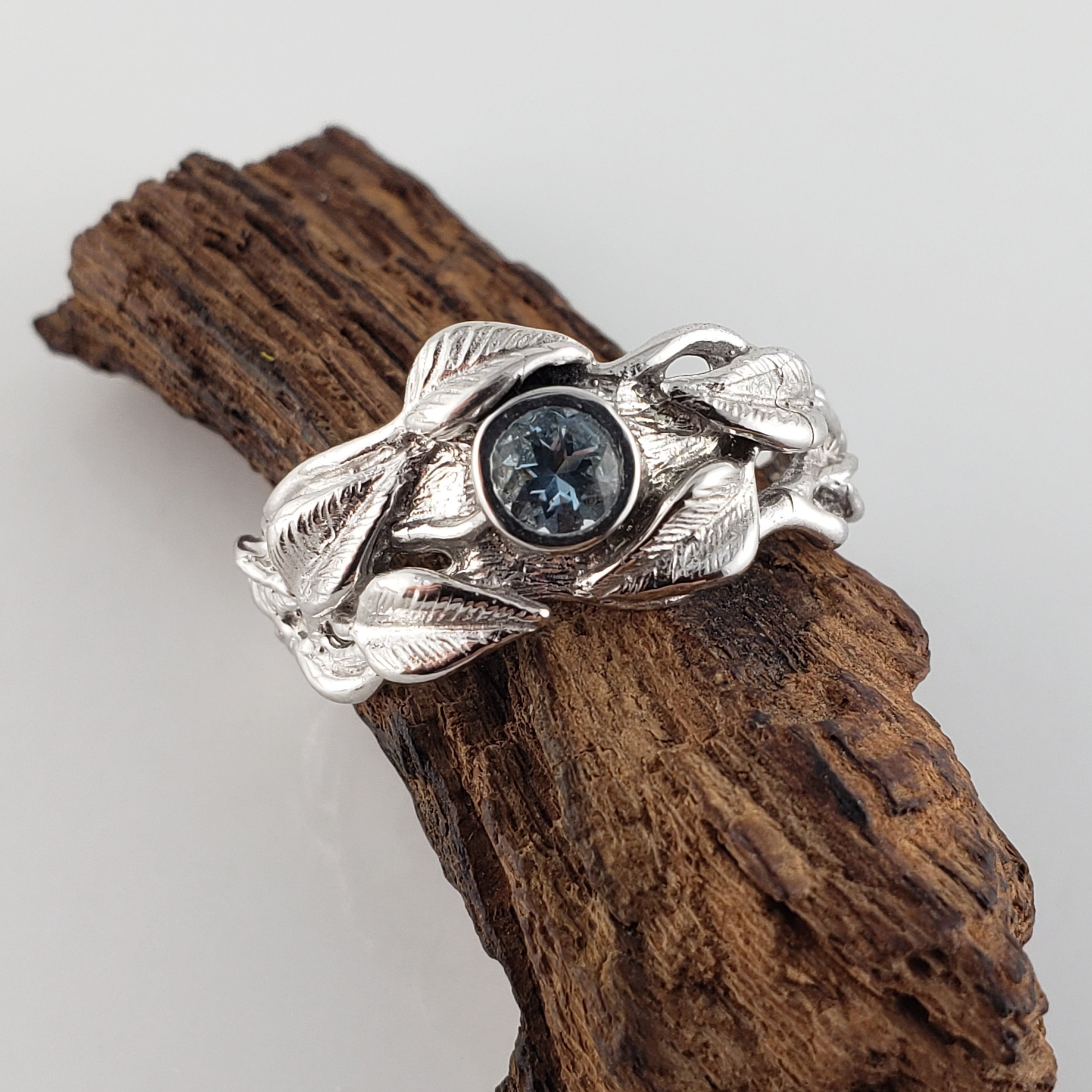 Leaf and Twig Gemstone Wedding Band, Engagement Ring, Statement Ring, Birthstone Fashion Jewelry by DV Jewelry