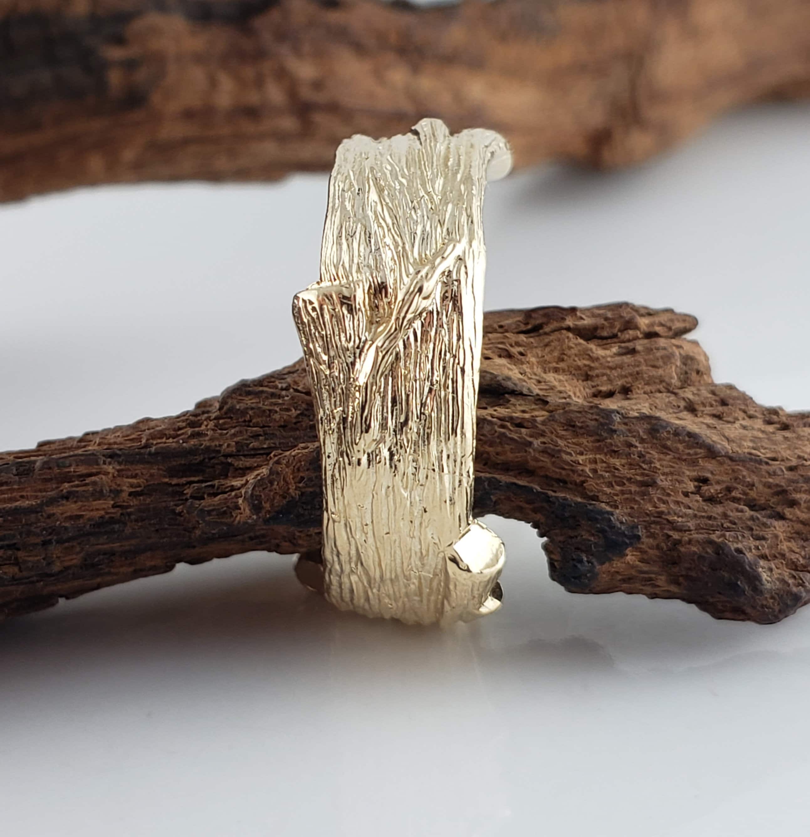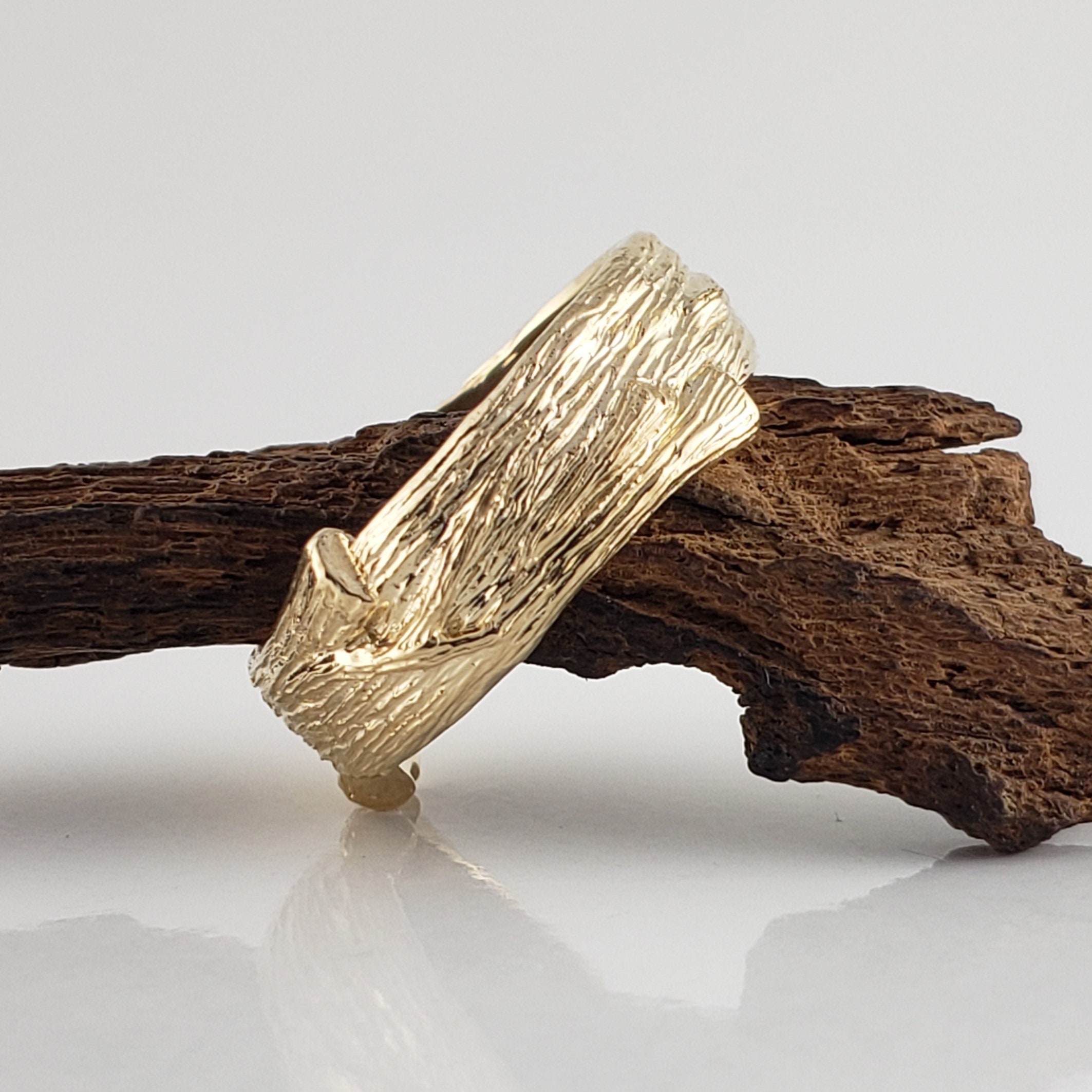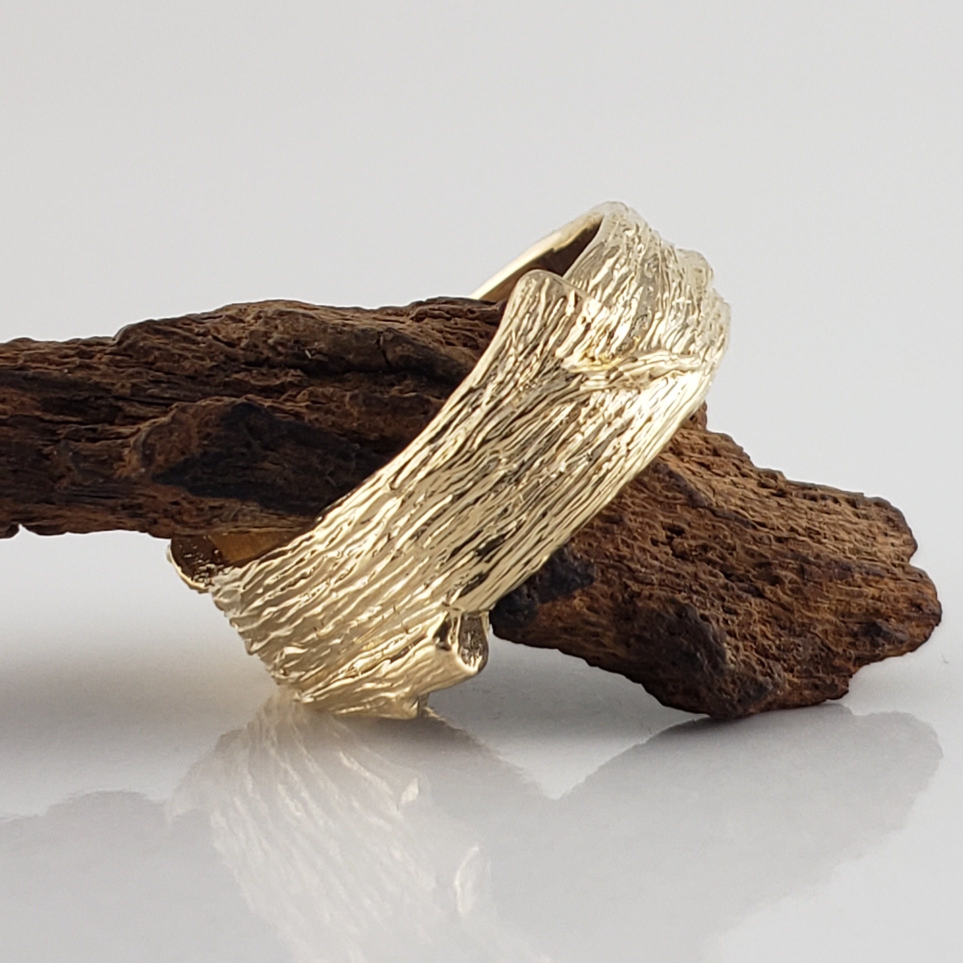Wood Texture Branch Wedding Band in Solid Gold, Unisex Rings, Hand Sculpted by DV Designs
