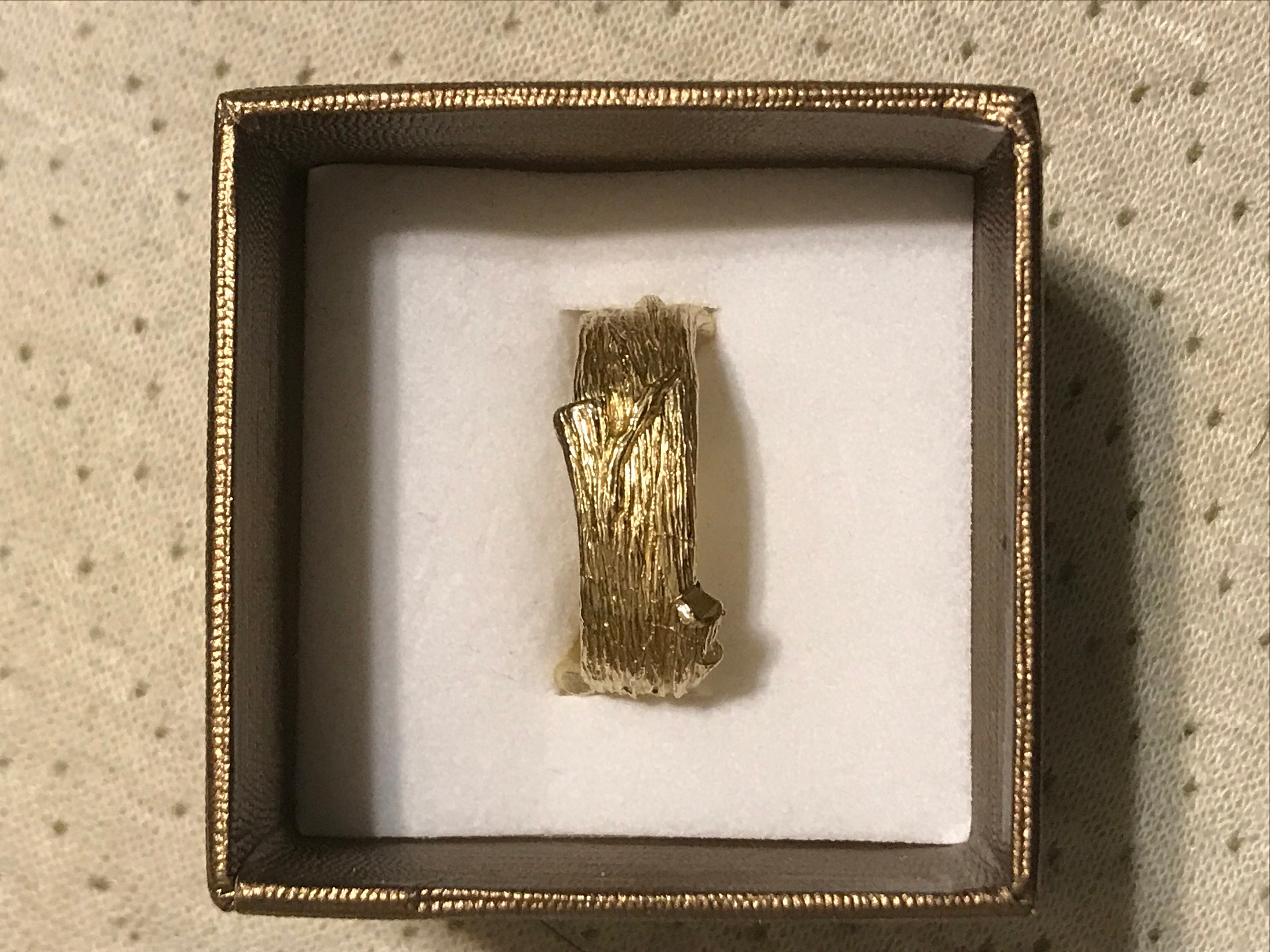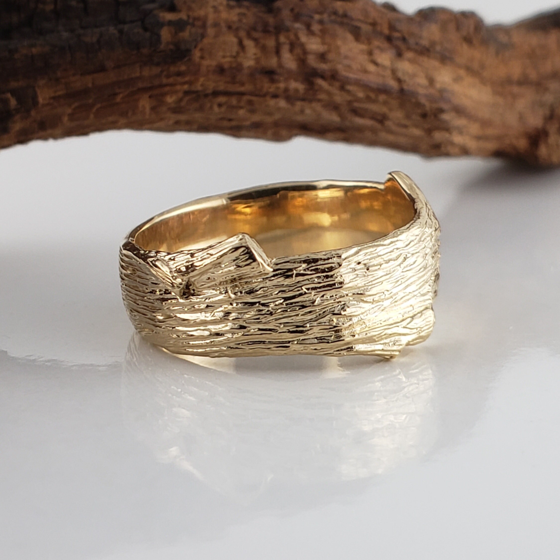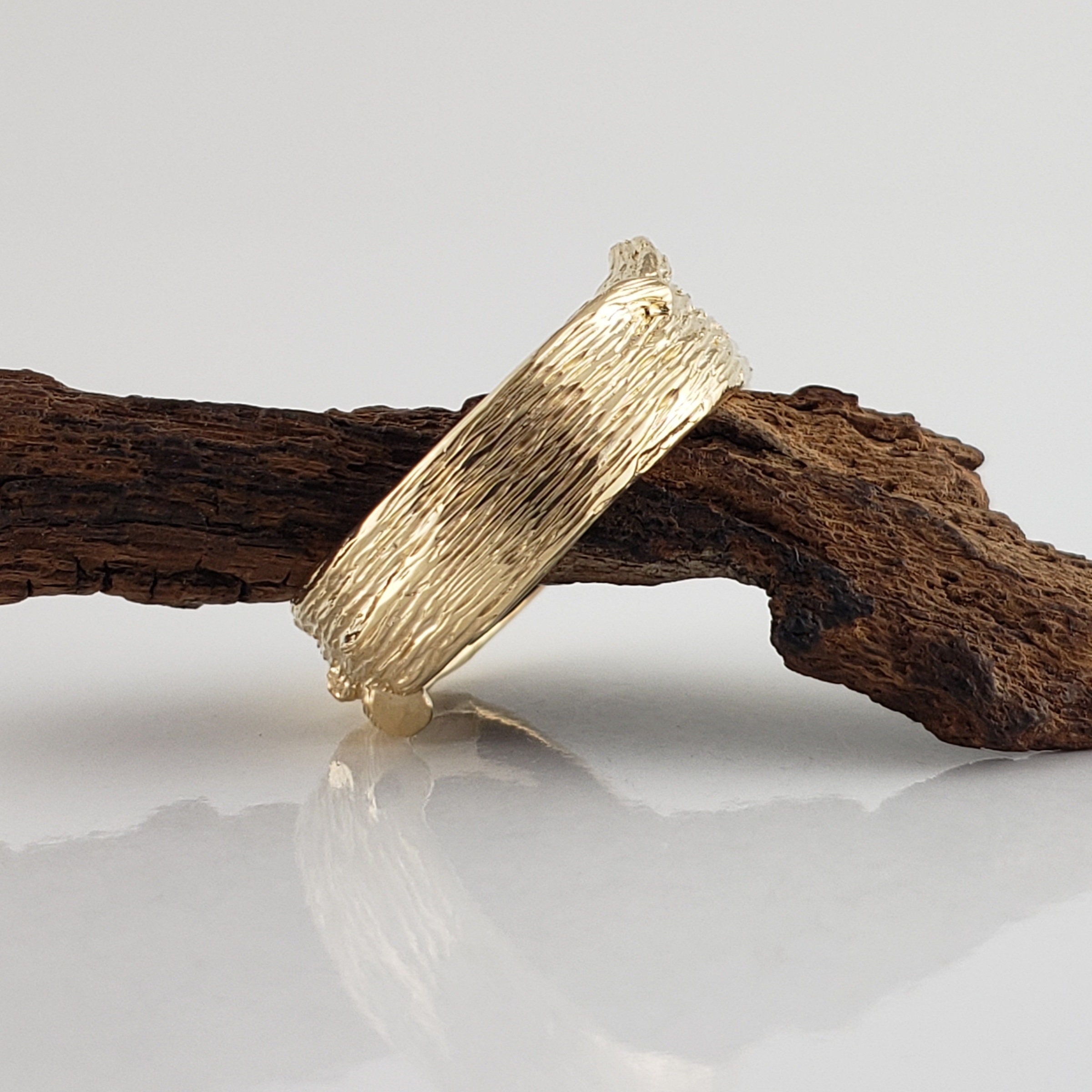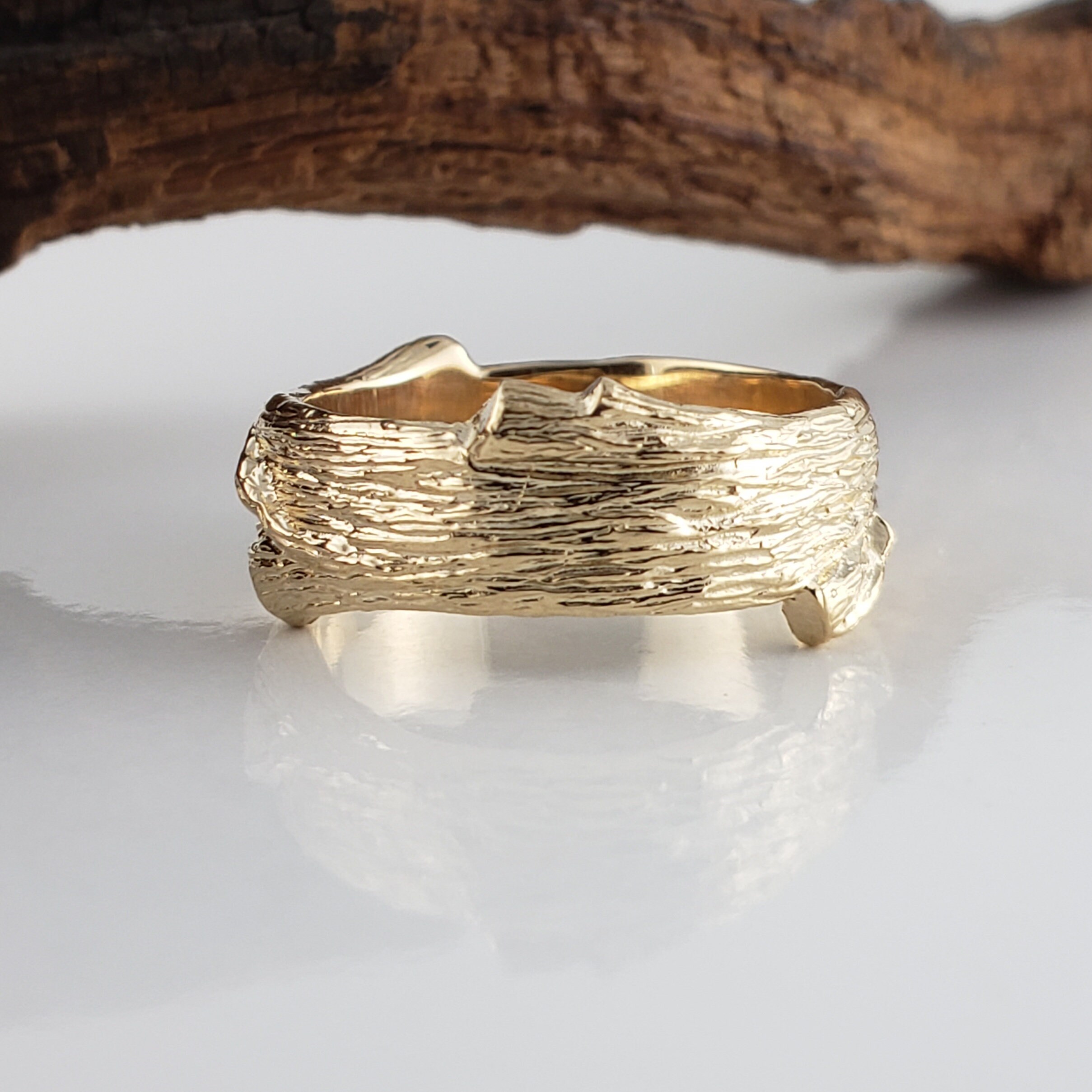Wood Texture Branch Wedding Band in Solid Gold, Unisex Rings, Hand Sculpted by DV Designs