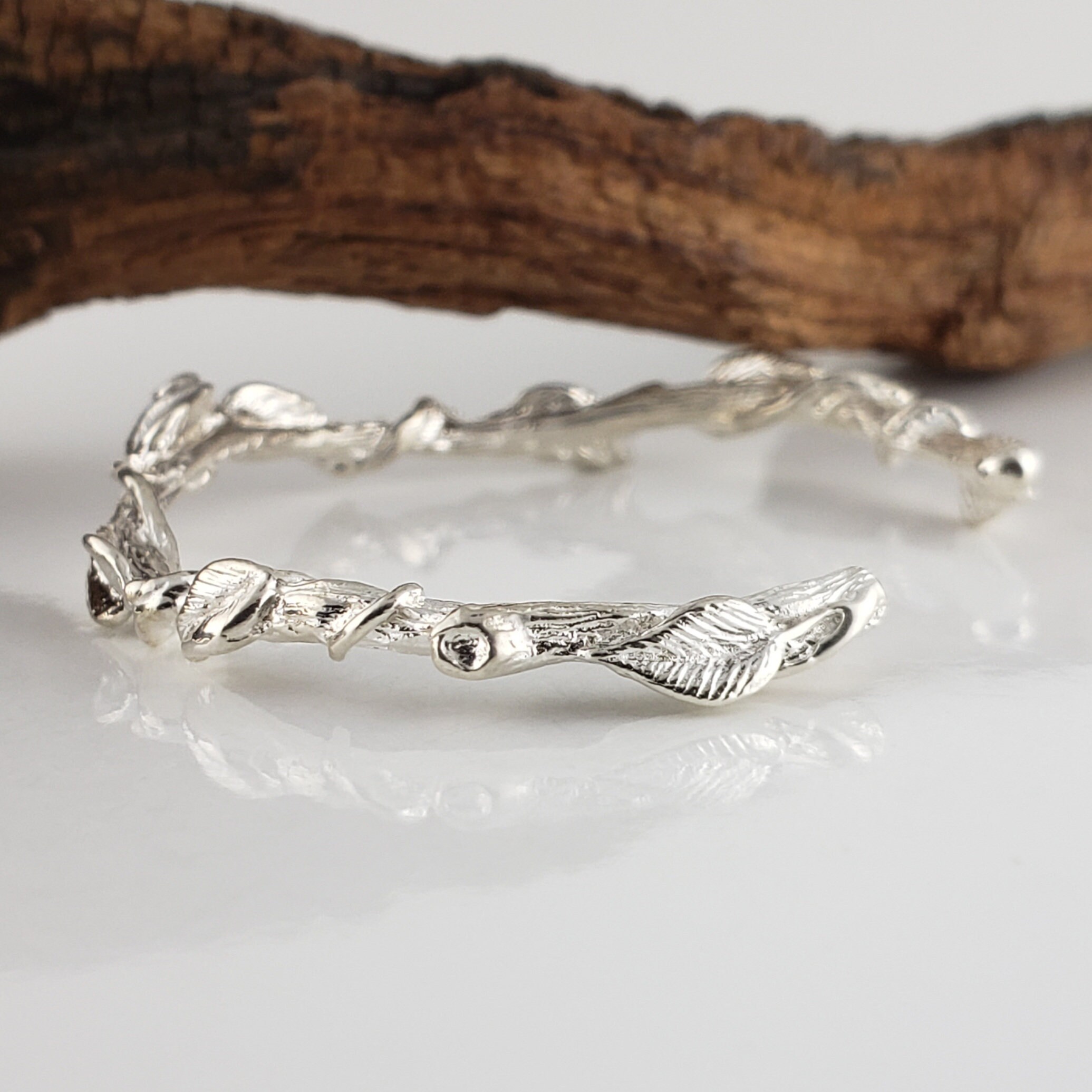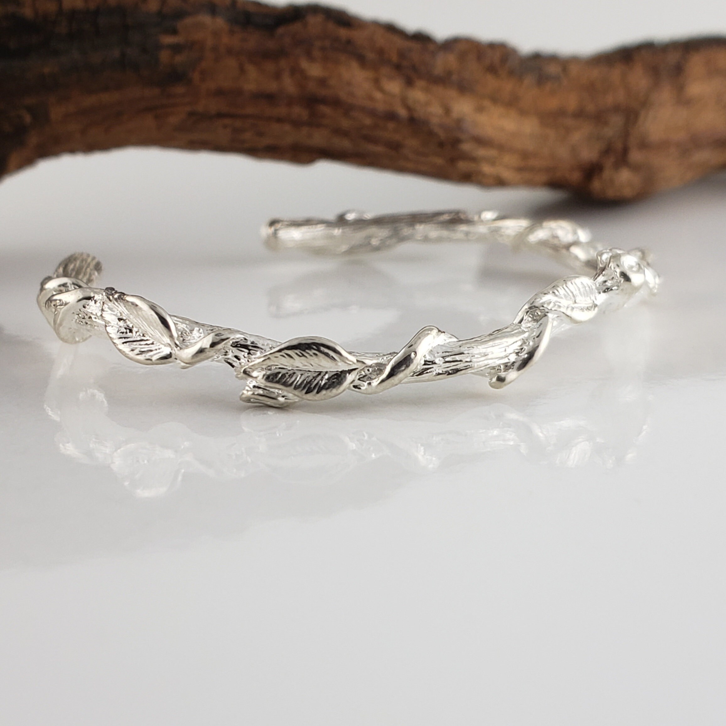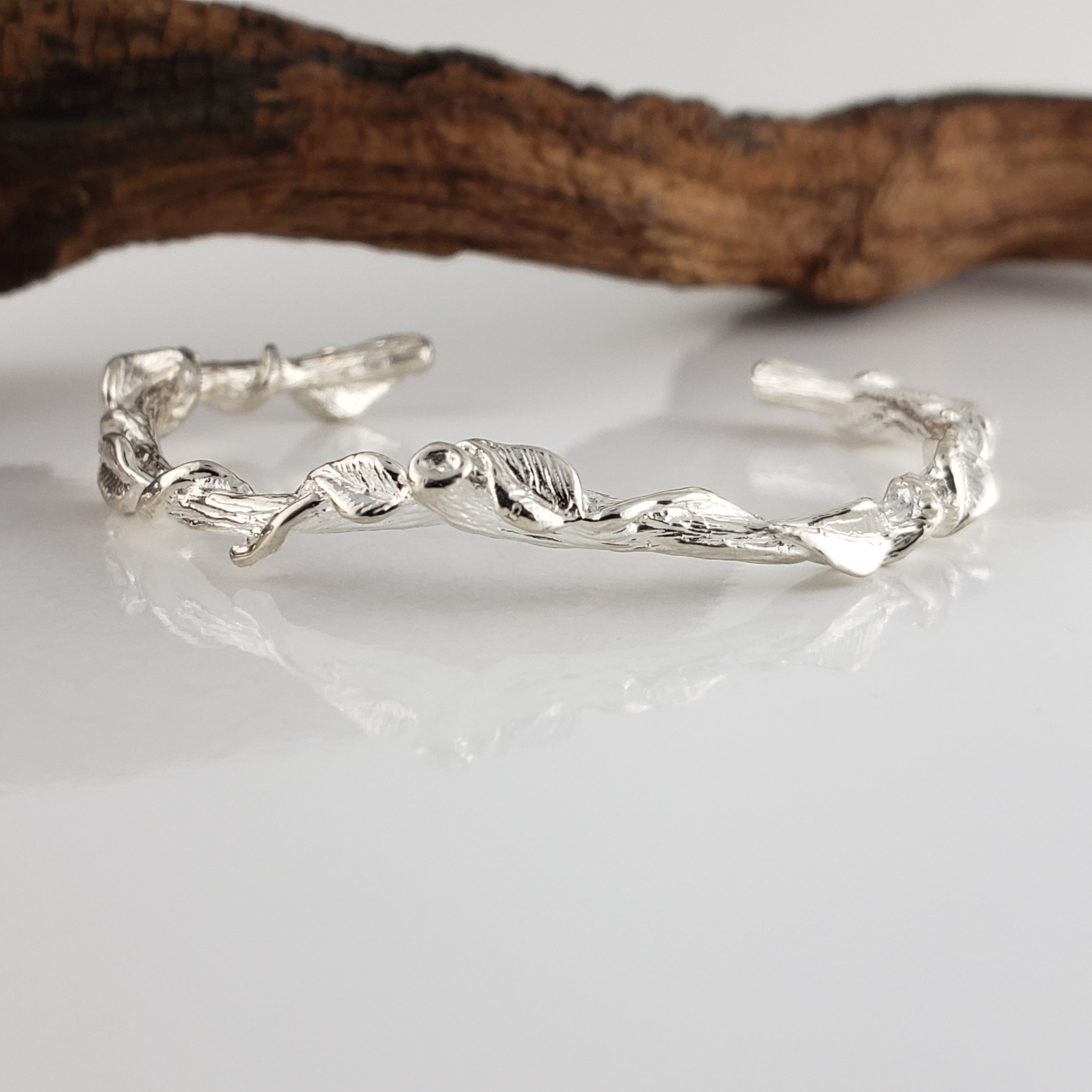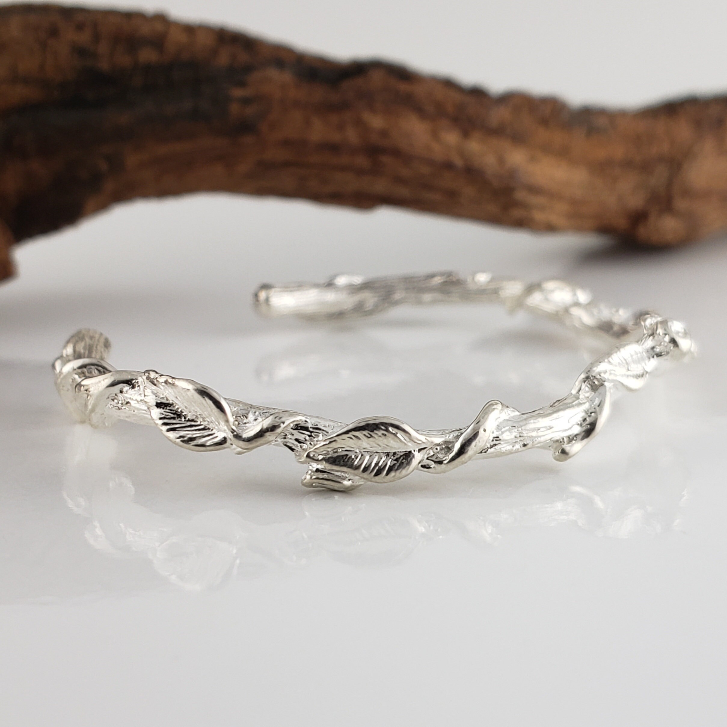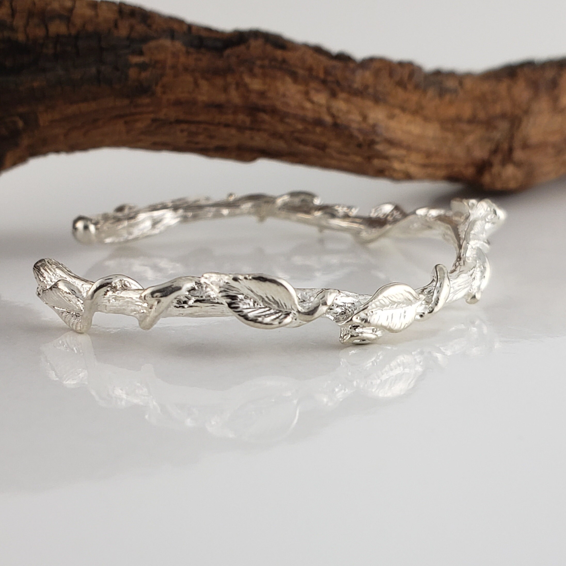 Leaf and Vine Twig Cuff Bracelet in Solid Gold - Dainty Jewelry - Bangle - by DV Jewelry Designs