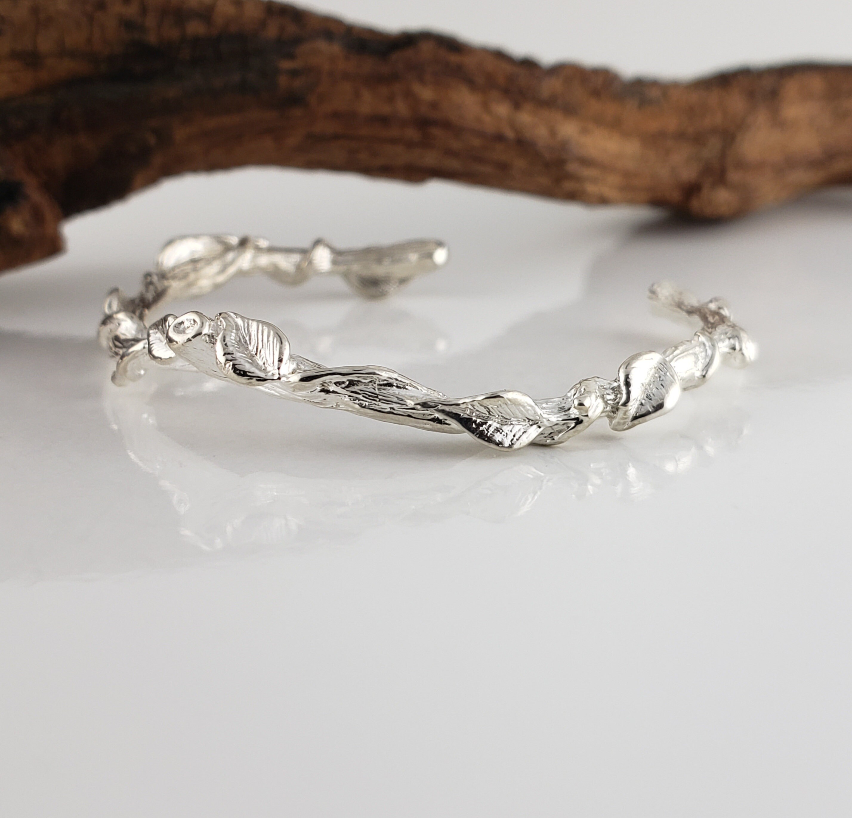 Leaf and Vine Twig Cuff Bracelet in Solid Gold - by DV Jewelry Designs