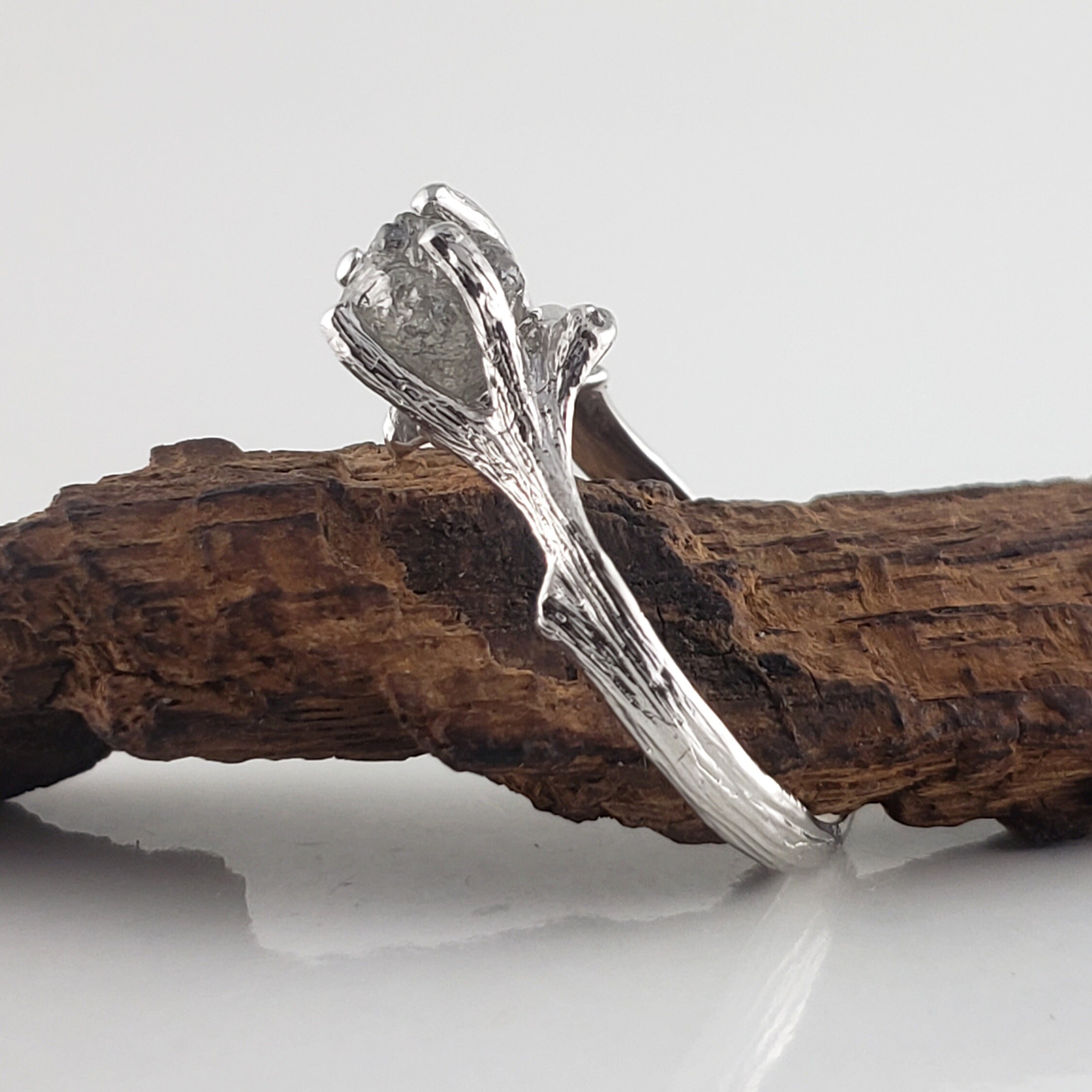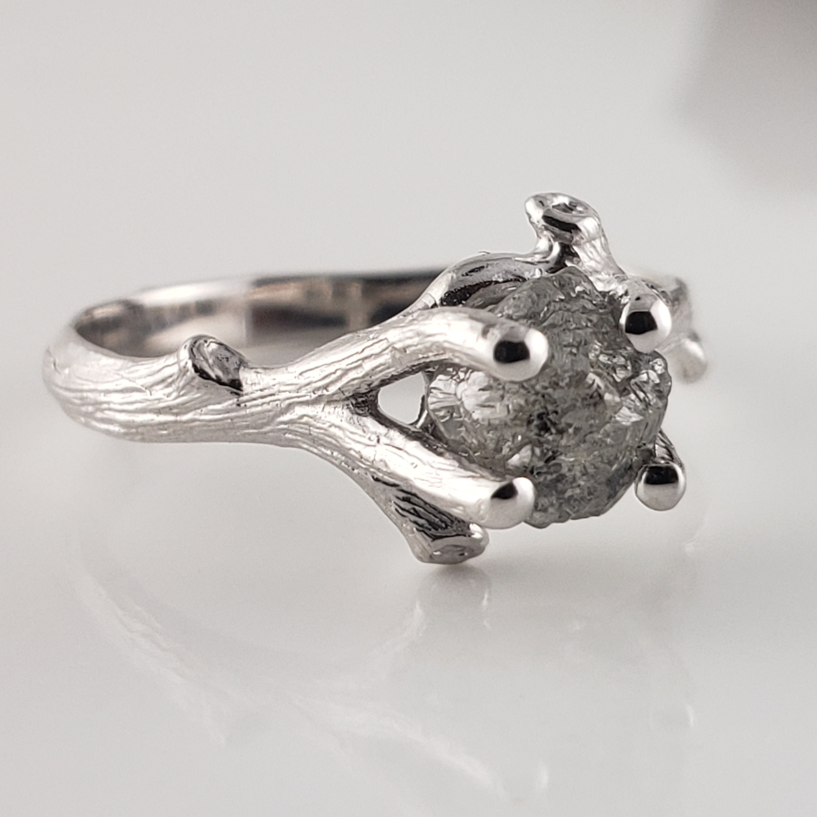 Salt and Pepper Rough Diamond Twig Engagement Ring Solid Gold, Engagement Ring, Available in Yellow, White or Rose Gold by DV Jewelry Designs