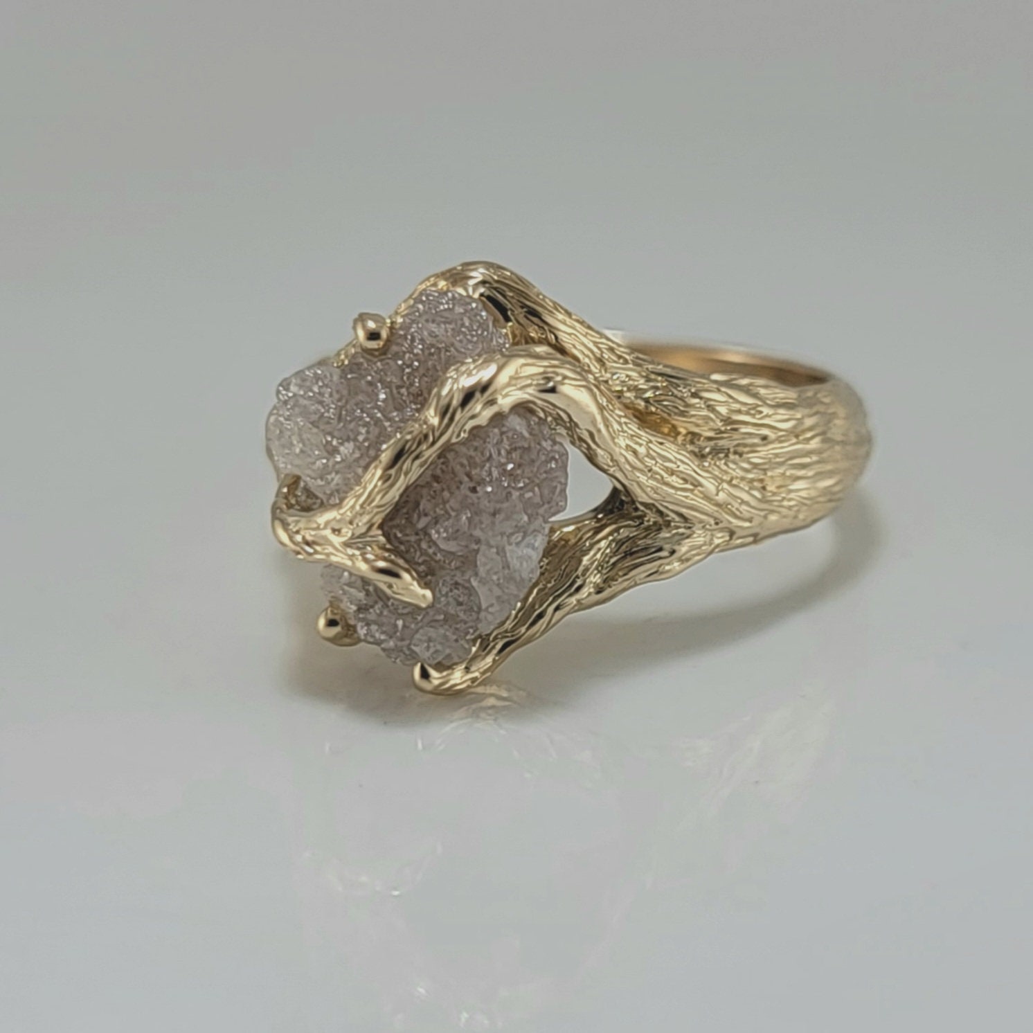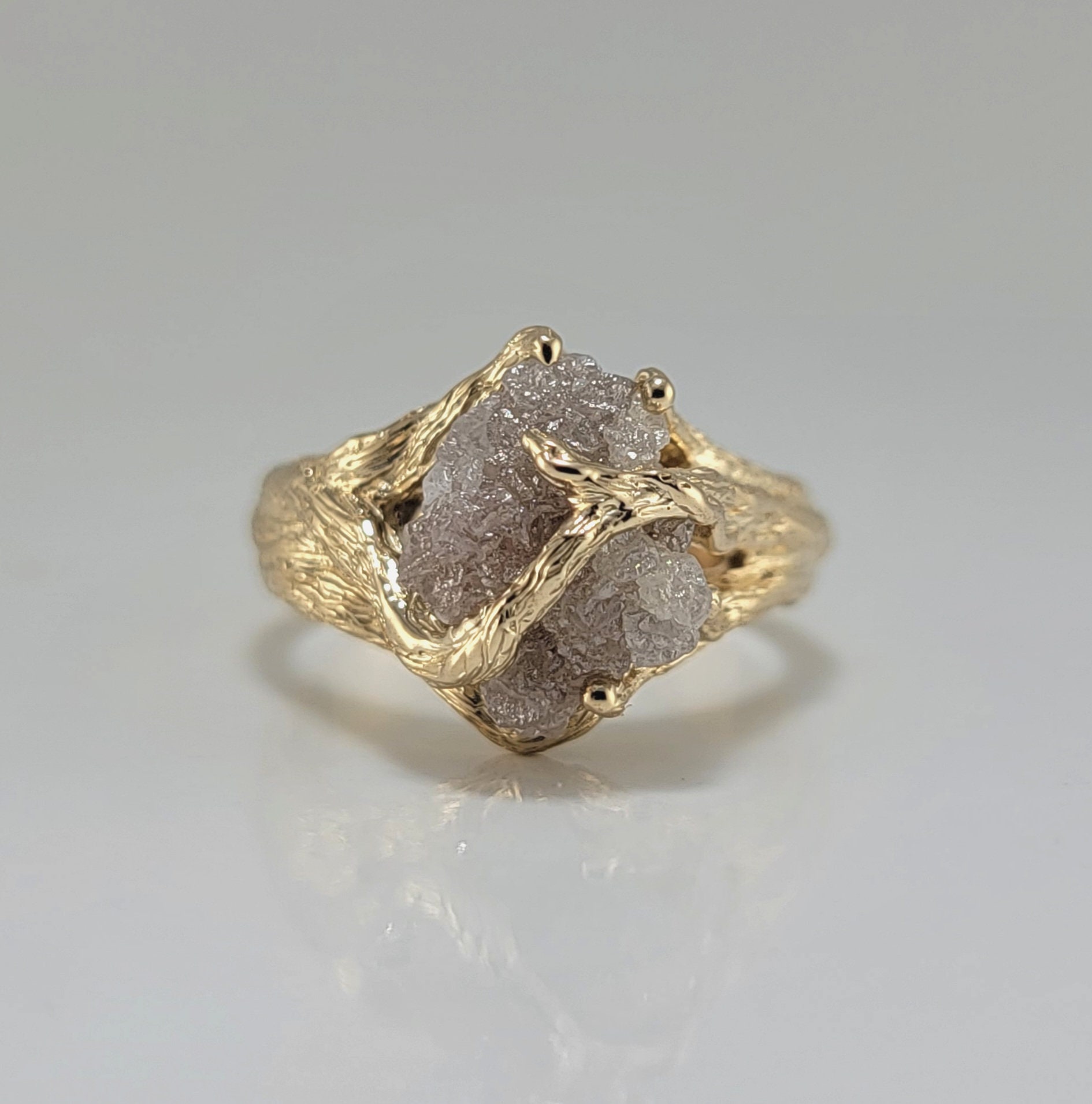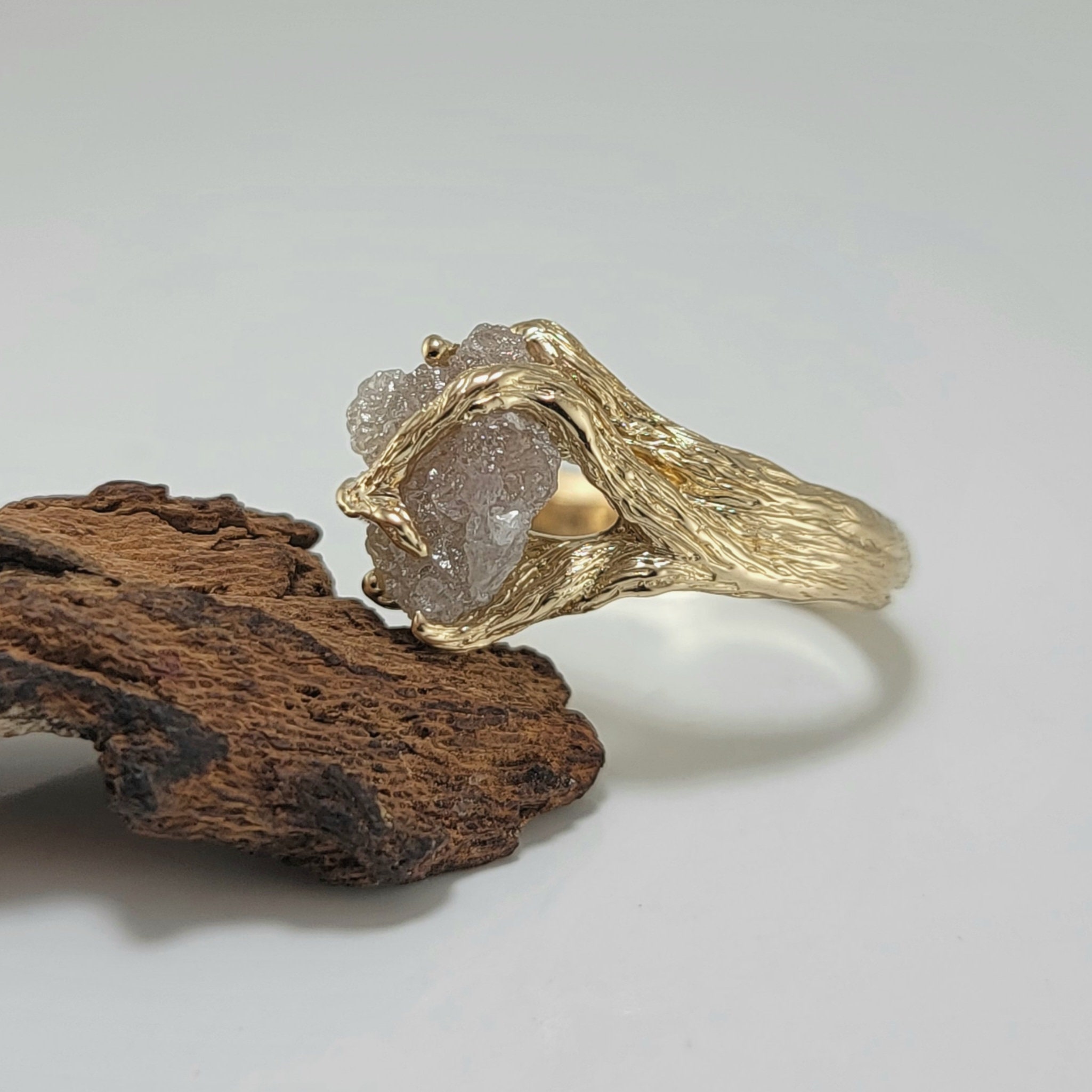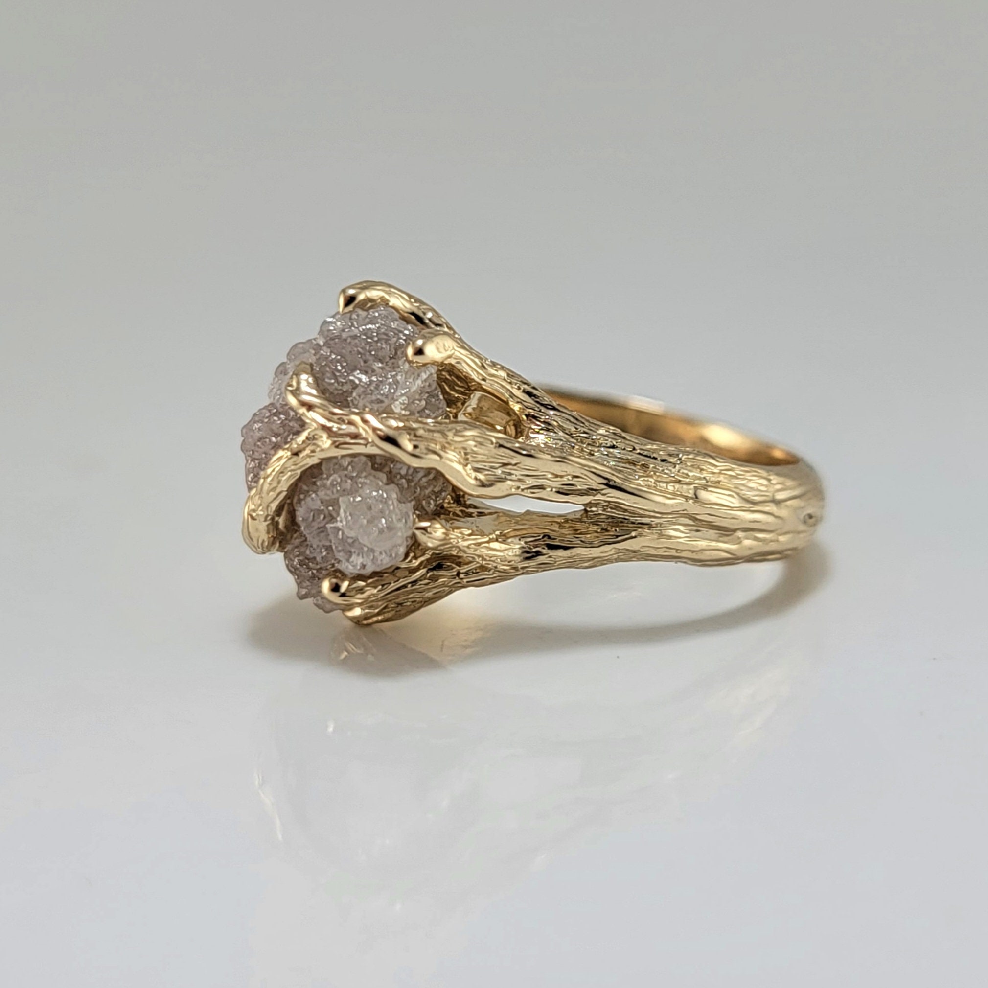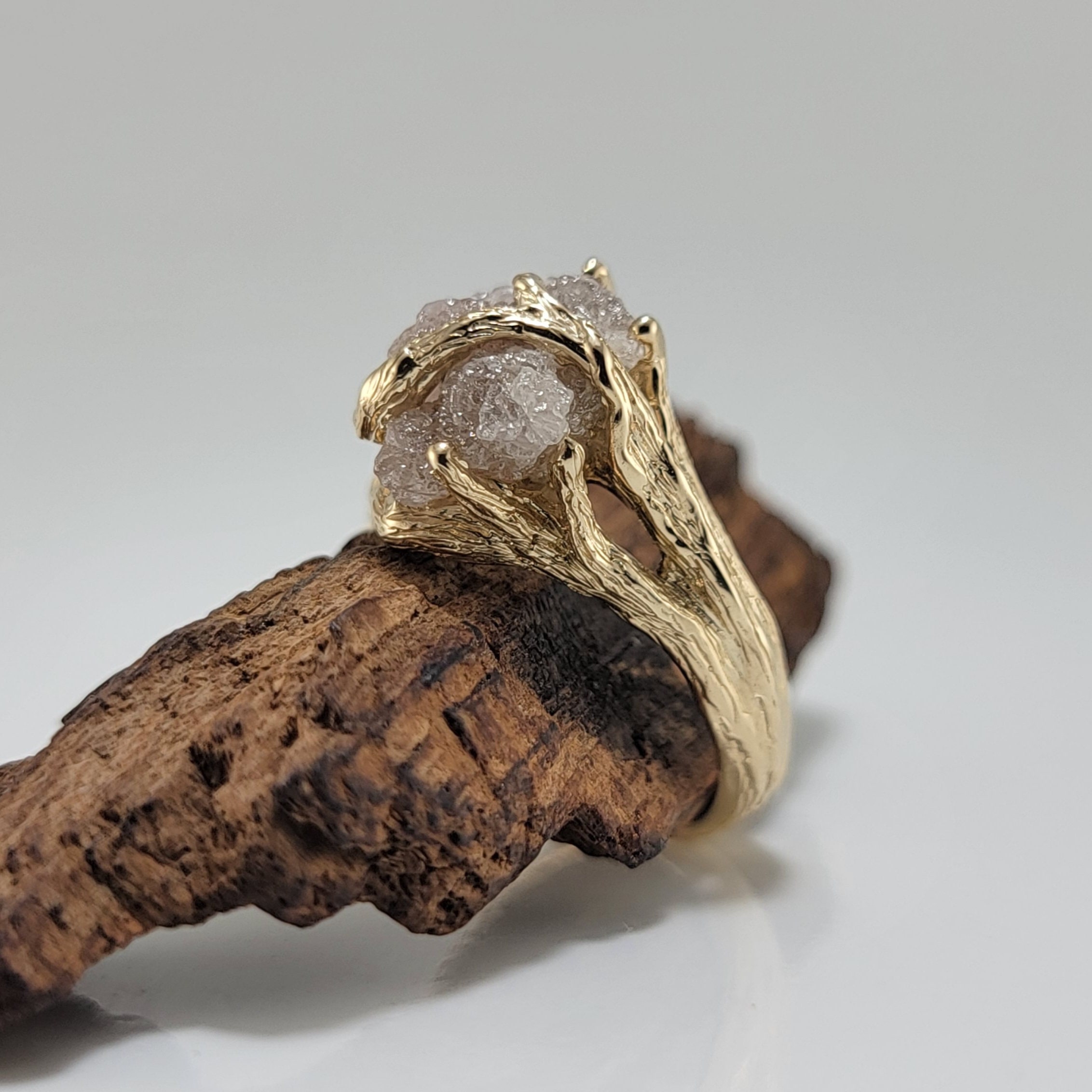 Organic Rough Diamond Branch Ring in Yellow Gold for Anniversaries and Engagements