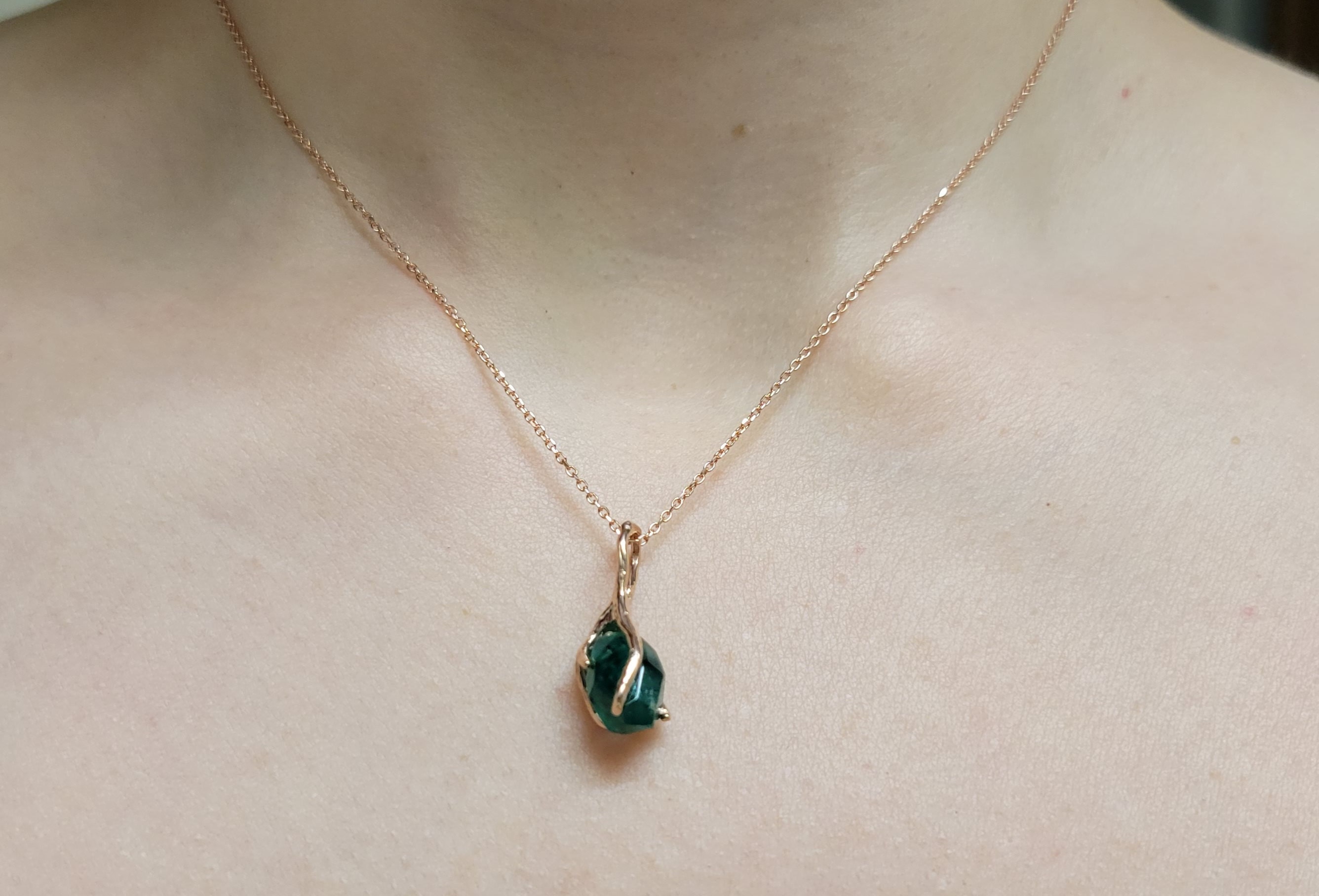 Raw Hand-cut Emerald Twig Pendant - Unique Gemstone Necklace - Emerald Pendant by DV Jewelry Designs