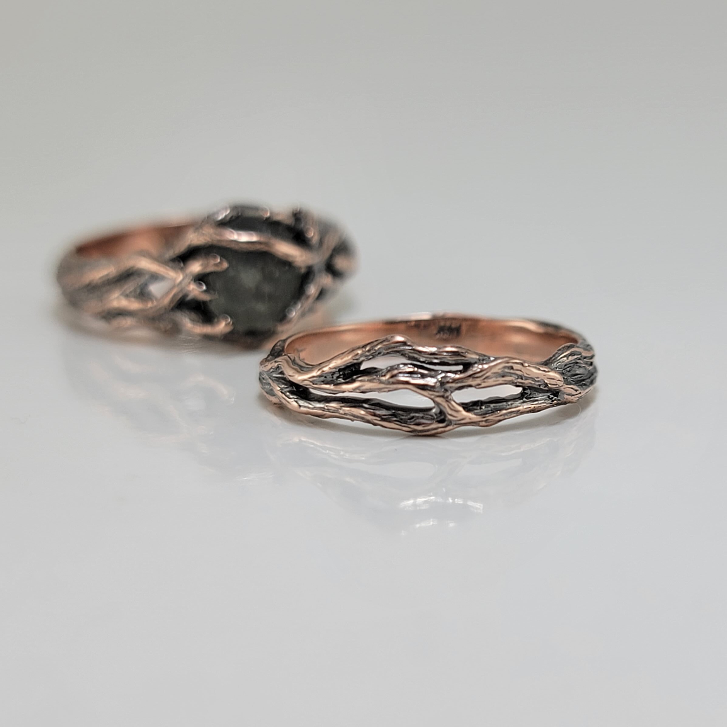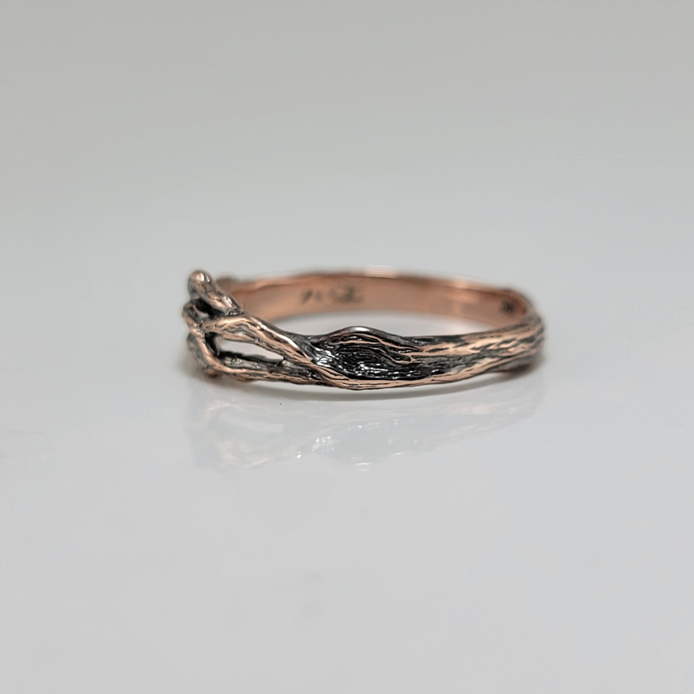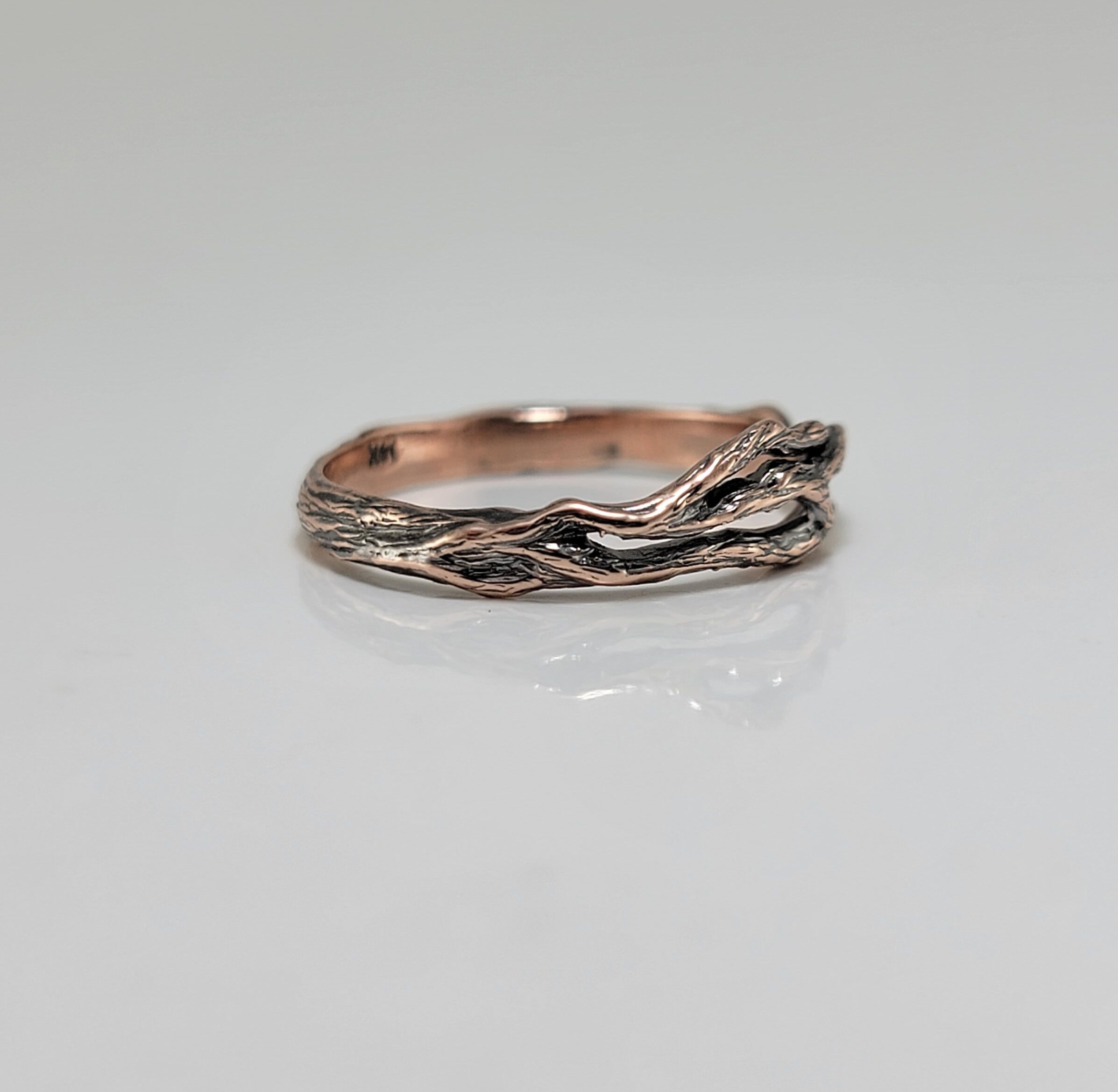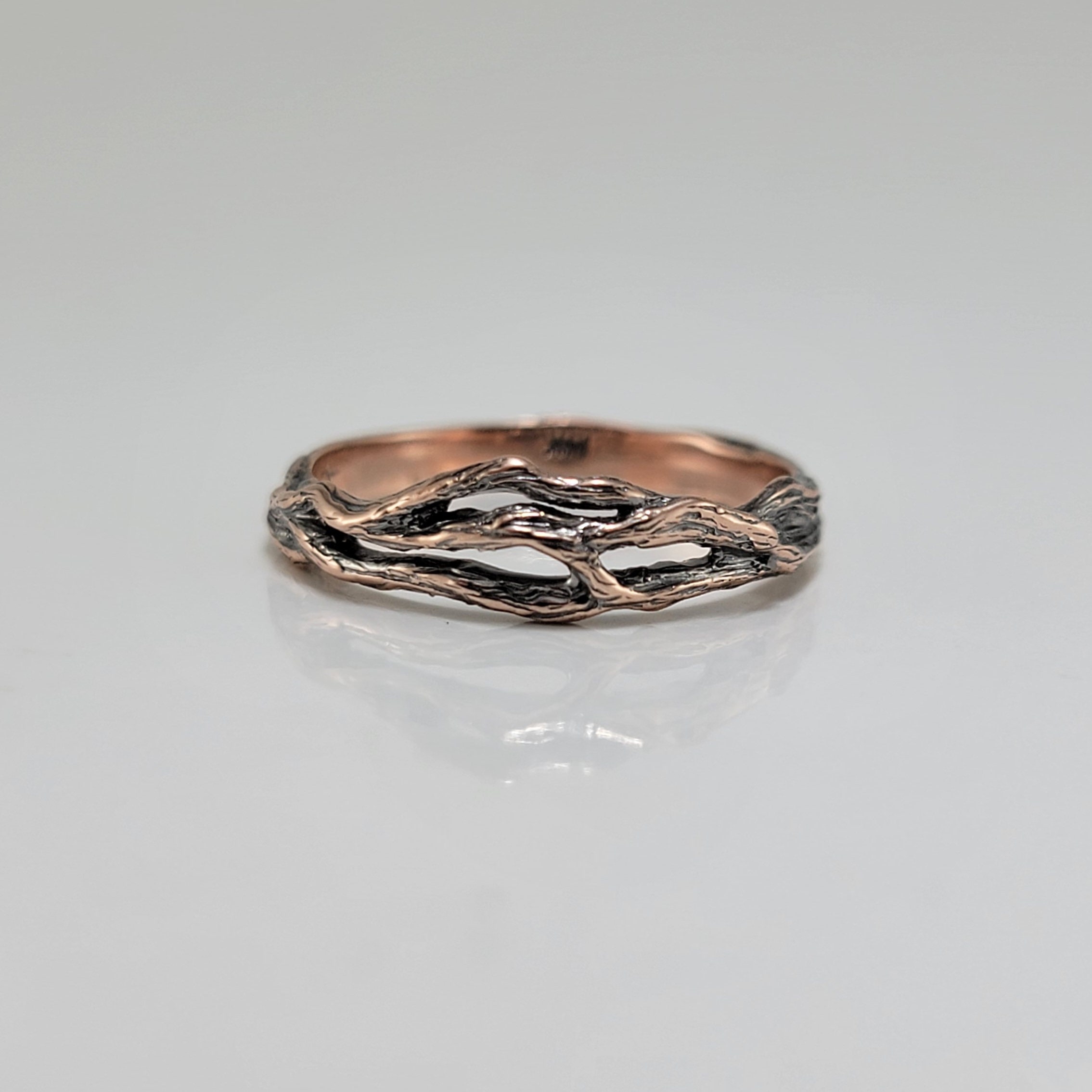 Twig Wedding Band in Solid Rose Gold with Antiqued Finish, Statement Ring by DV Jewelry Designs