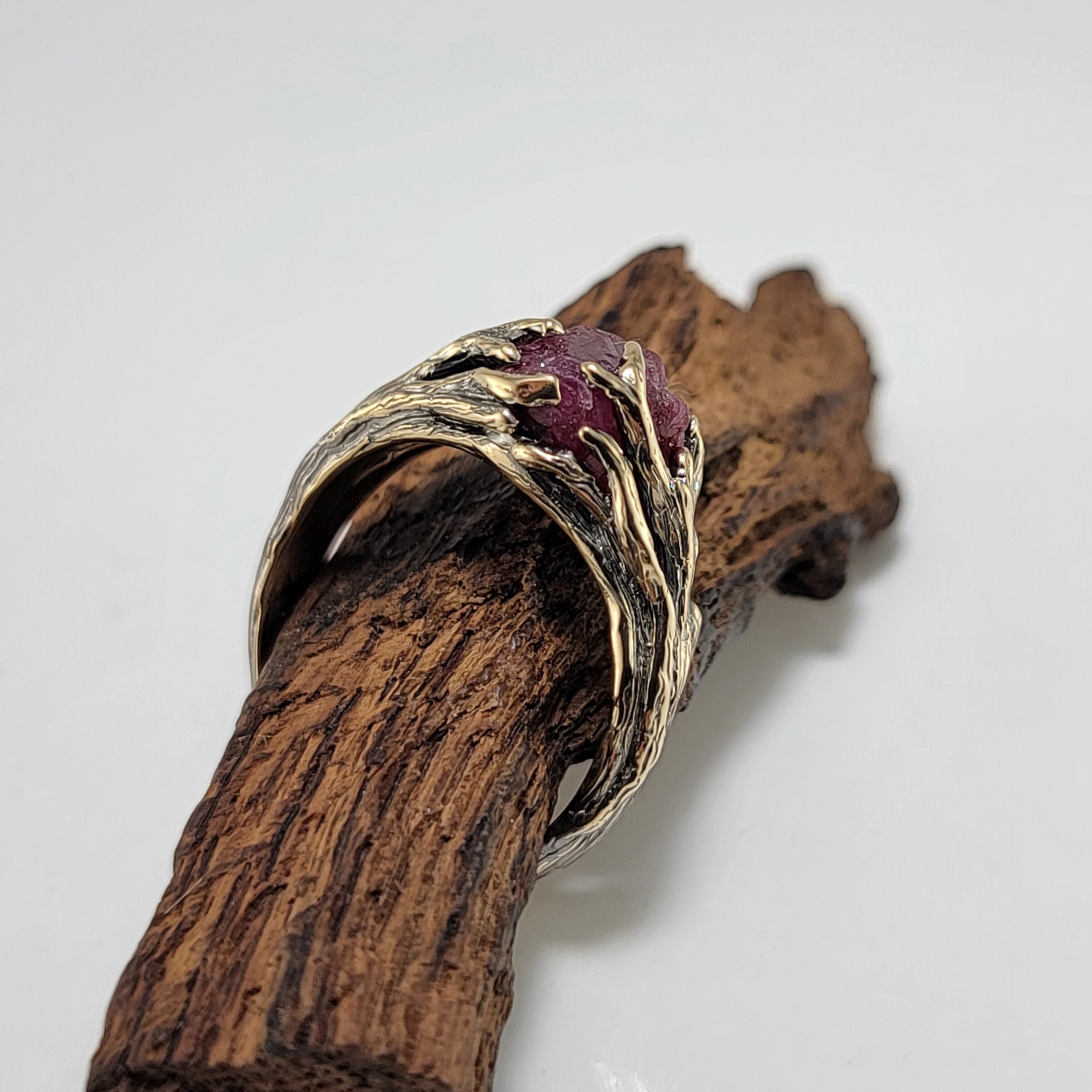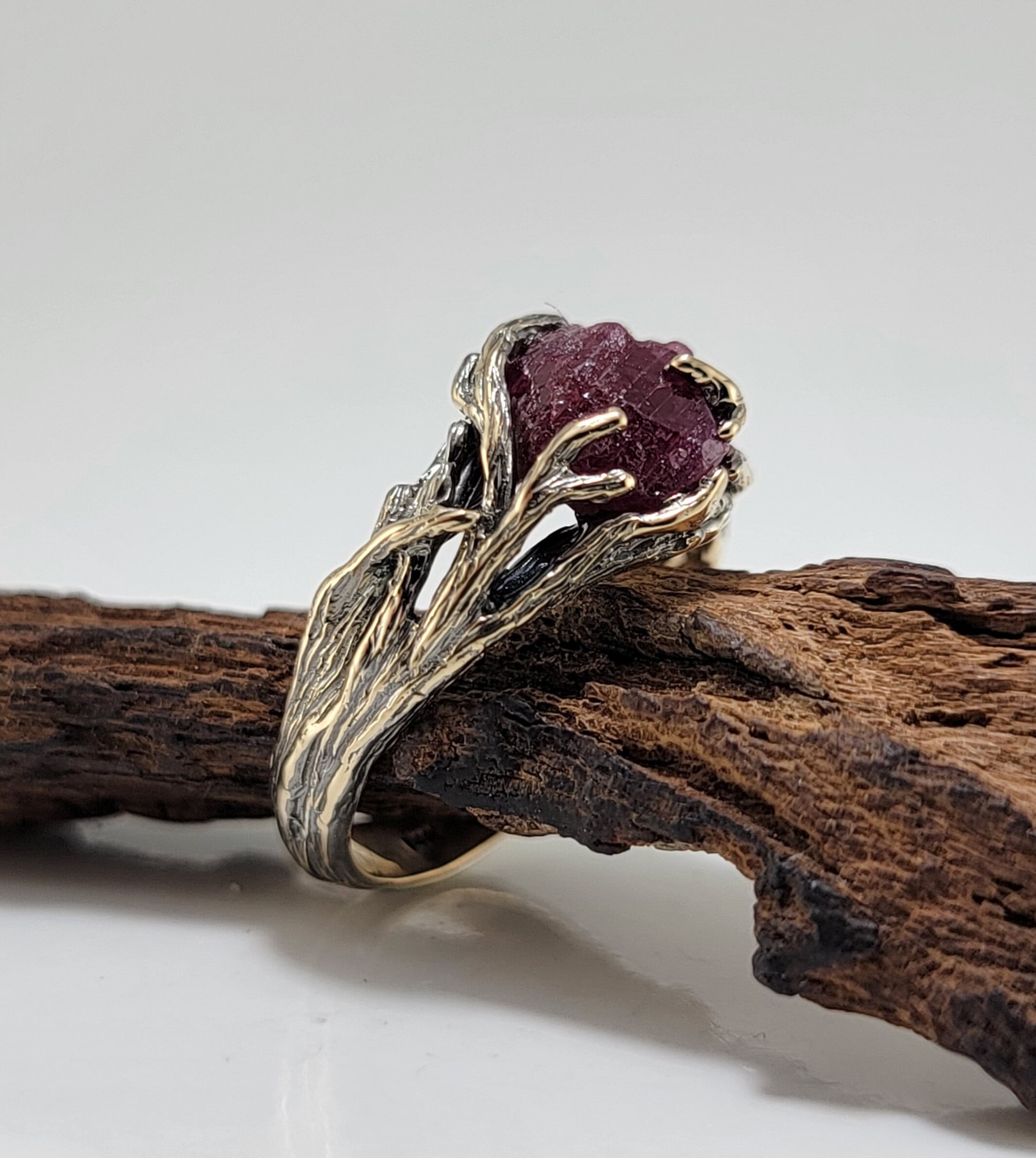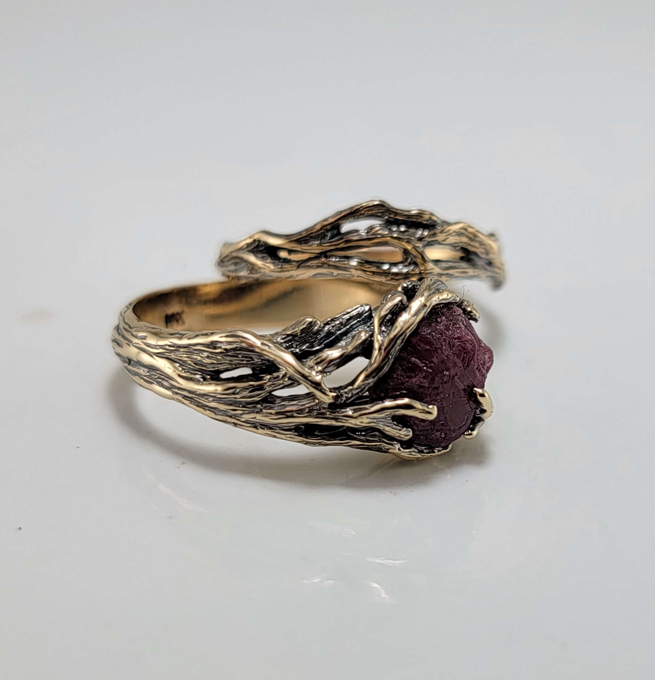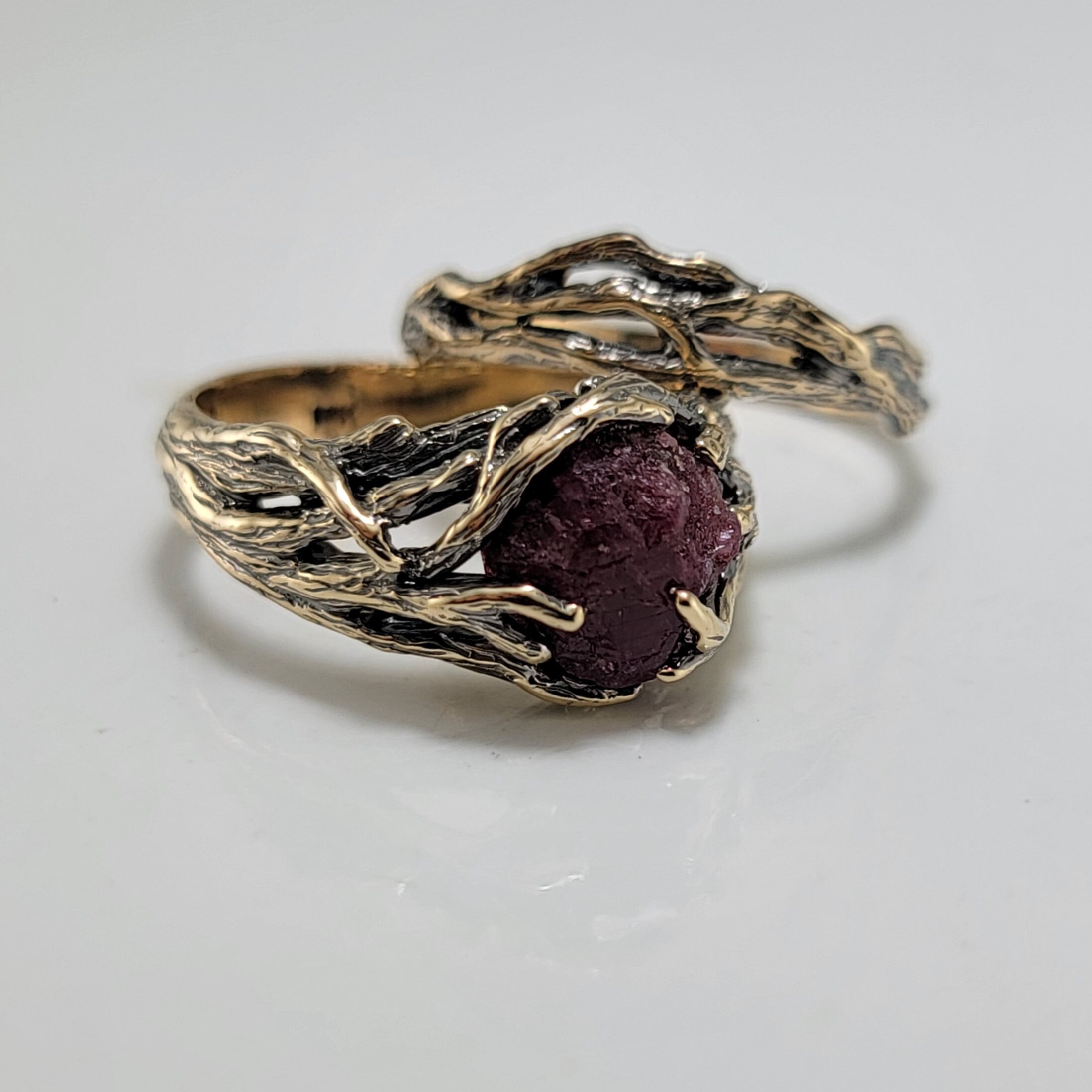 Hand-sculpted Winza Ruby Branch Twig Engagement Ring 14k Yellow Gold