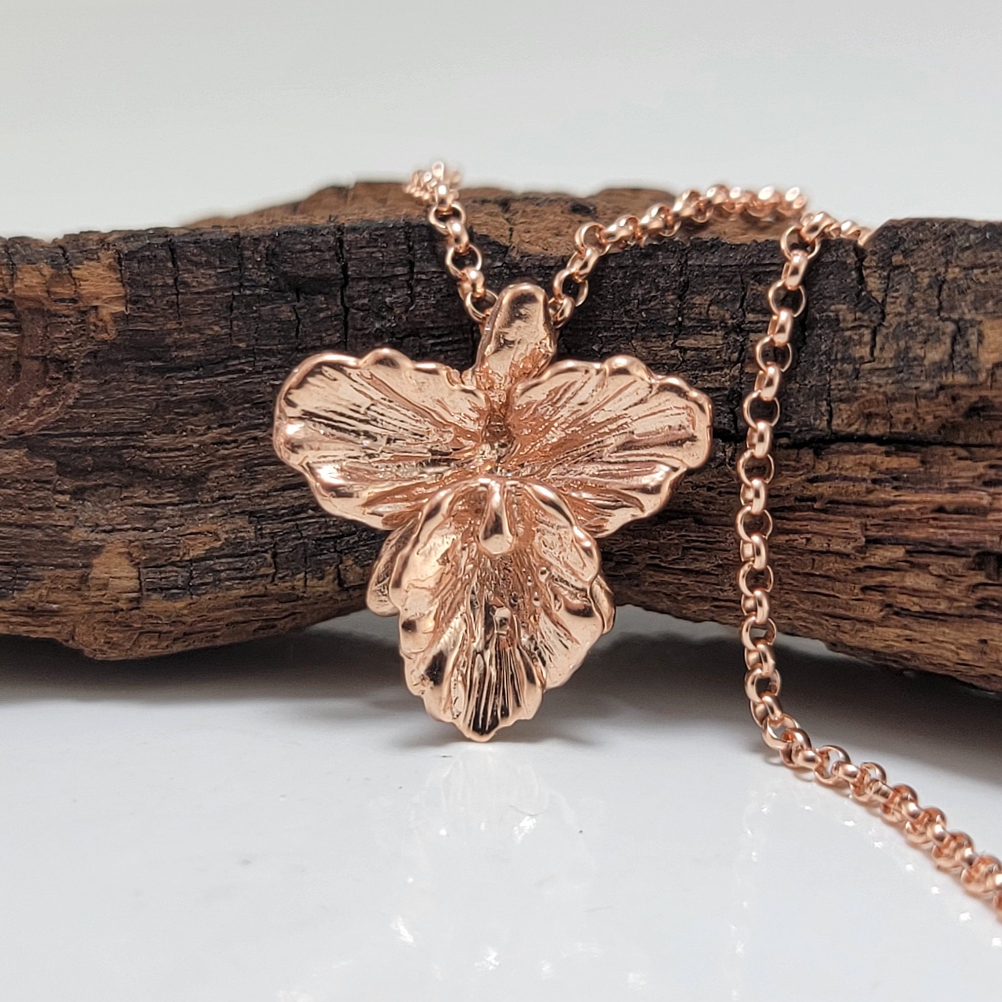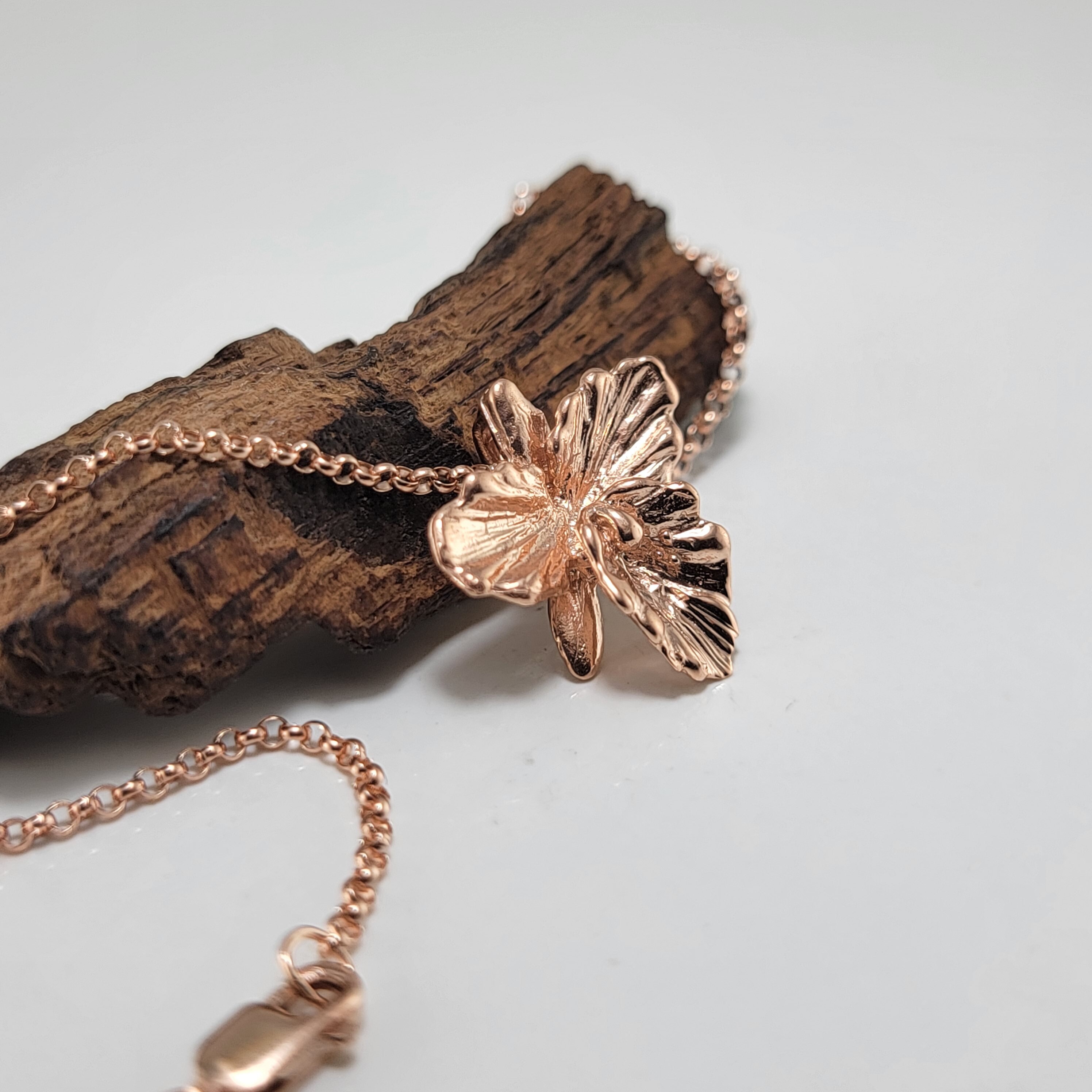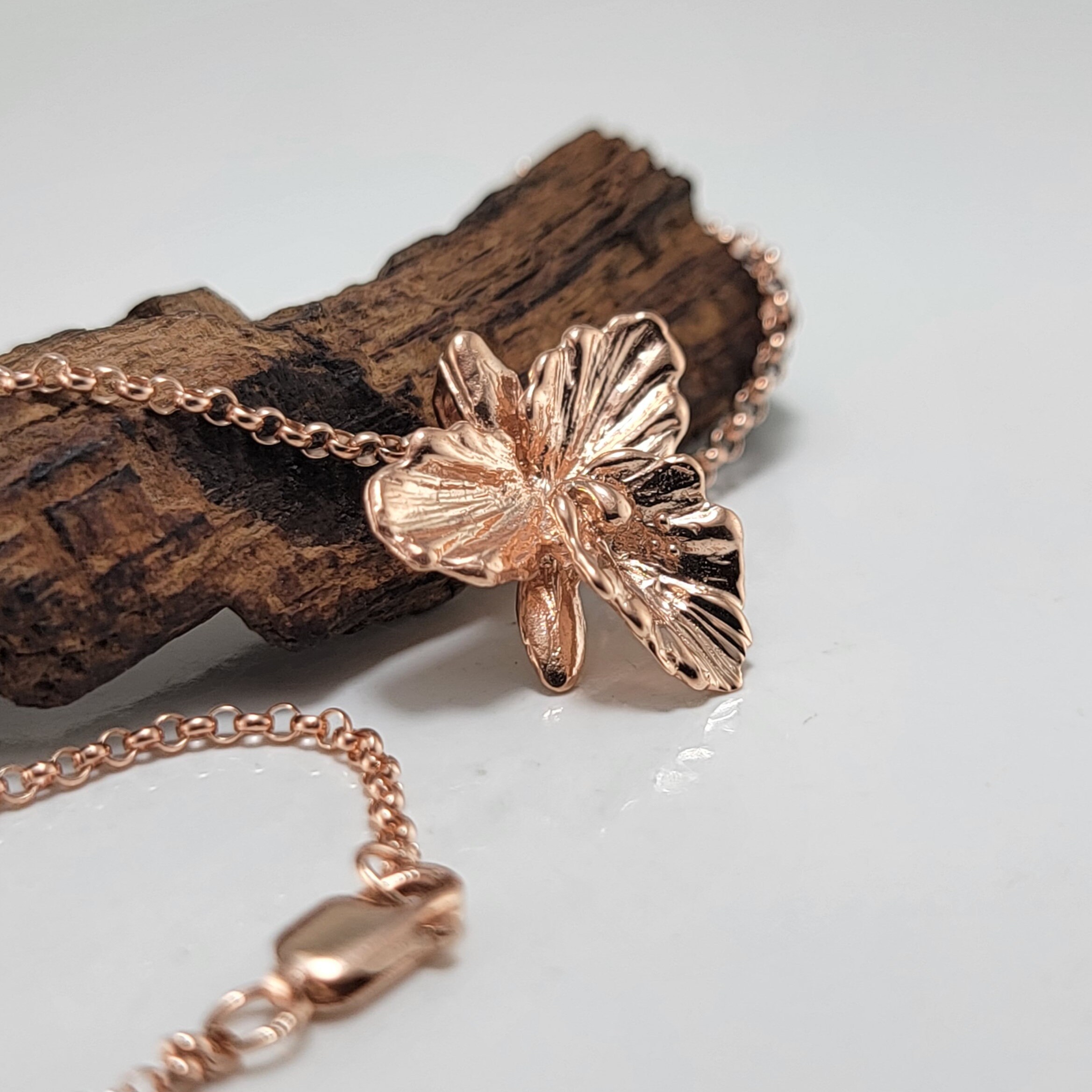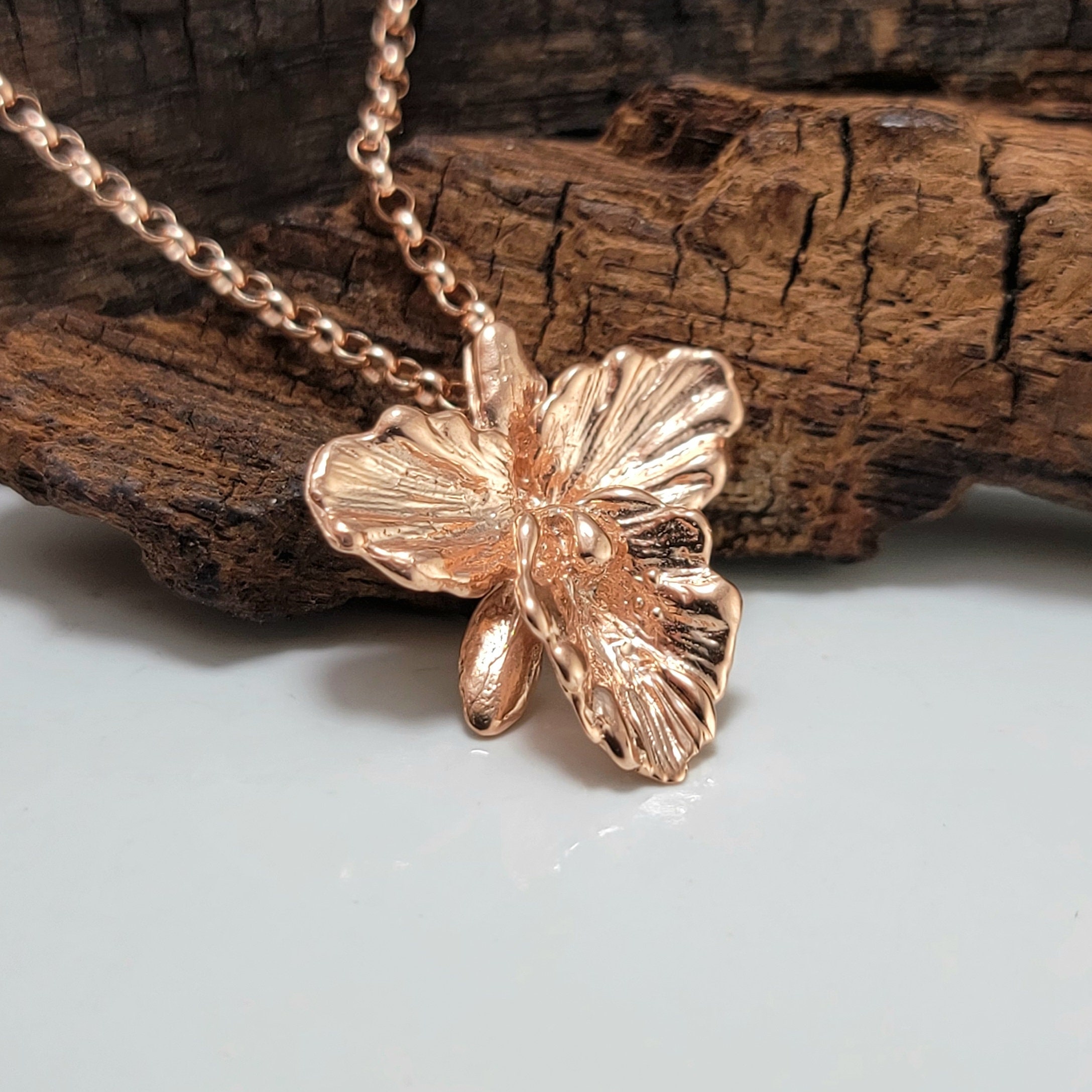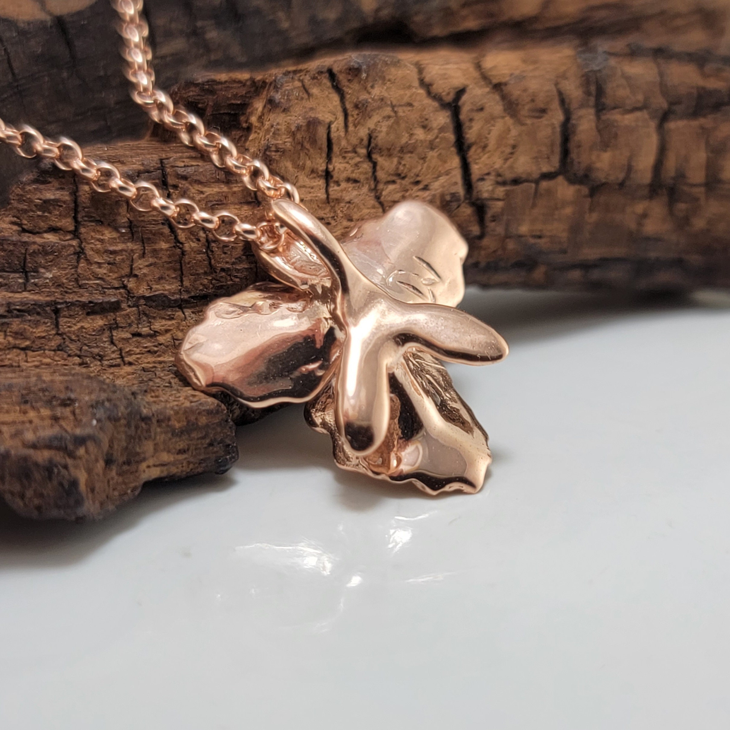 Rose Gold Plated Sterling Silver Cattleya Orchid Necklace - Orchid Necklace - Gold Pendant - Silver Necklace