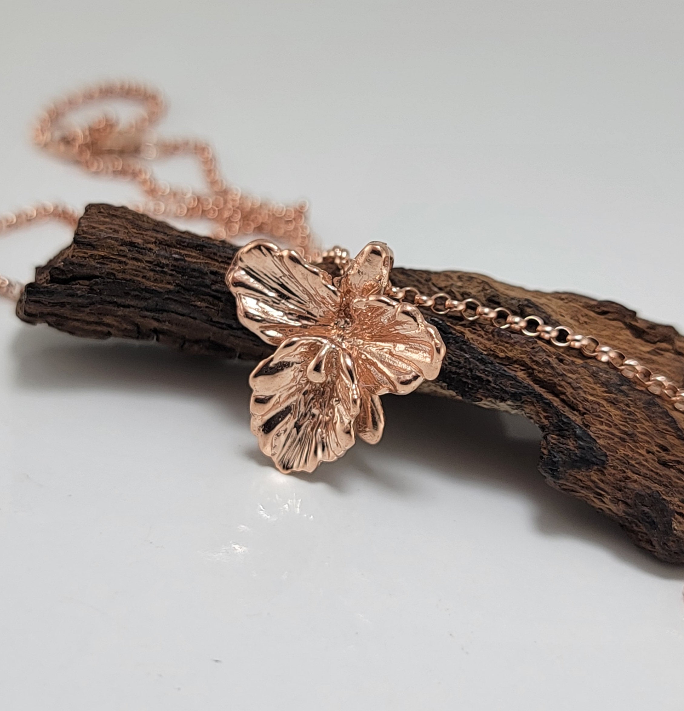 Orchid Pendant plated in 14k Rose Gold - Pendant only or with Gold Filled Cable Chain