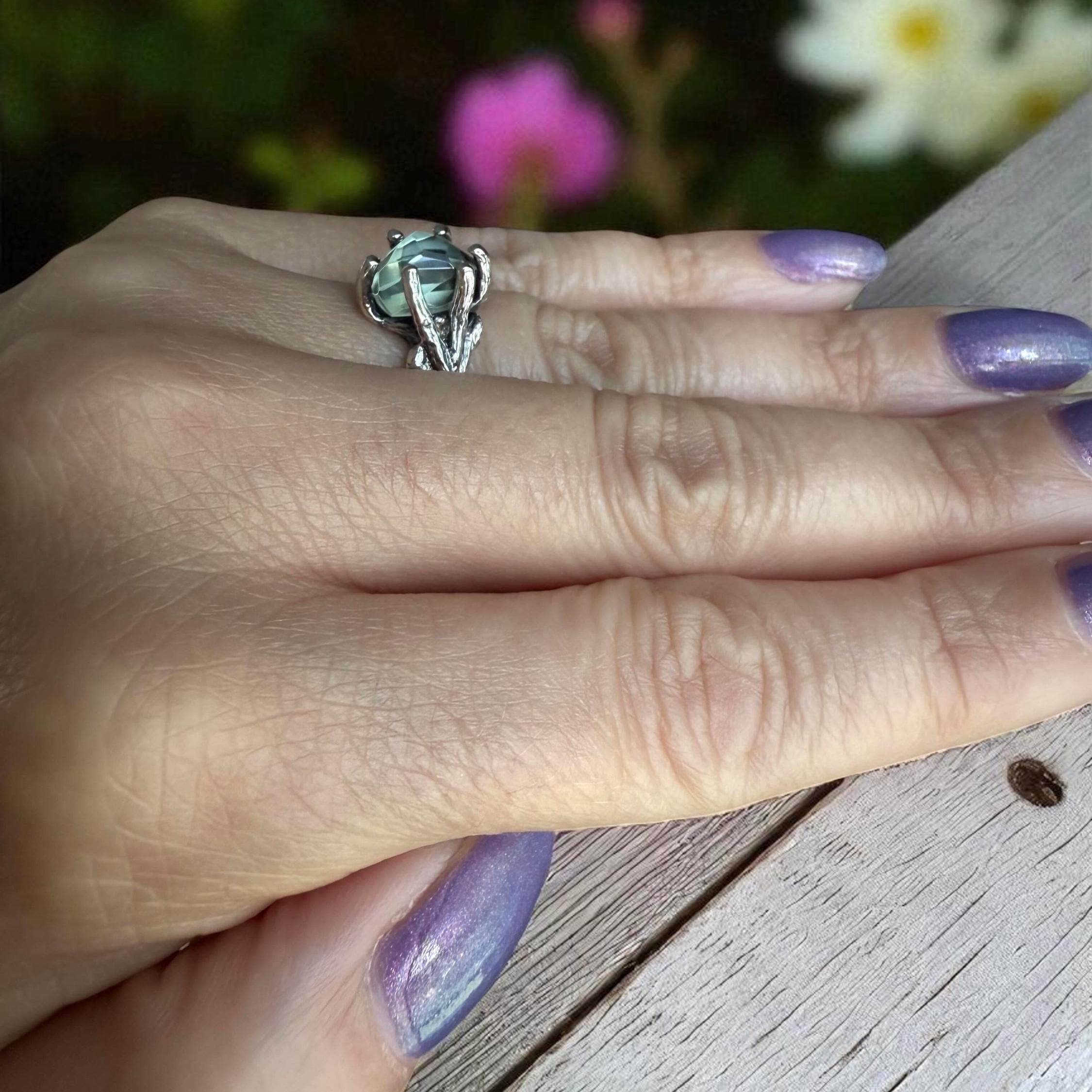 Beautiful ring with fantastic detail. The sage green color of the stone is absolutely perfect