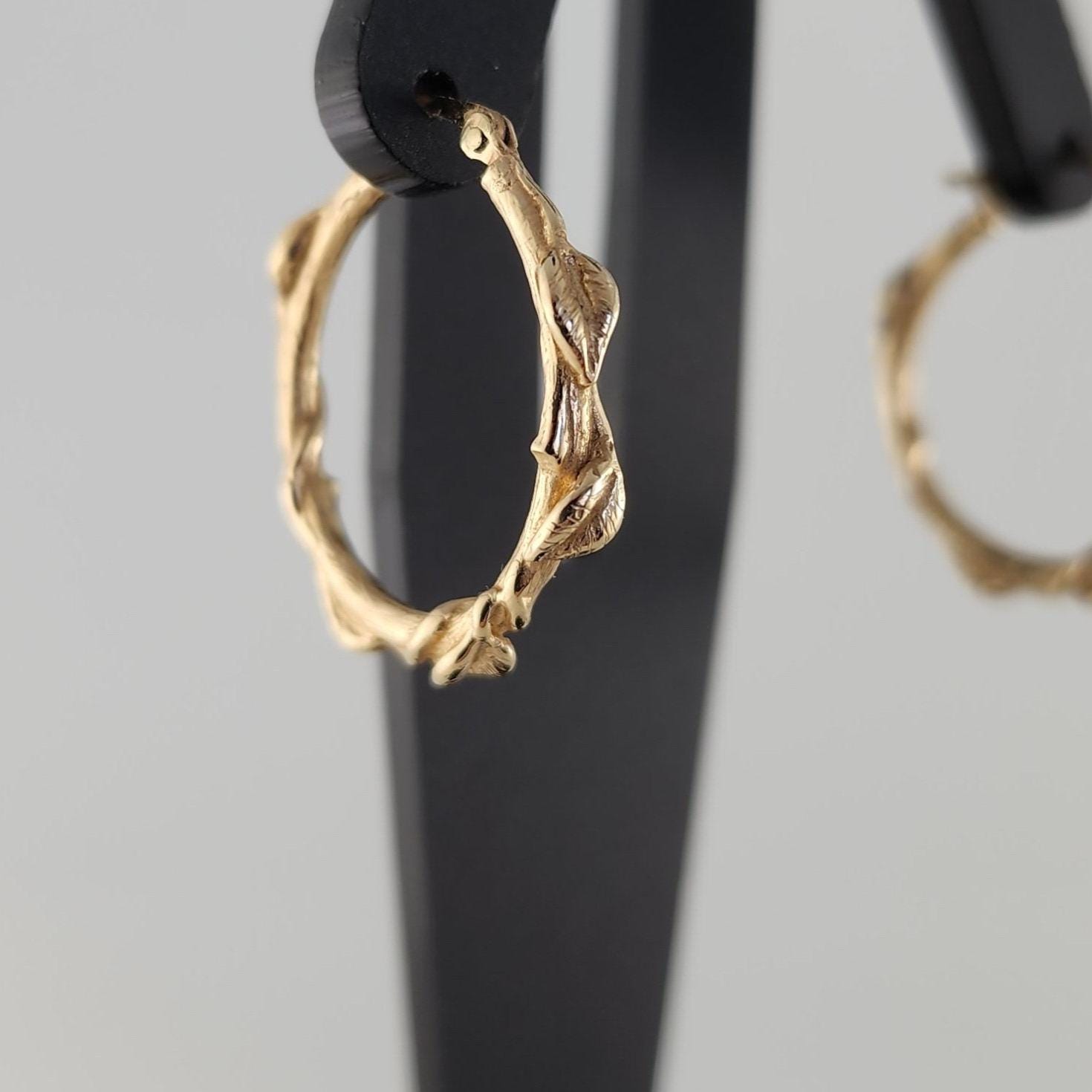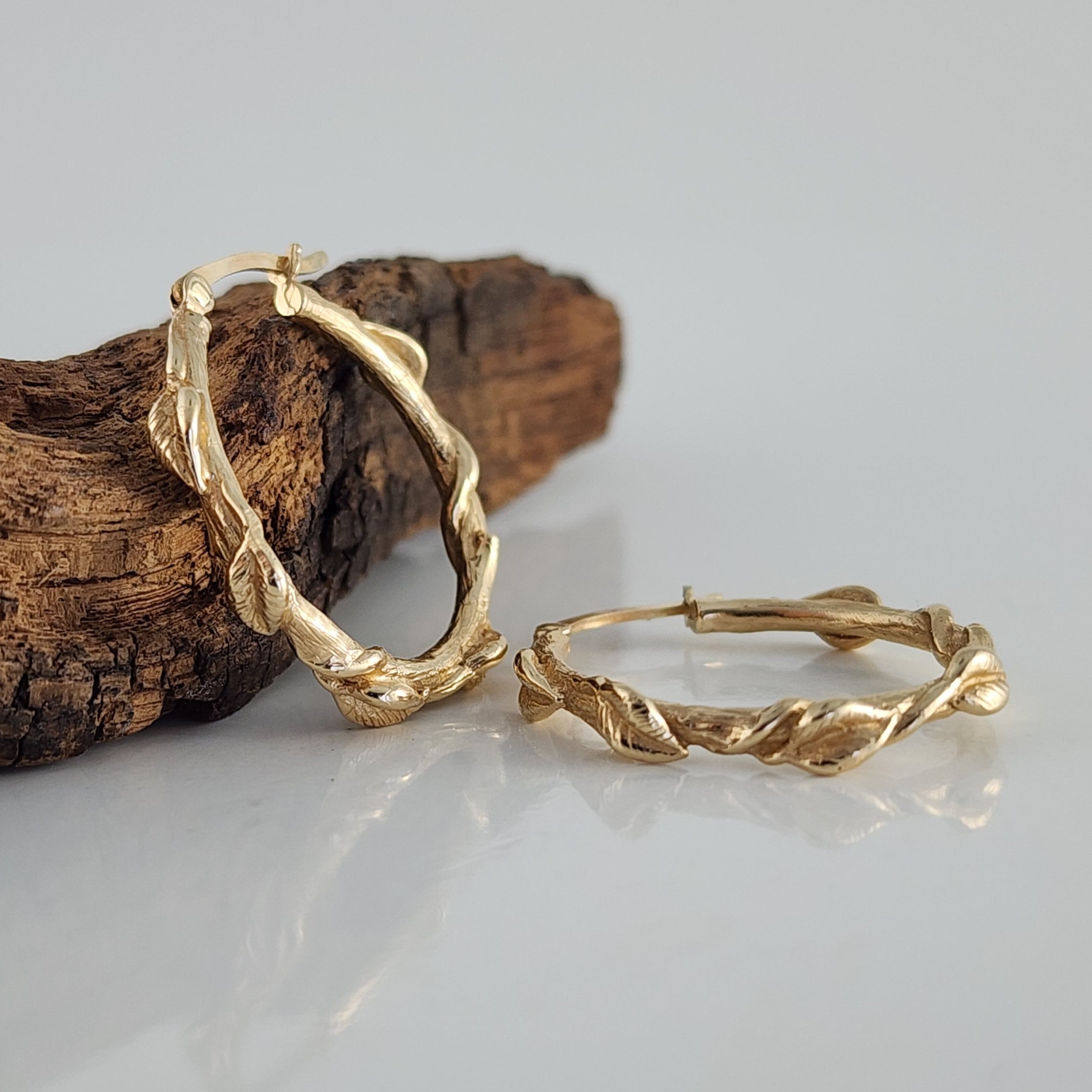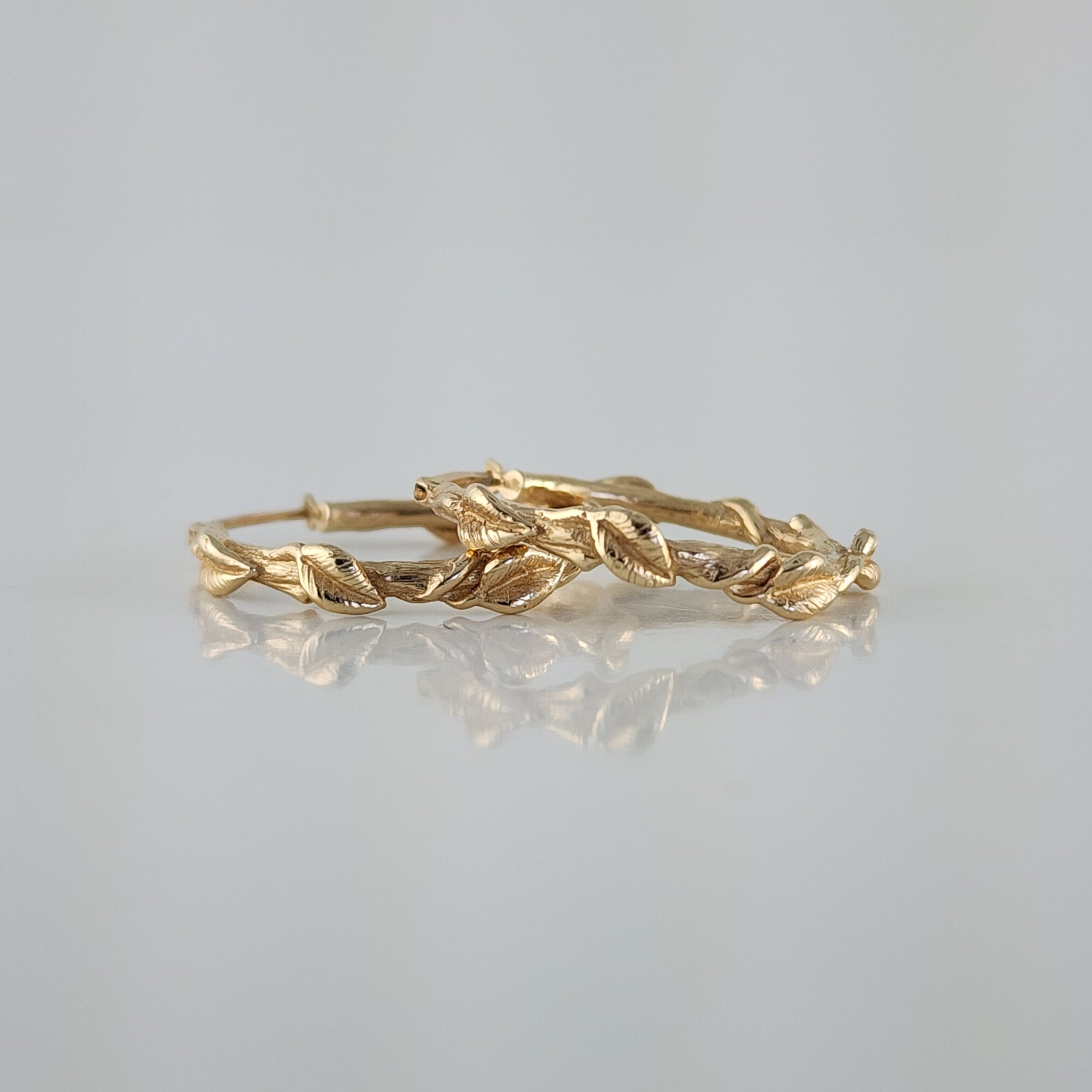 Handcrafted leaf hoop earrings in Sterling Silver, 14k or 18k solid gold. These floral branch hoops are a great anniversary gift or Valentine's Day gift for that special someone. A beautiful everyday accessory to add to your collection.