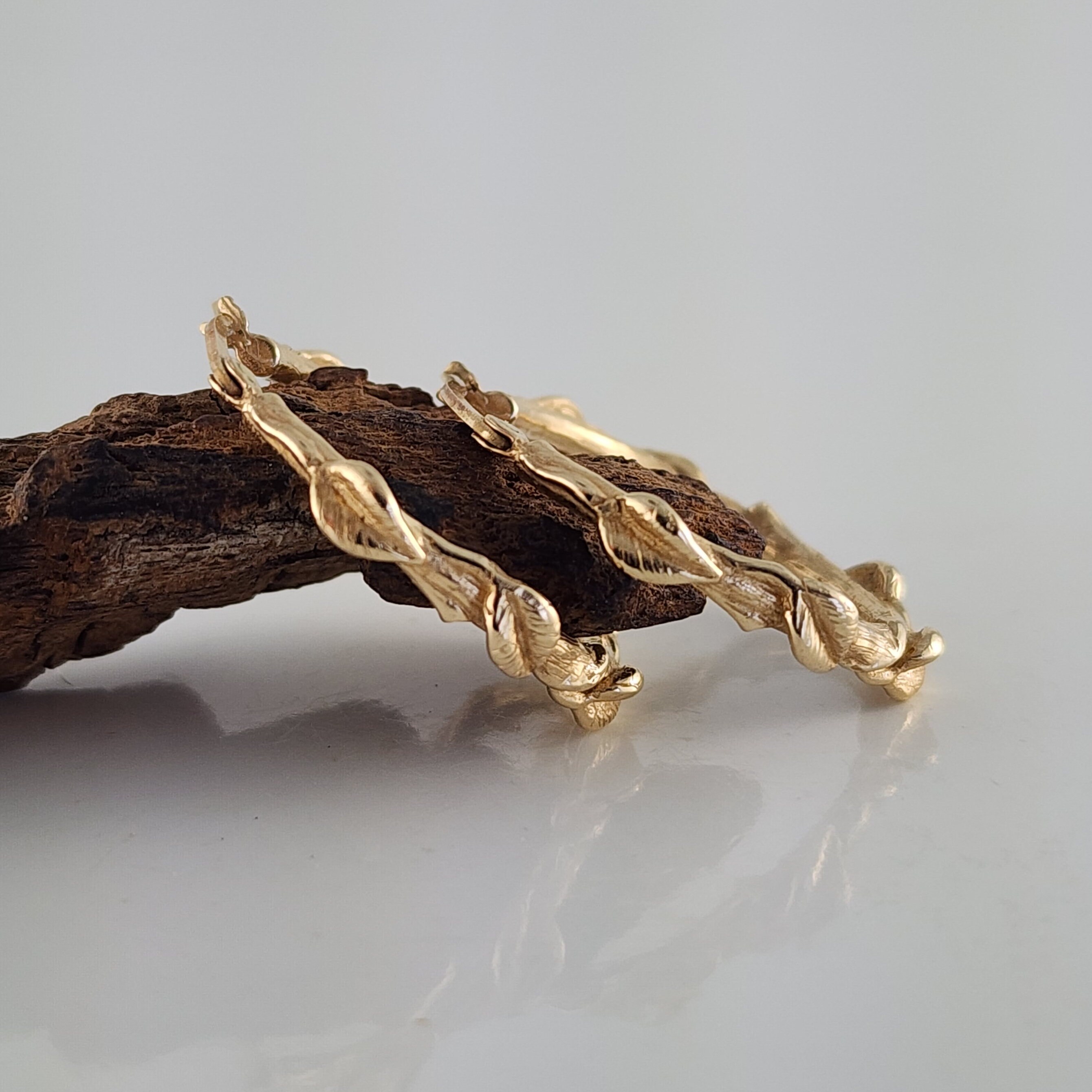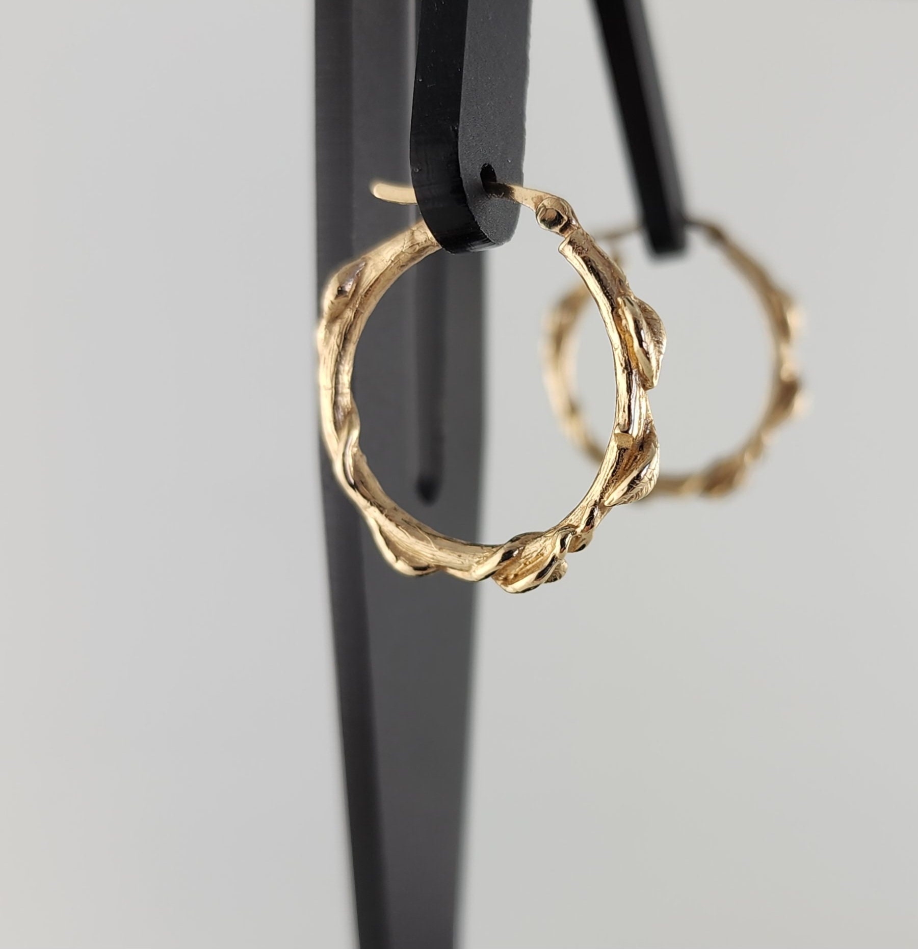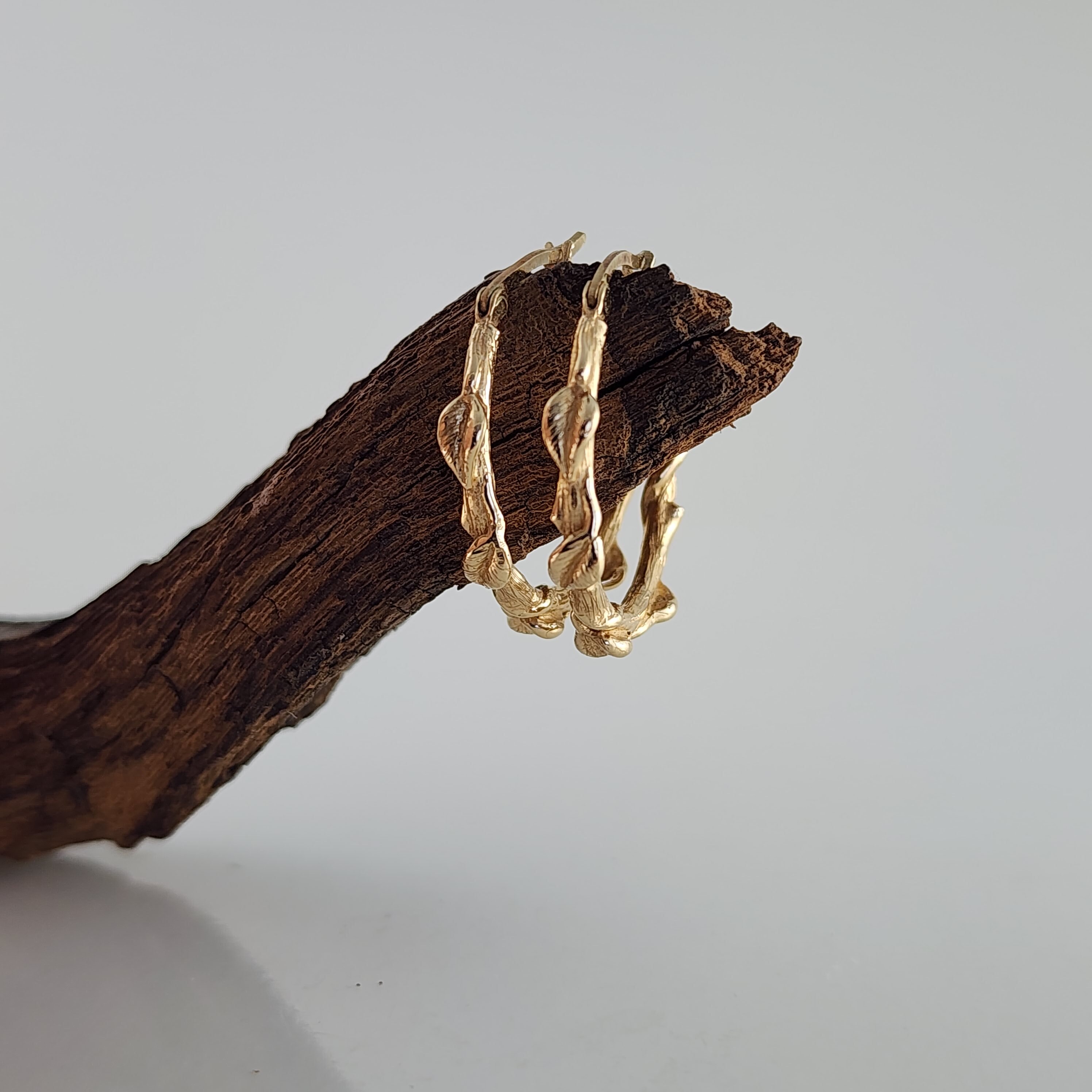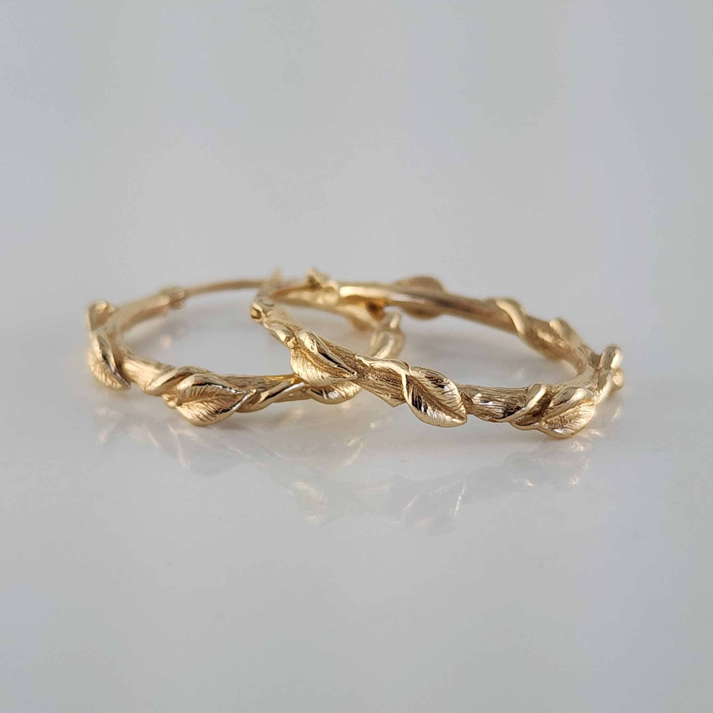 Handcrafted leaf hoop earrings in Sterling Silver, 14k or 18k solid gold. These floral branch hoops are a great anniversary gift or Valentine's Day gift for that special someone. A beautiful everyday accessory to add to your collection.