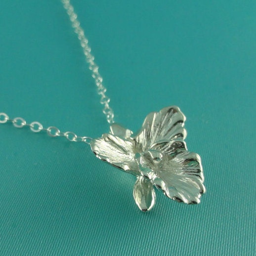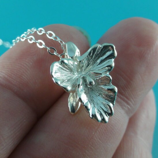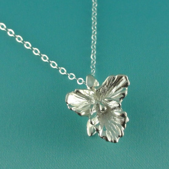 Sterling Silver Cattleya Orchid Necklace: Floral Pendant