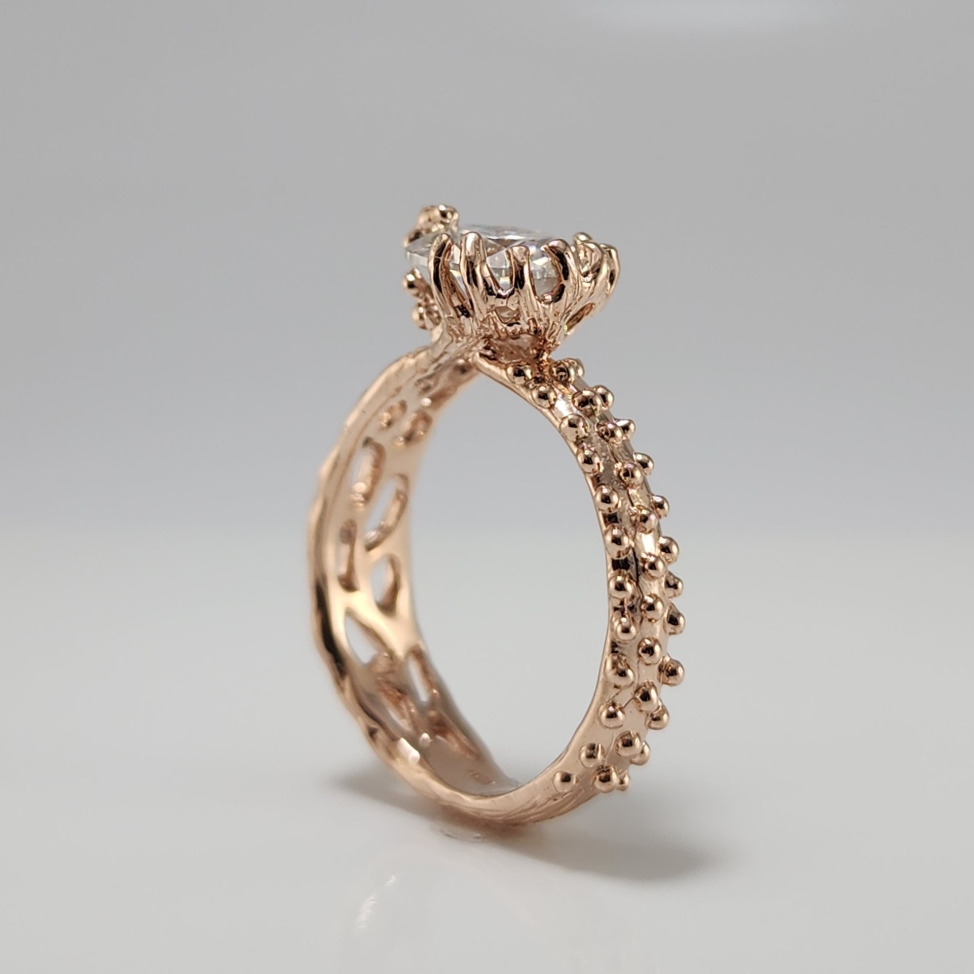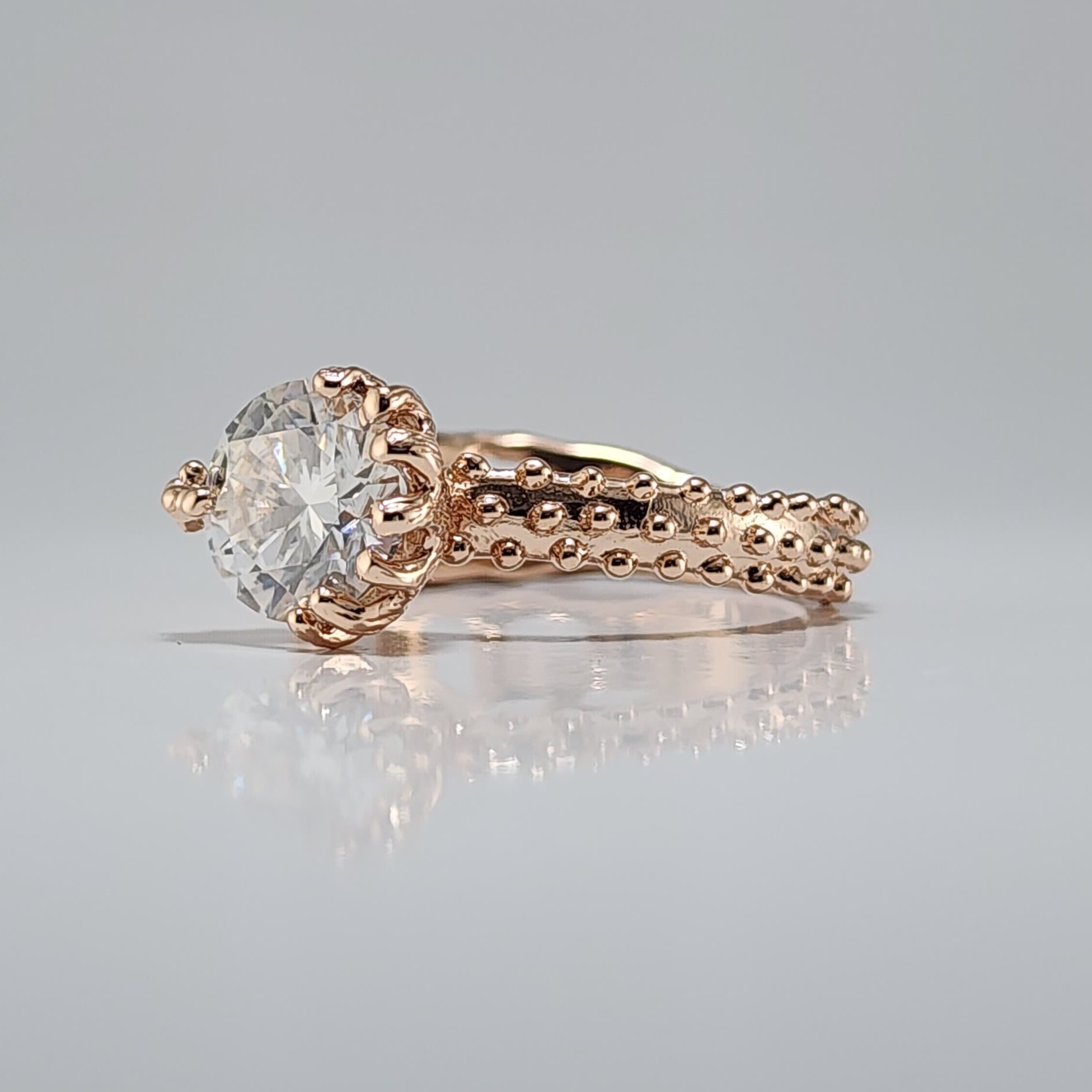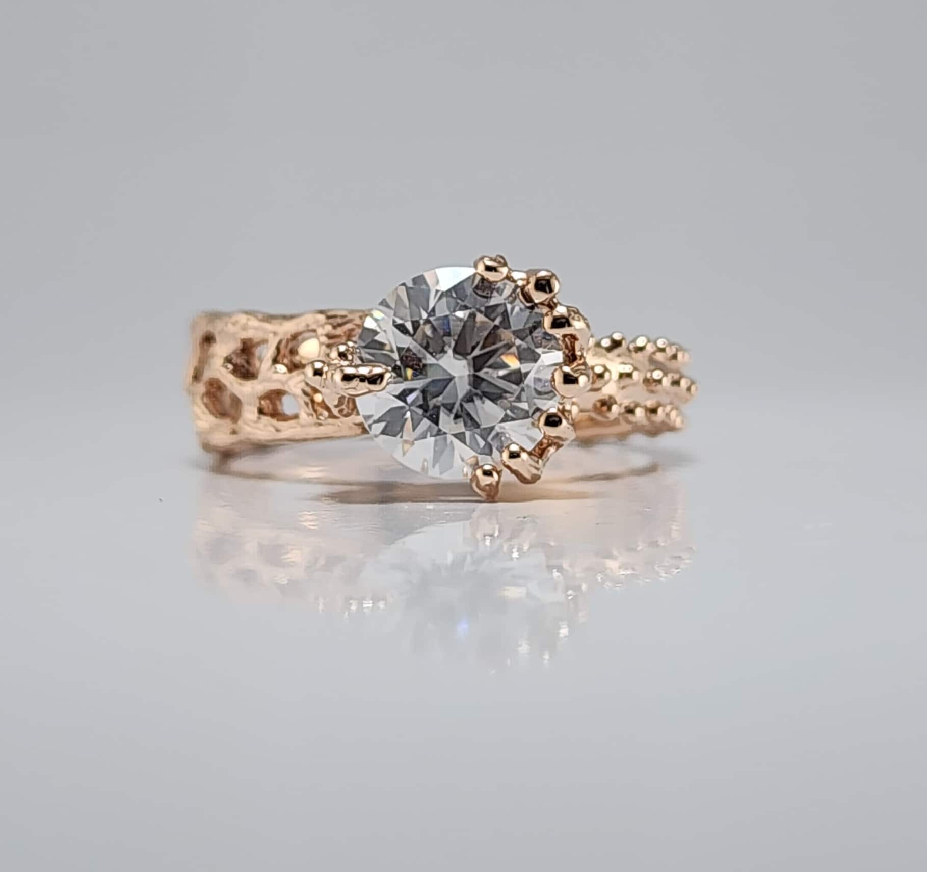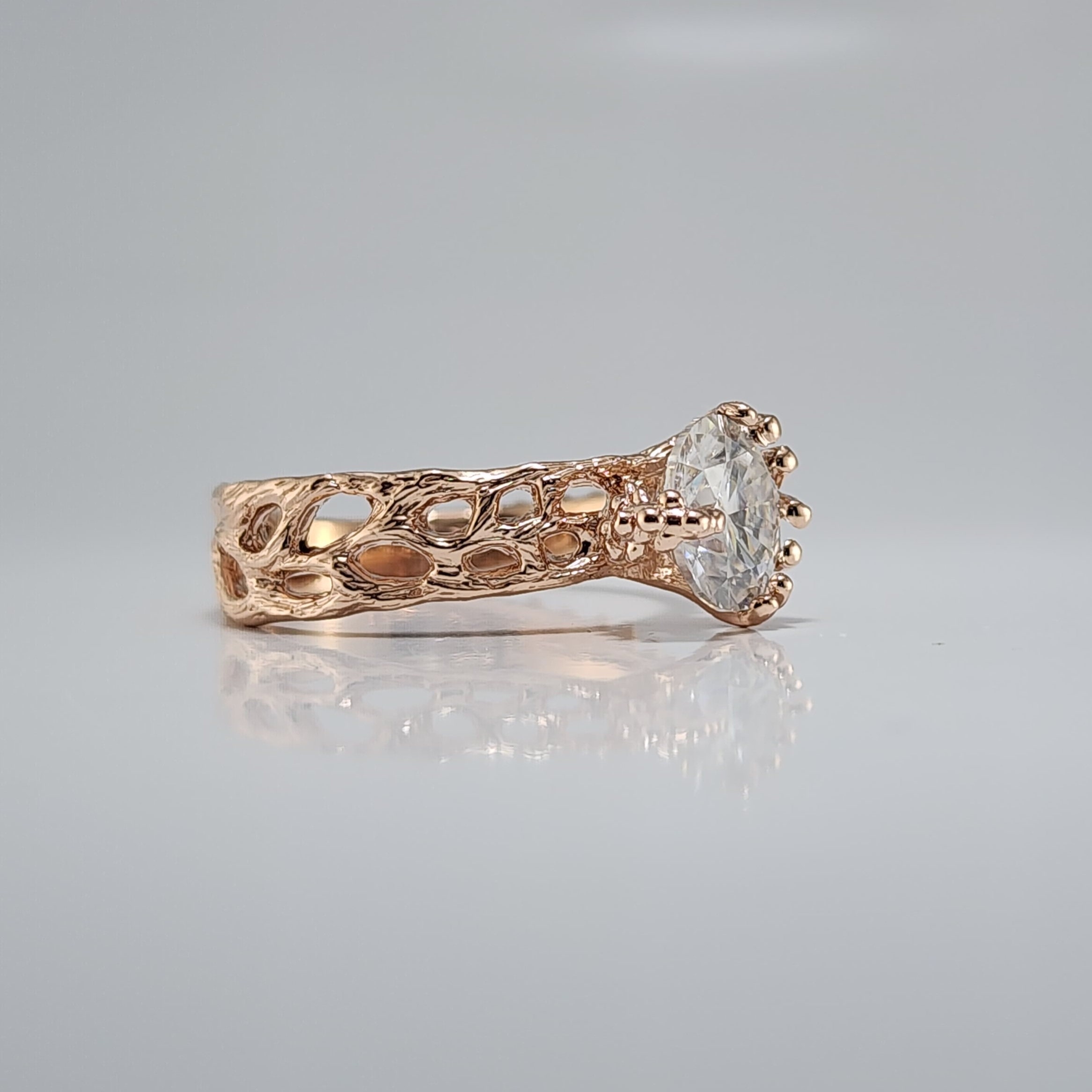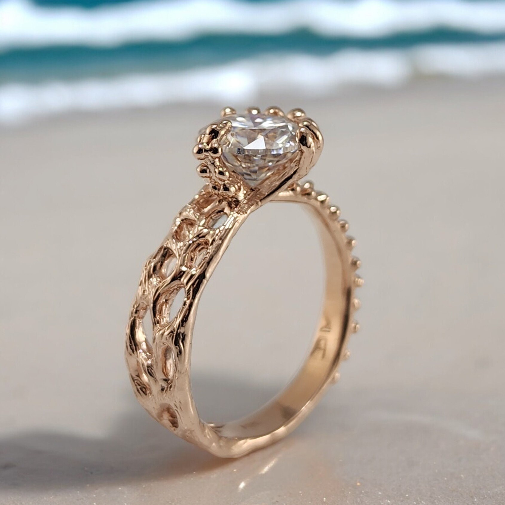 Round Moissanite Engagement Ring - Beach Wedding - Starfish Coral Engagement Ring - 14k Solid Rose Gold - Promise Ring