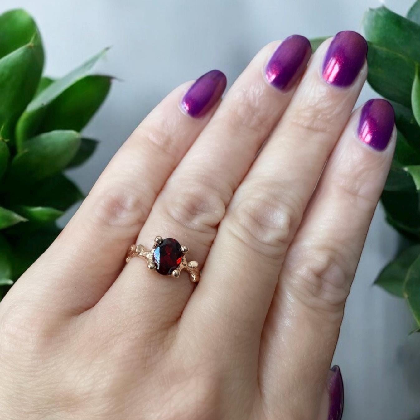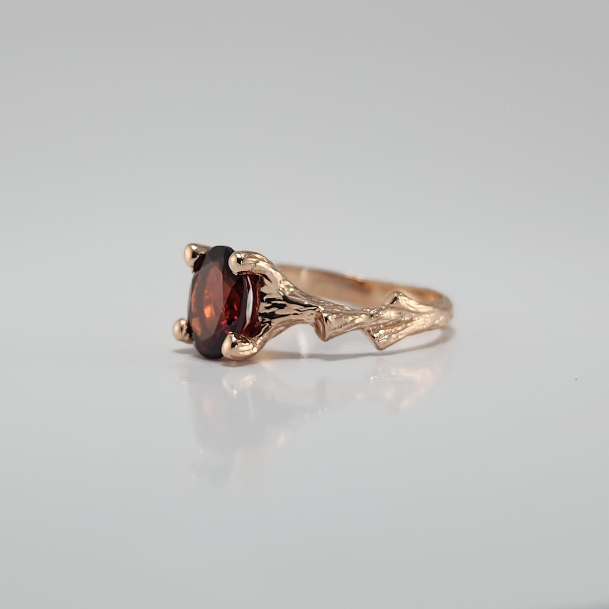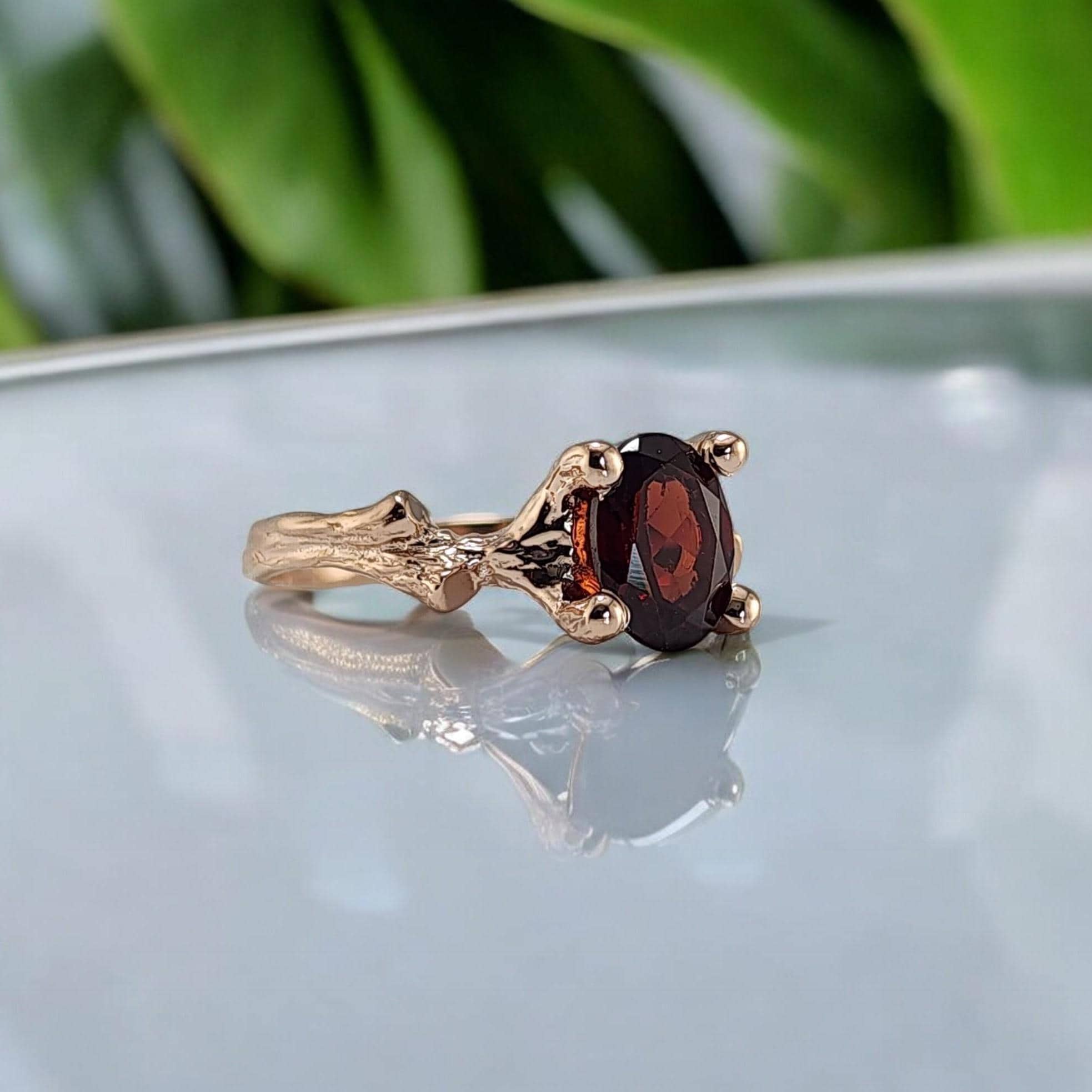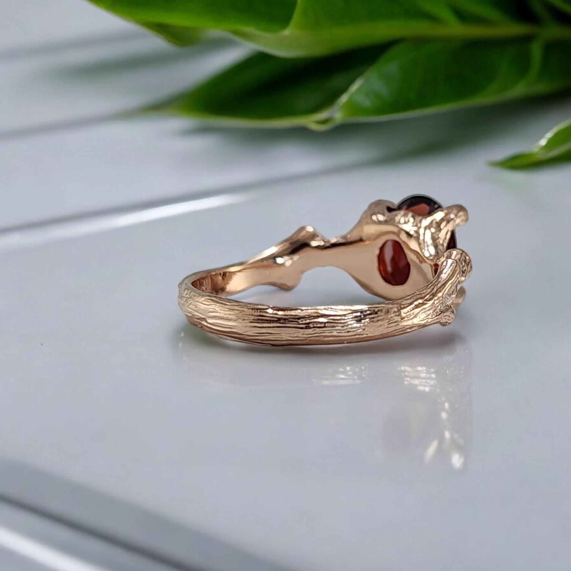 Garnet Gemstone 14k Gold Twig Engagement Ring - Birthstone Statement Wedding Jewelry by DV Jewelry Designs
