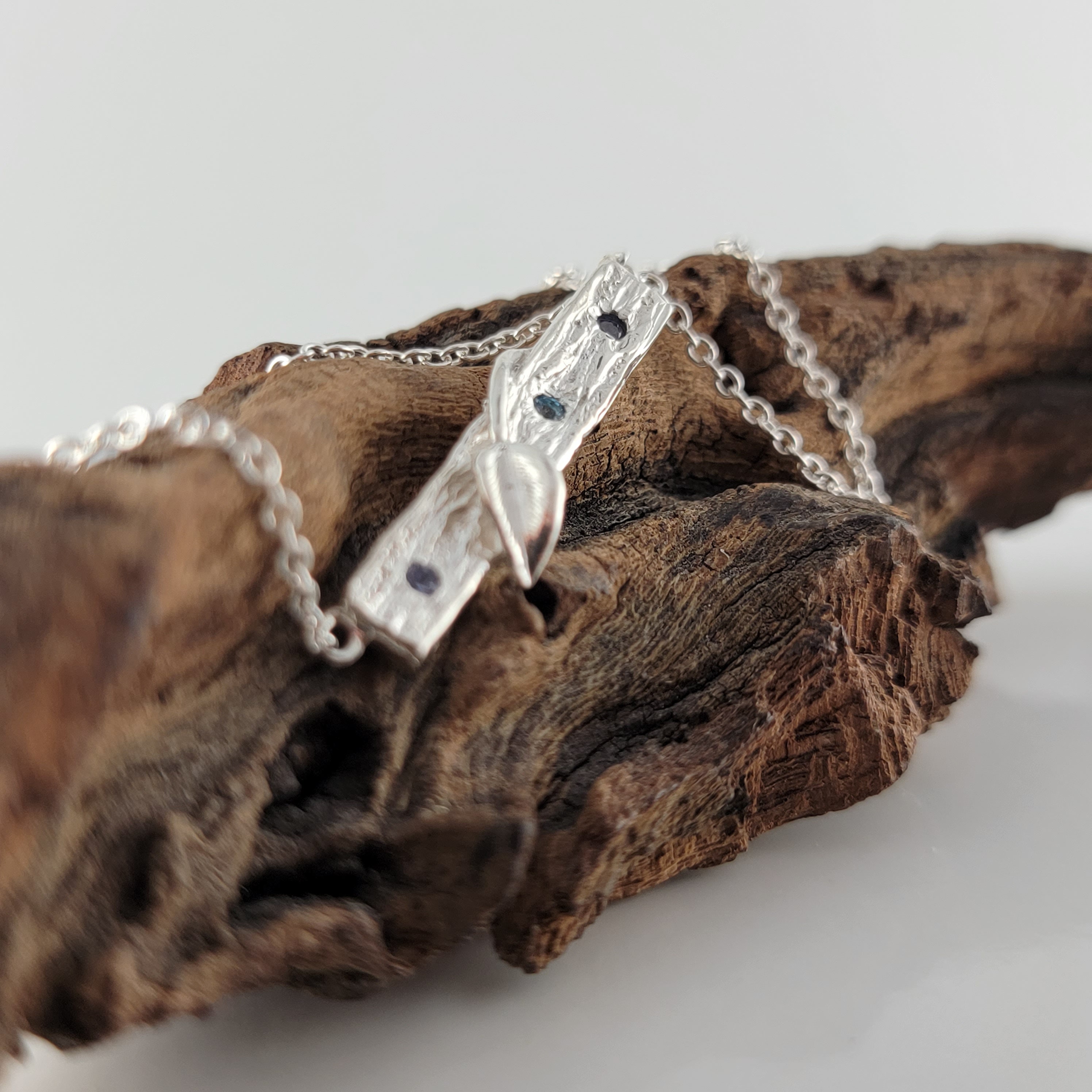 Process: Hand-sculpted in jewelers wax, then cast in solid sterling silver.