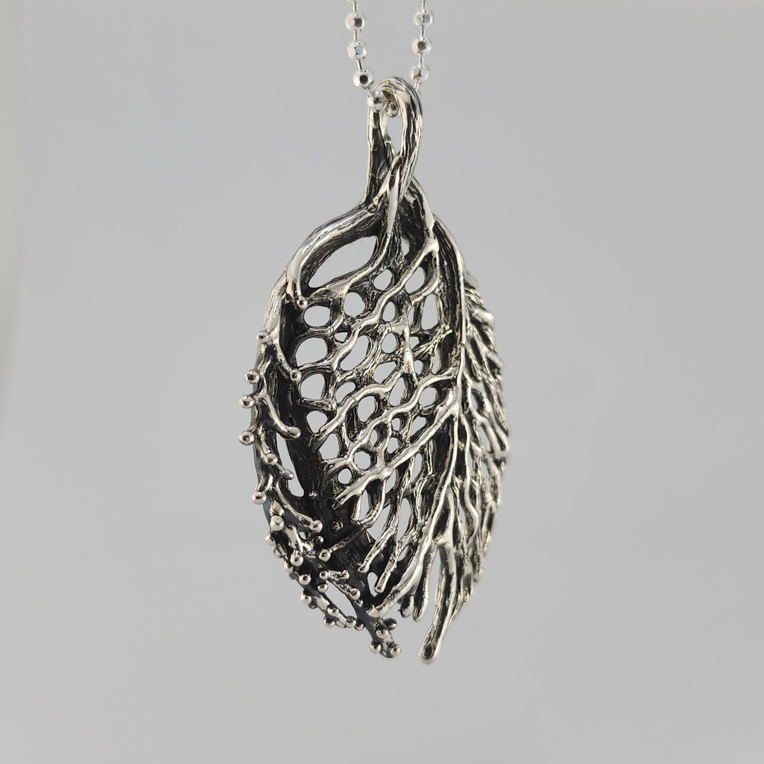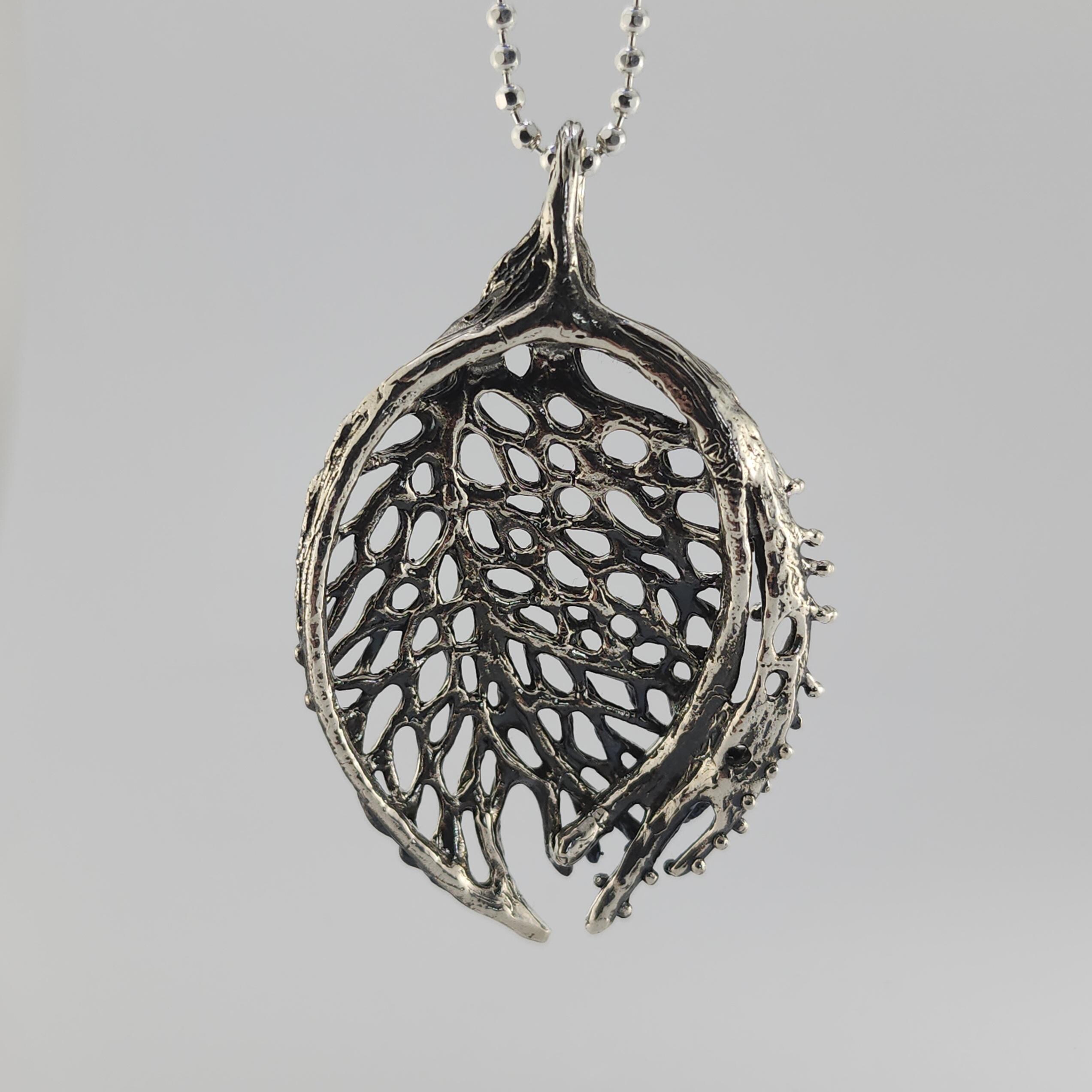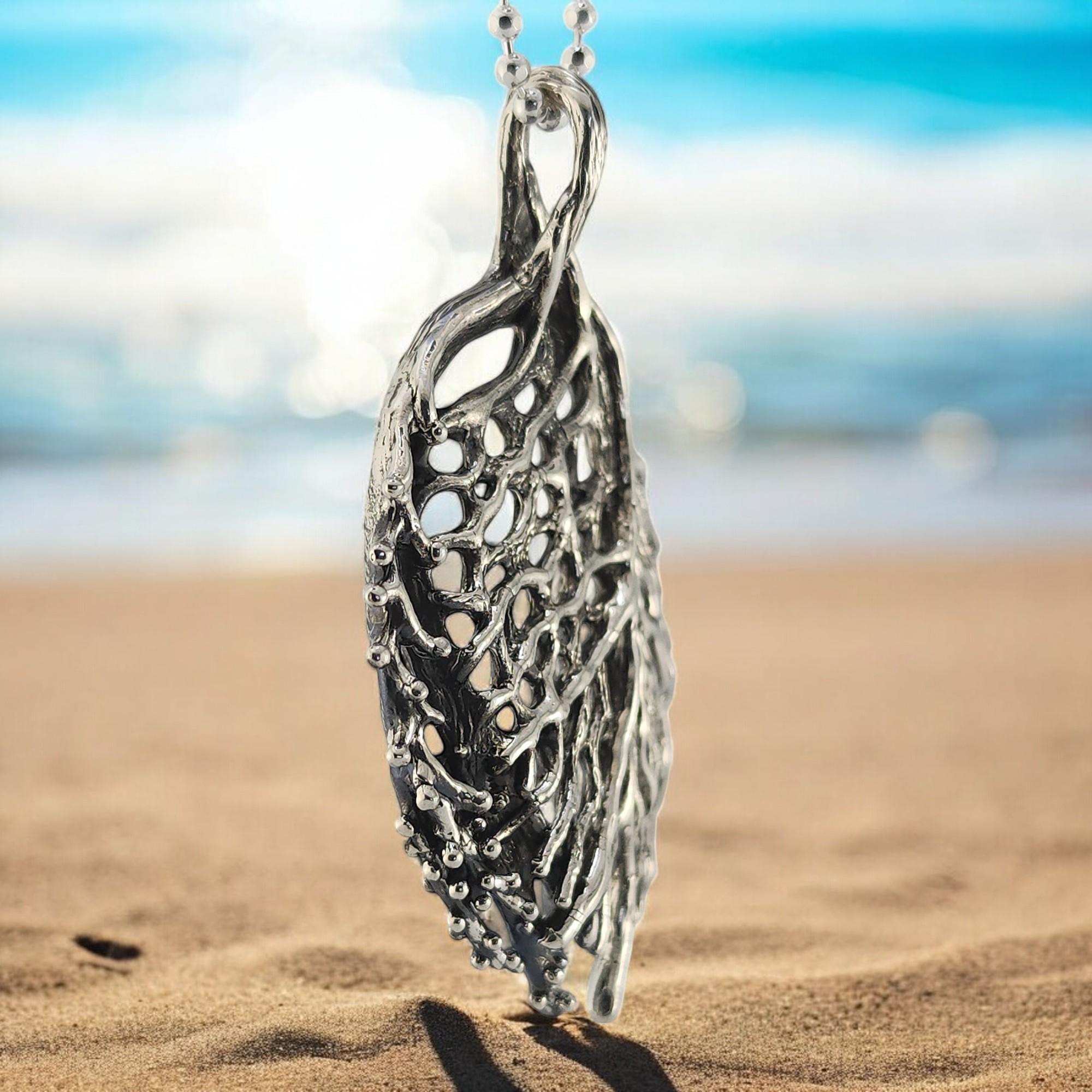 Coral Sea Fan Pendant – Sterling Silver Beach Jewelry Gift for Birthday & Anniversary, Unique Detailed Ocean Necklace
