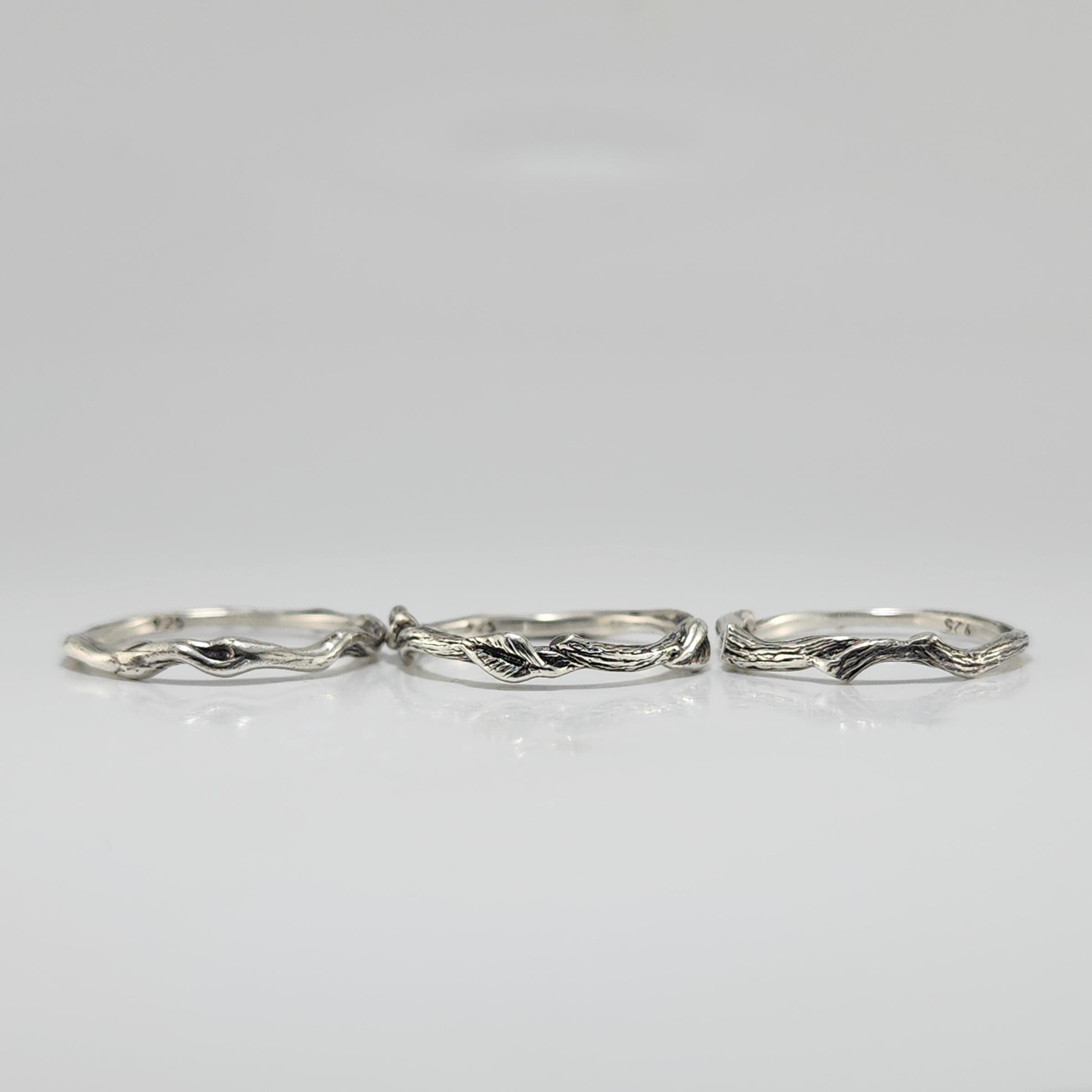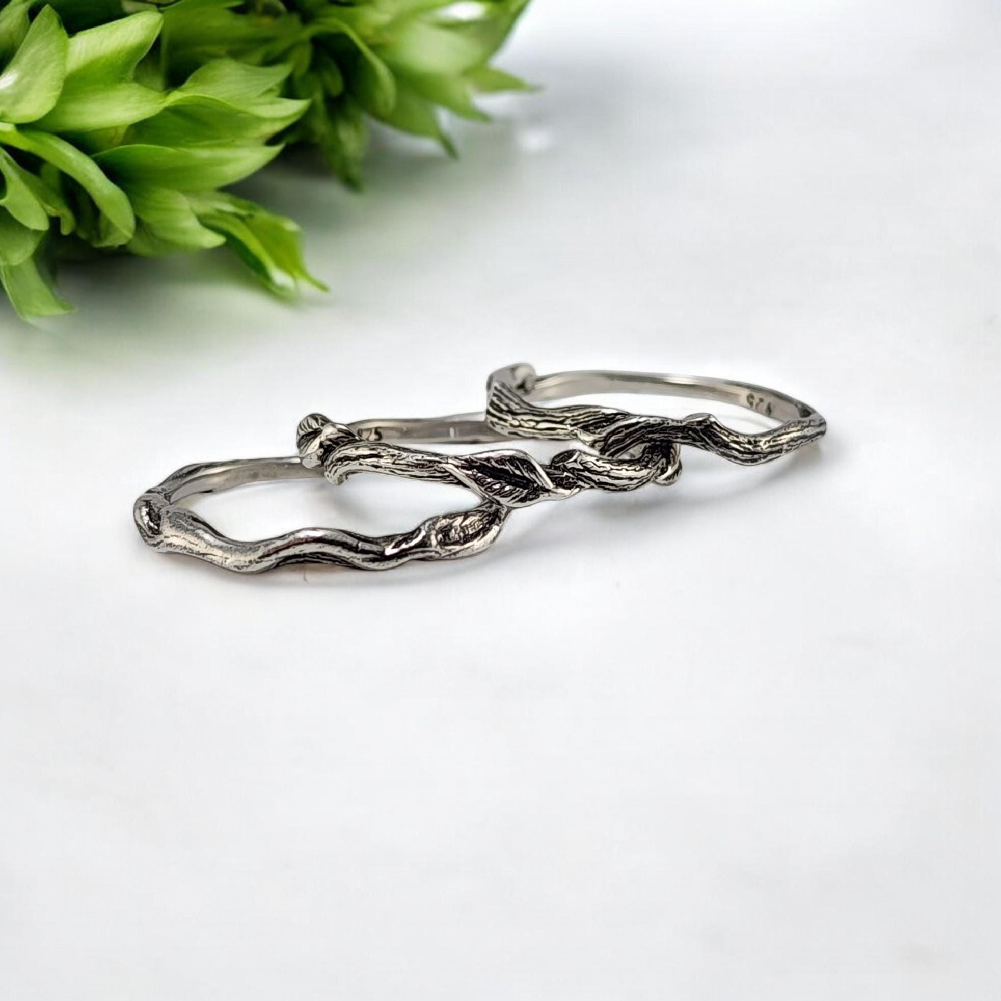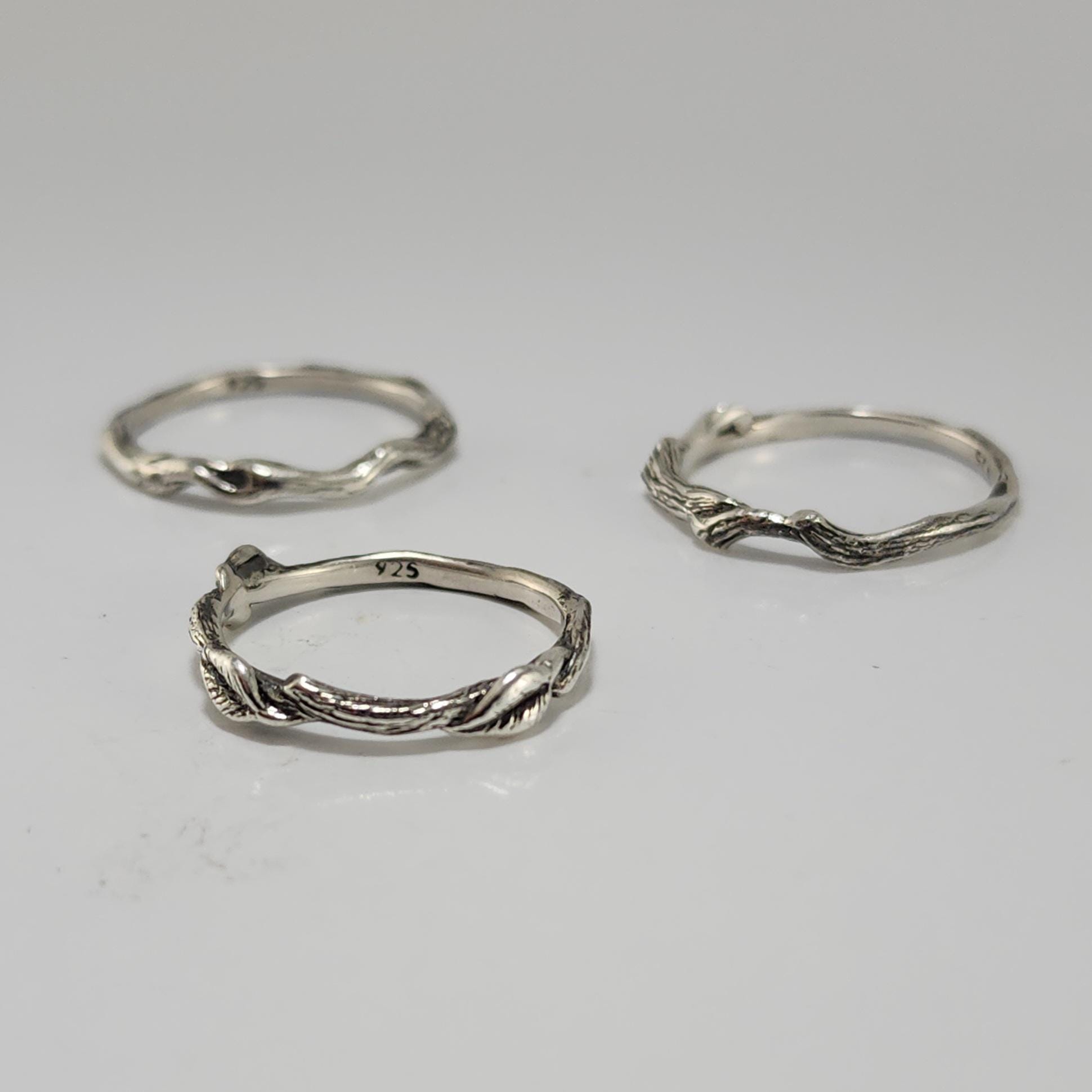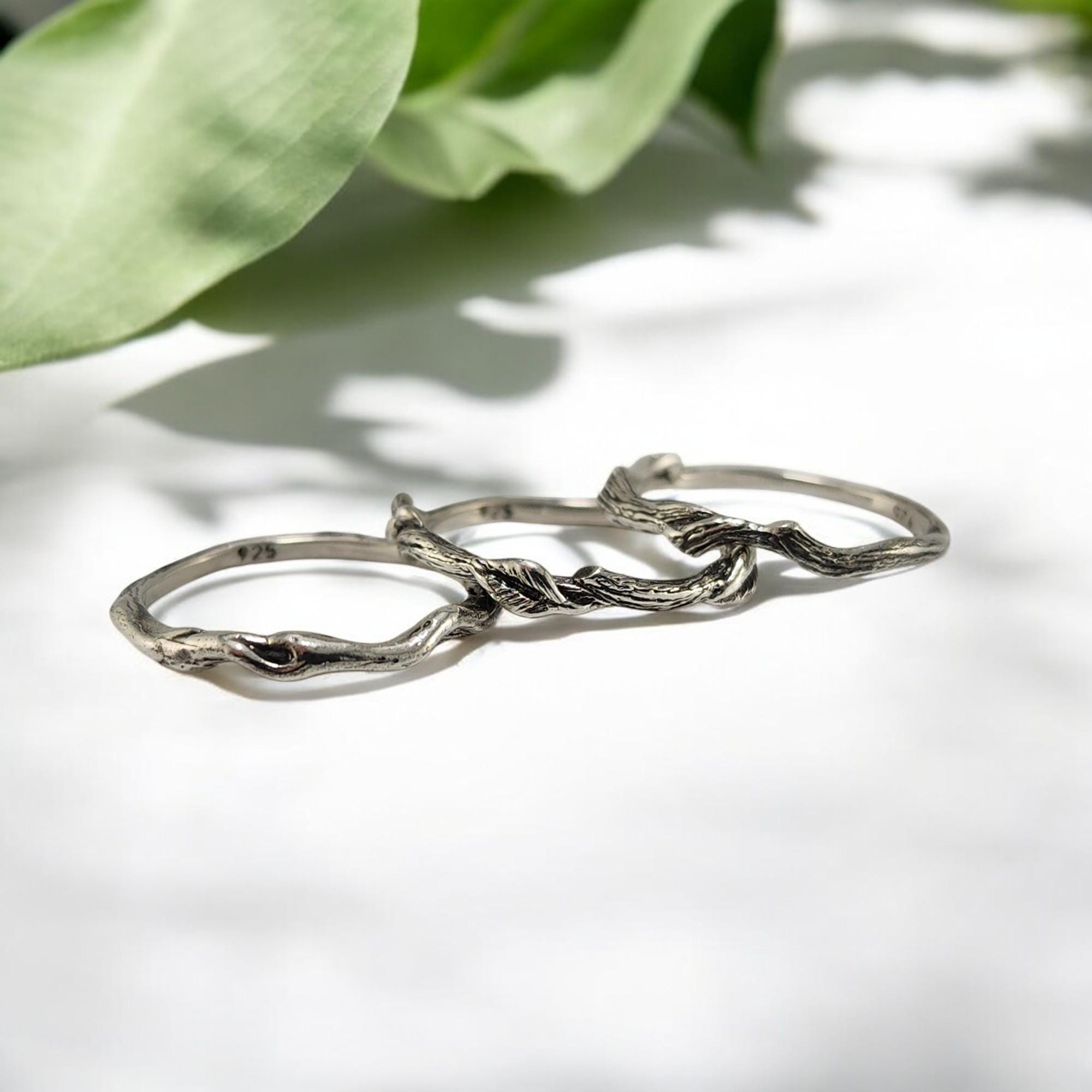 Leaf Twig & Vine Stackable Rings - Sterling Silver Rings Set of 3