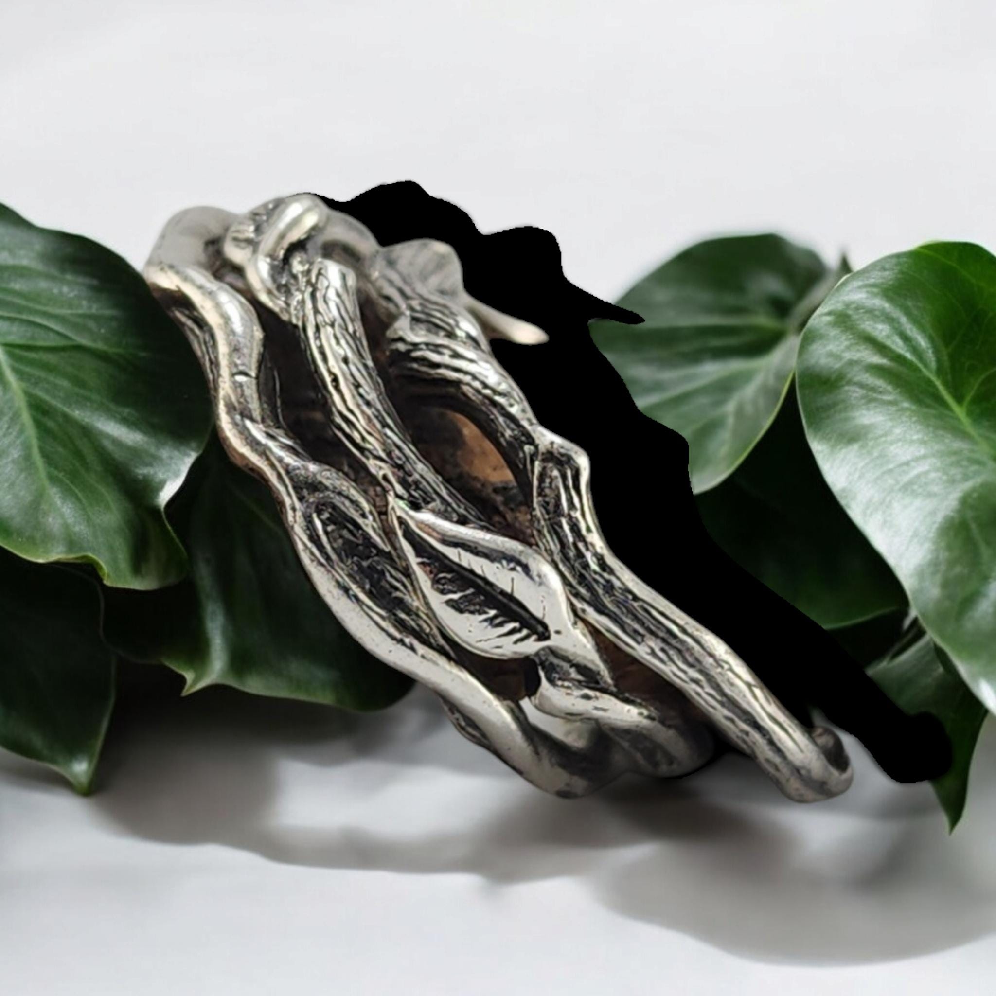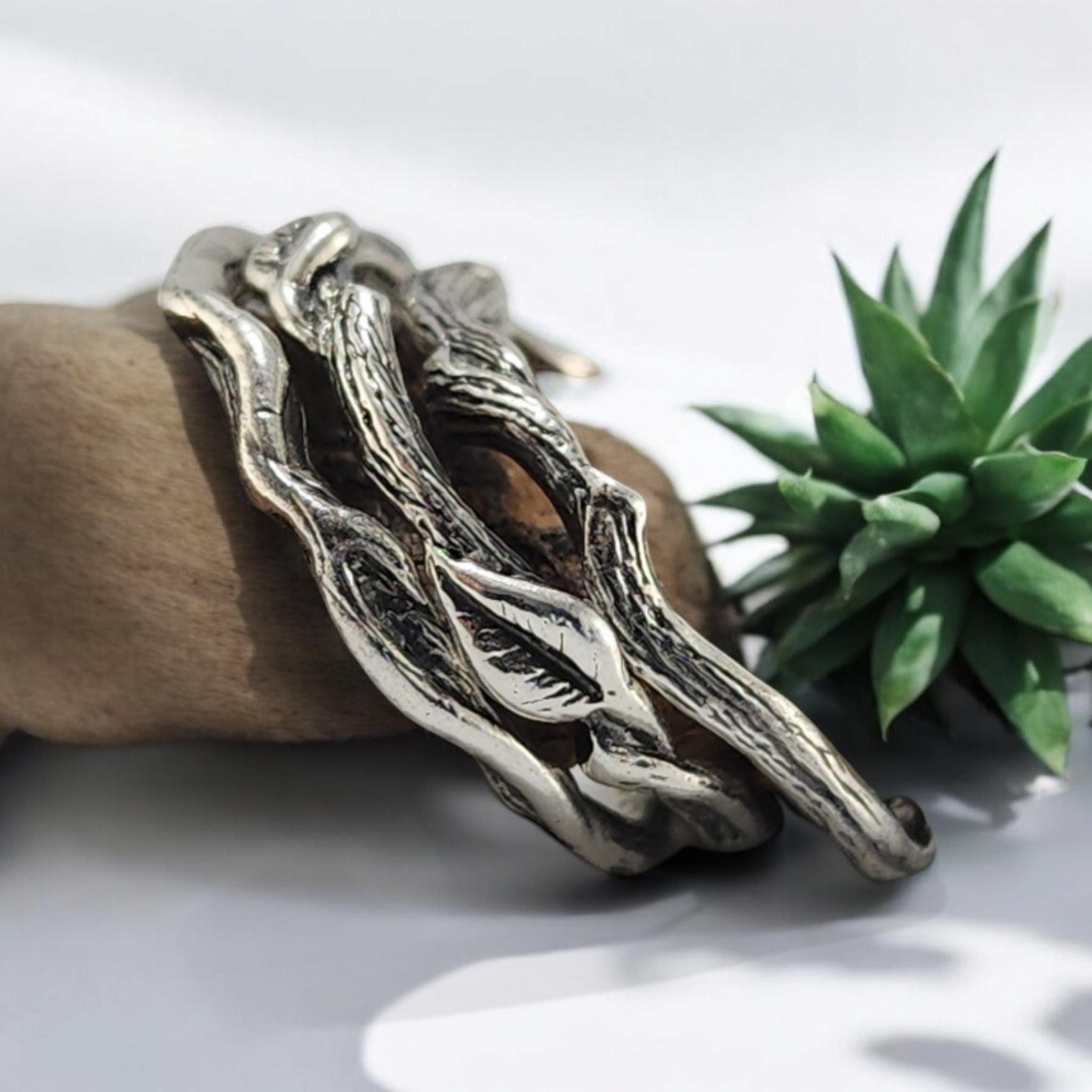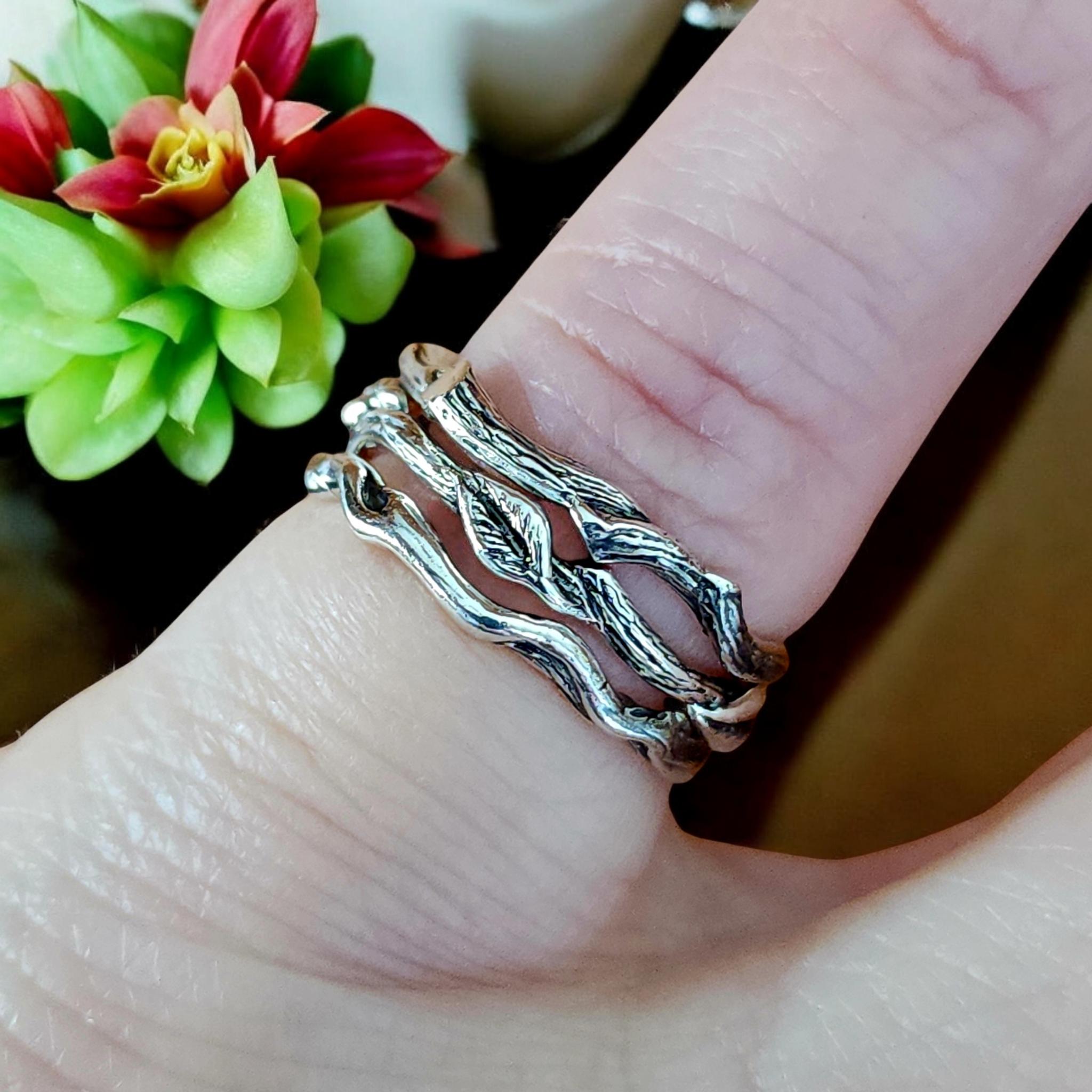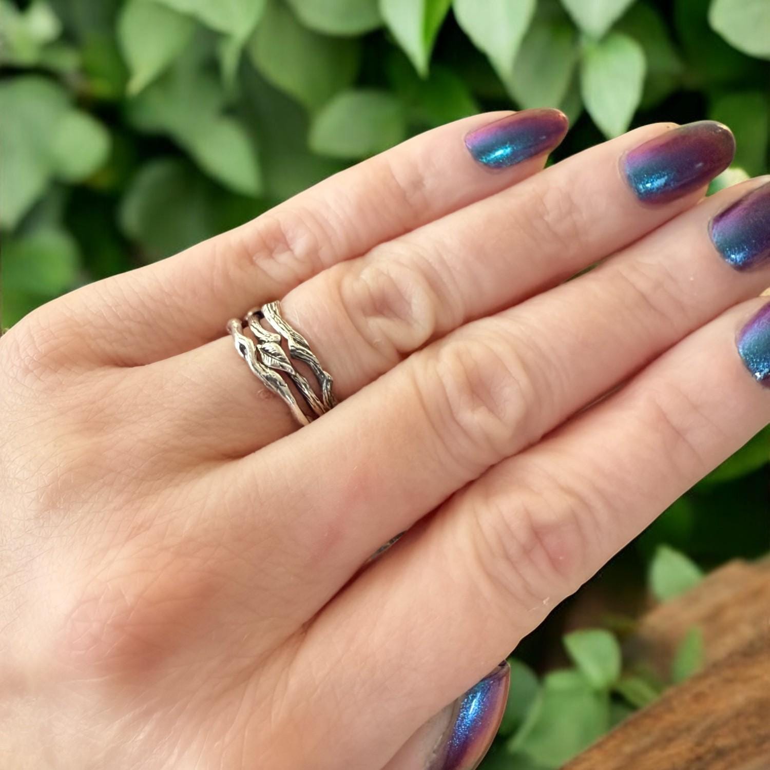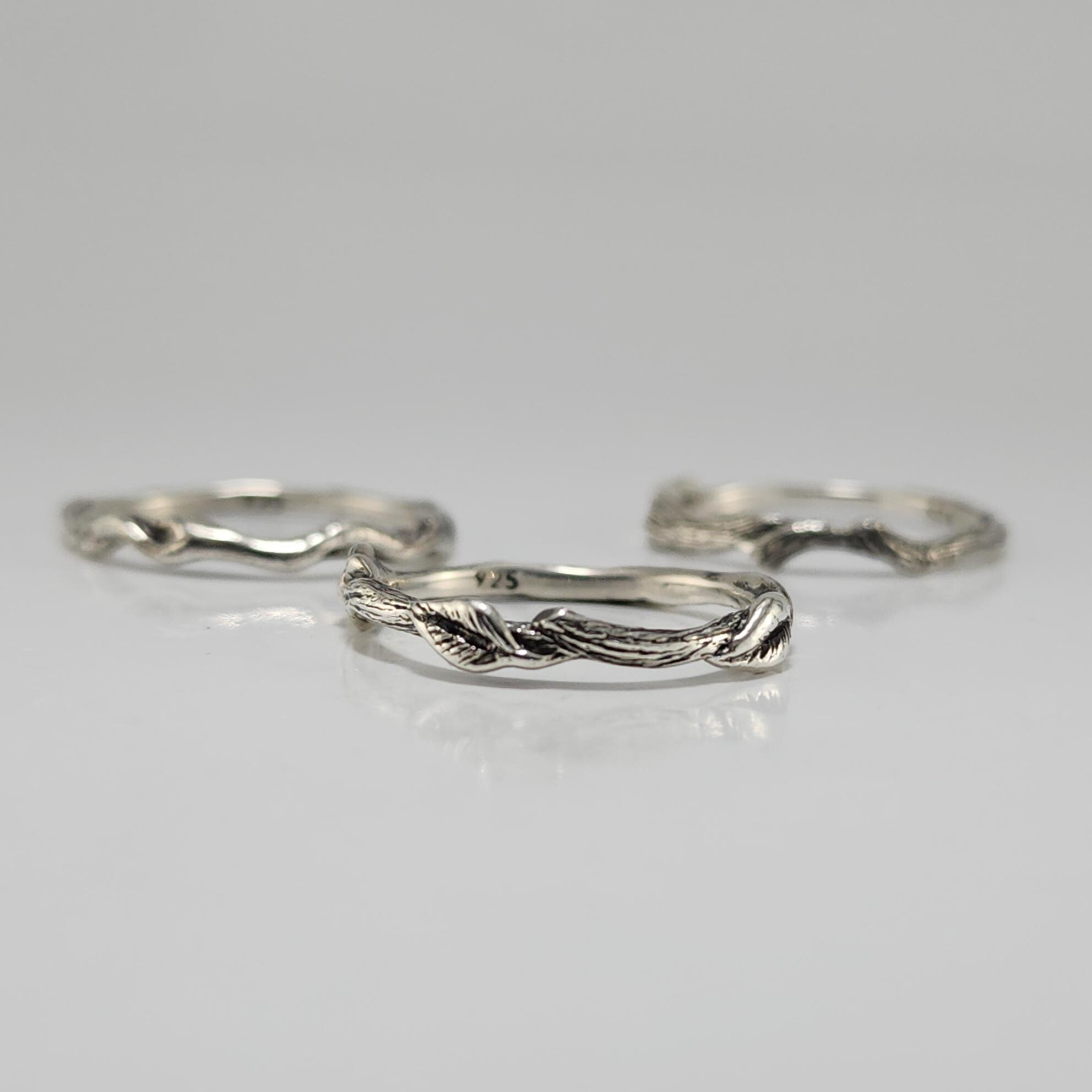 Leaf Twig & Vine Stackable Rings - Sterling Silver Rings Set of 3