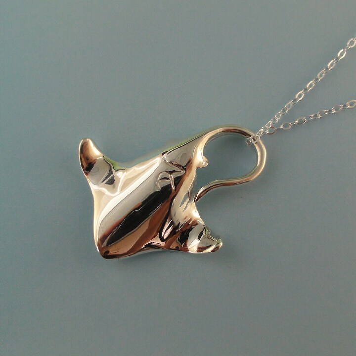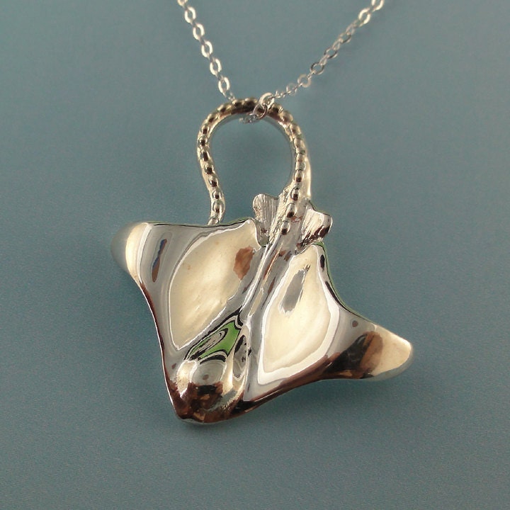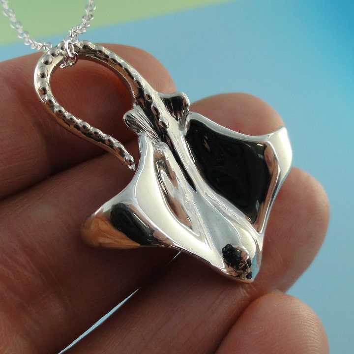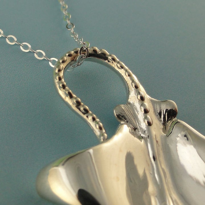 Hand Sculpted Sterling Silver Stingray Necklace: Ocean Beach Jewelry