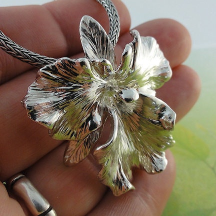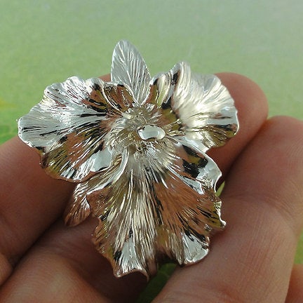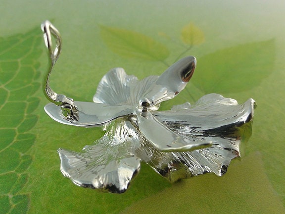This is by far my favorite Orchid to sculpt, it's the Susan Fender Cattleya Orchid. I feel it is just the most beautiful orchid. This one was cast in Sterling Silver and has an enhancer bail on the back, which can be clipped on a chain or an omega up to 5mm wide.