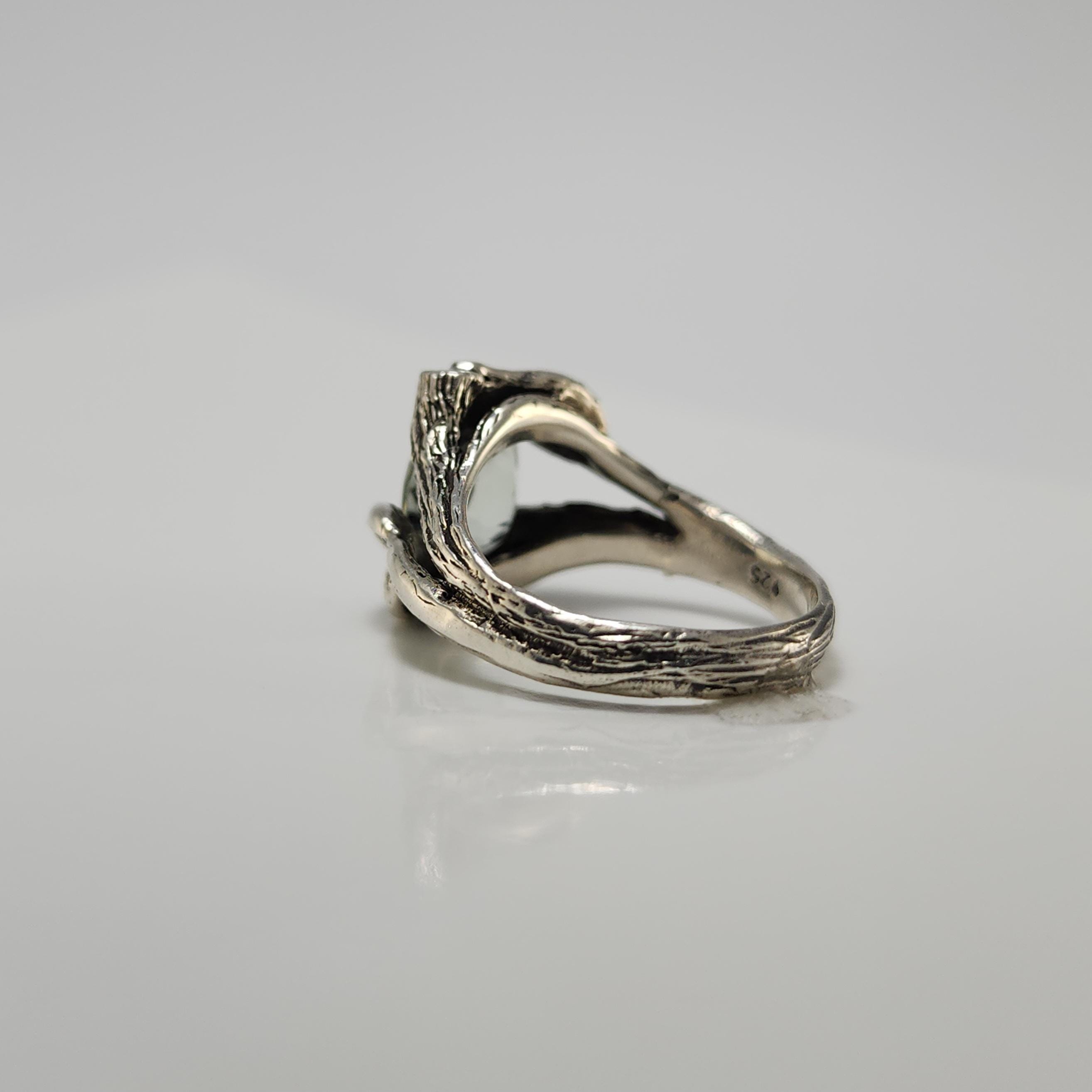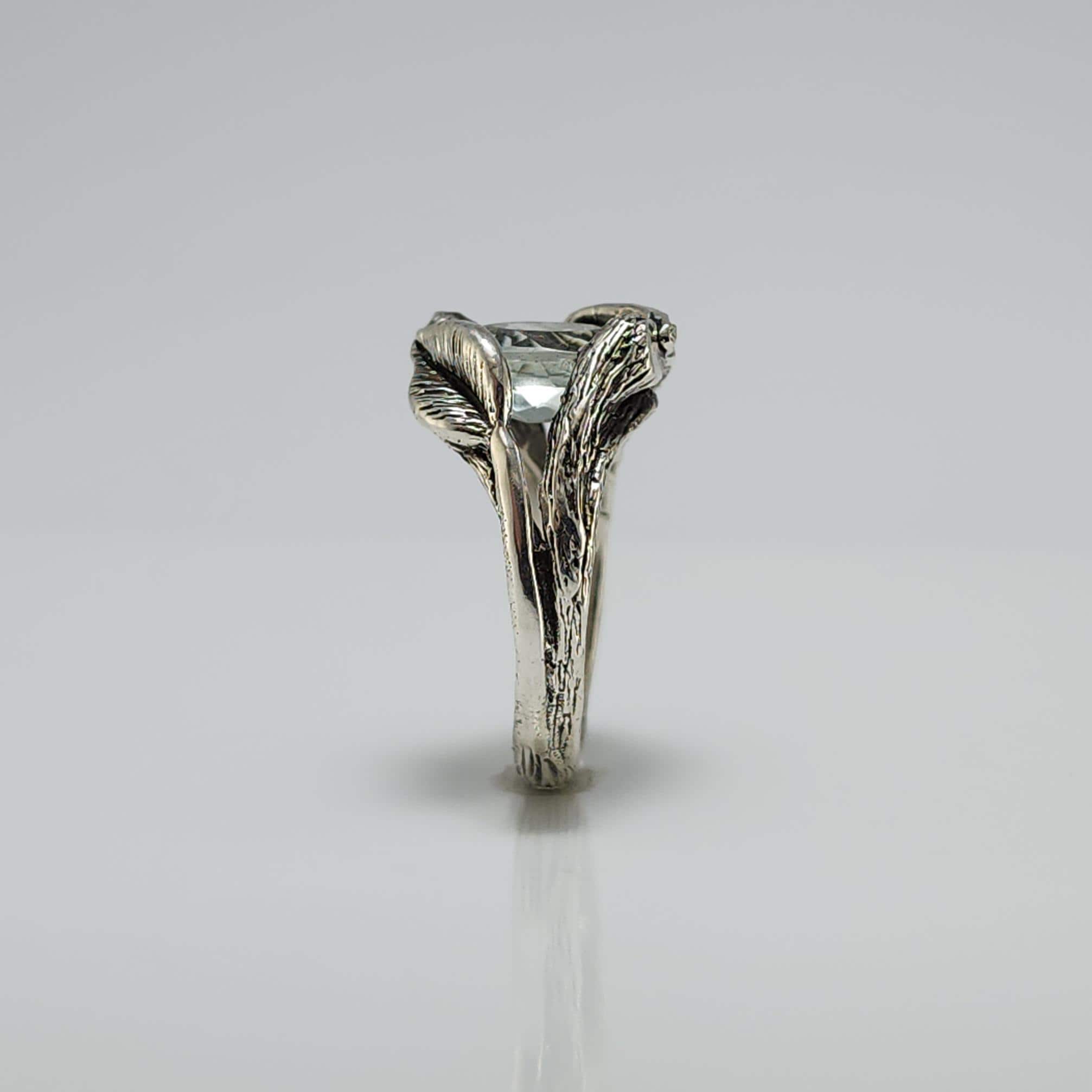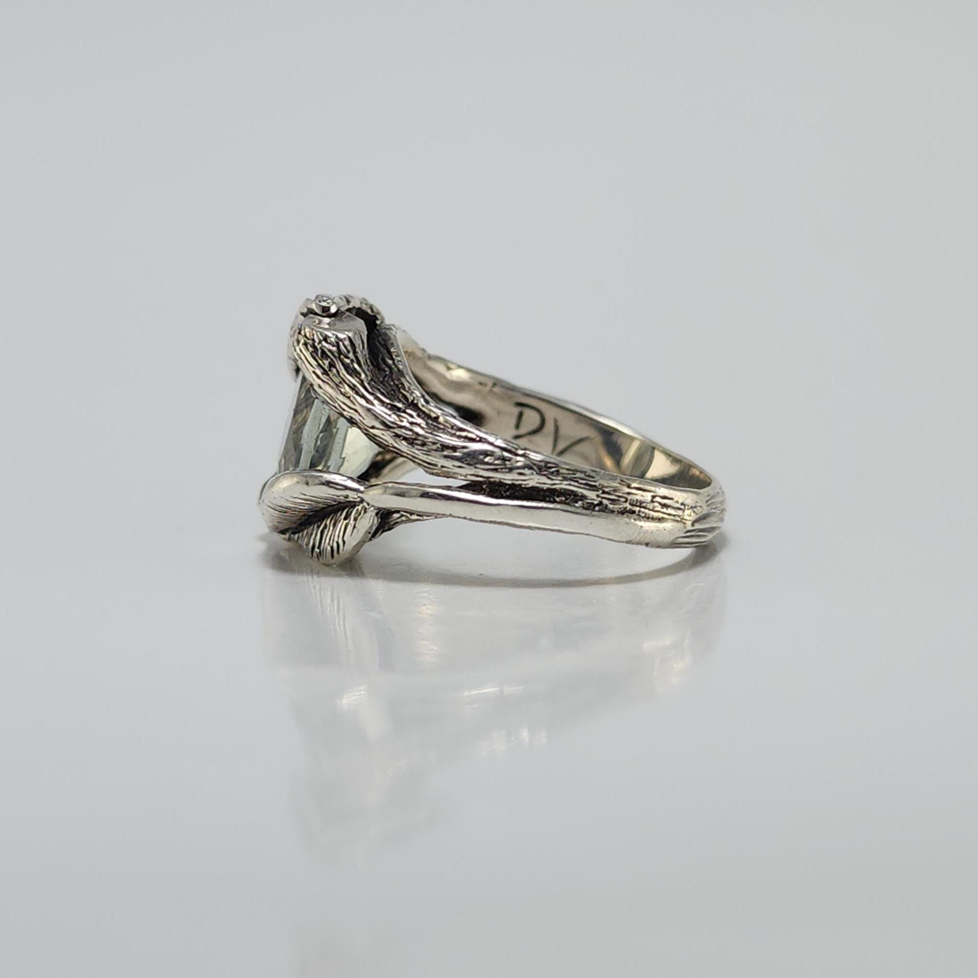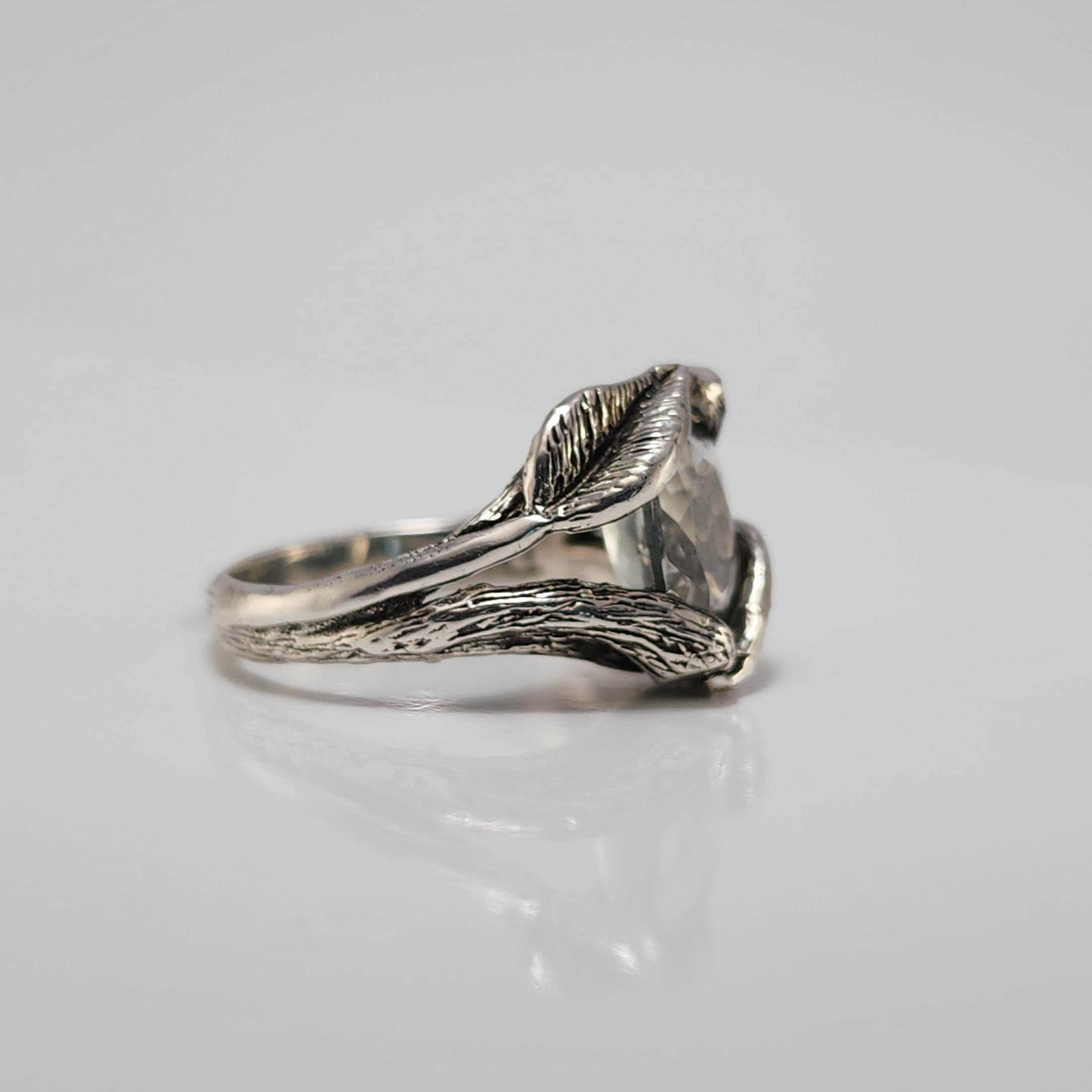 Twig and Leaf Style Sterling Silver Engagement Rings. Hand-sculpted in wax by Dawn and cast in Sterling Silver.
