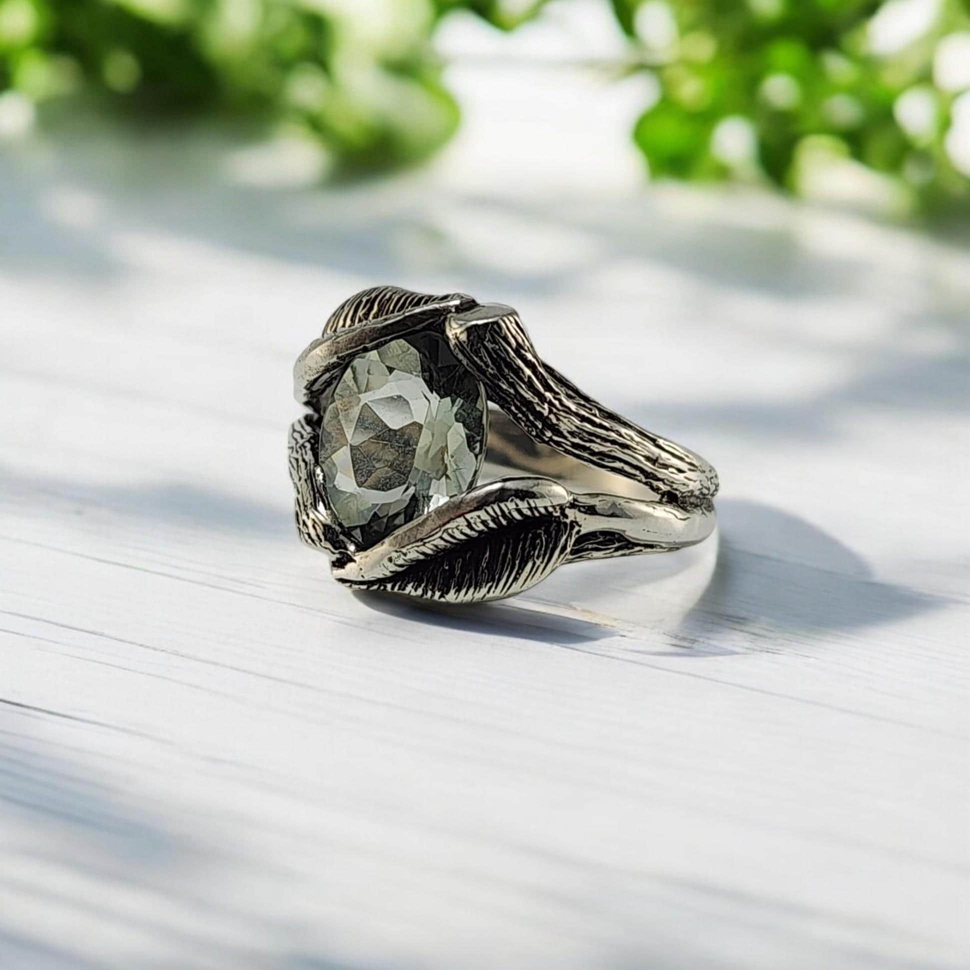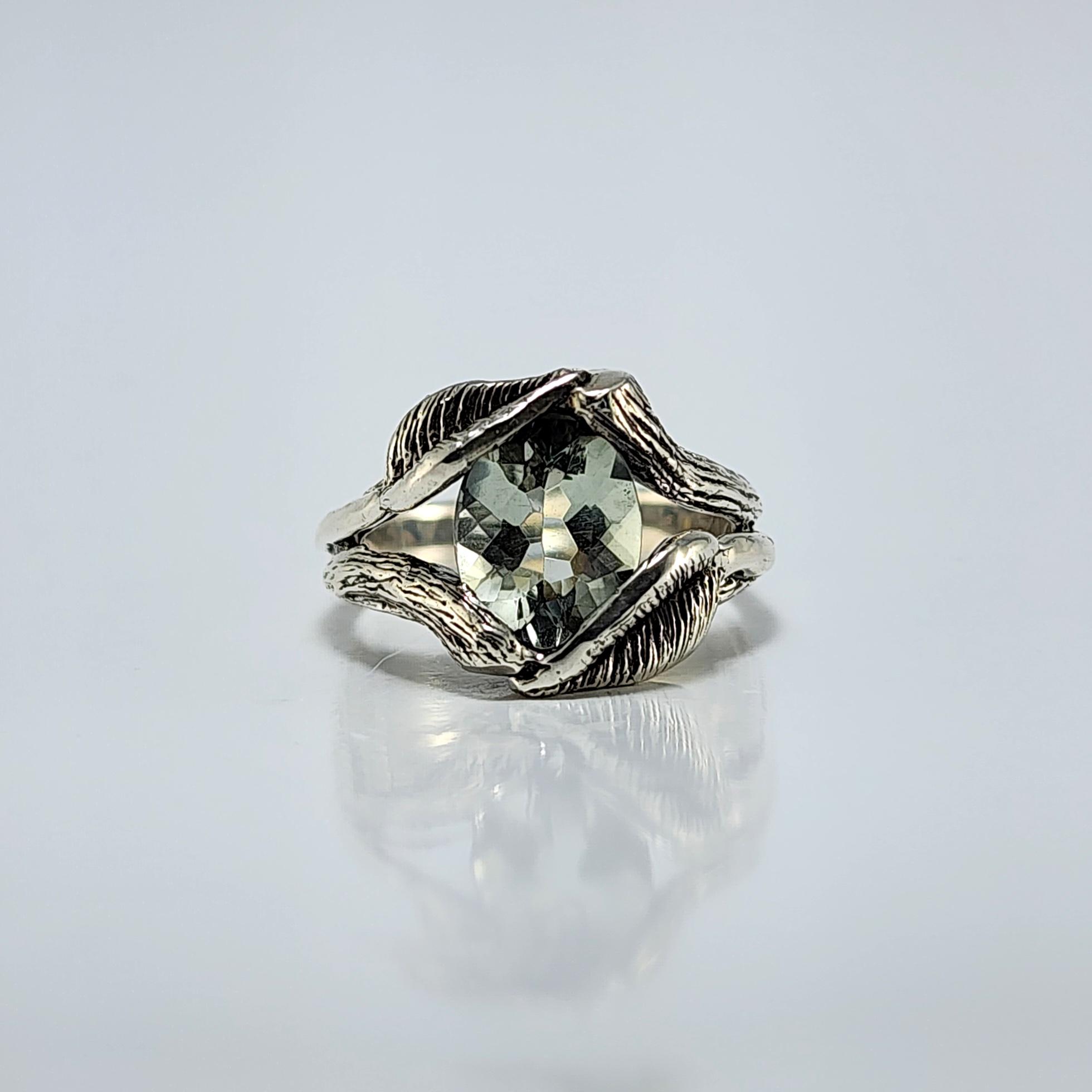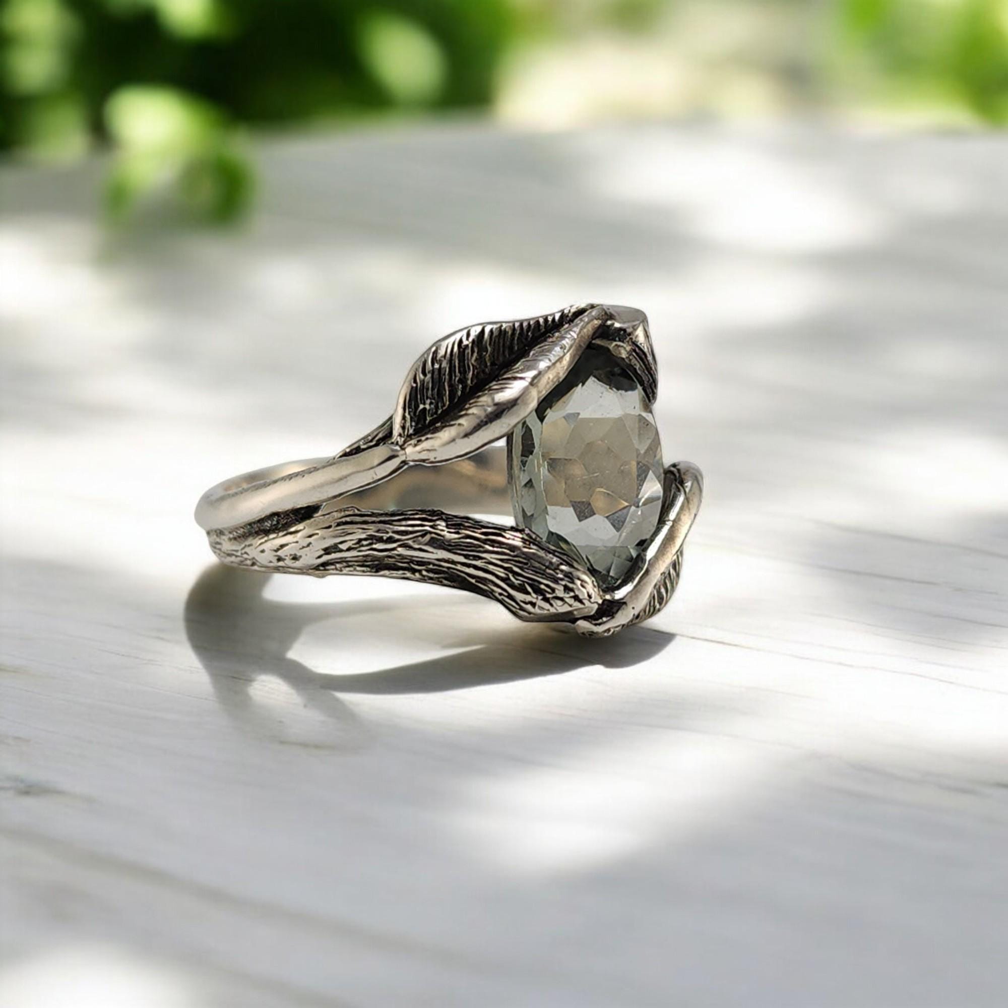 Embrace the sparkle of a Floating Oval Green Amethyst Gemstone Sterling Silver Ring by DV Designs