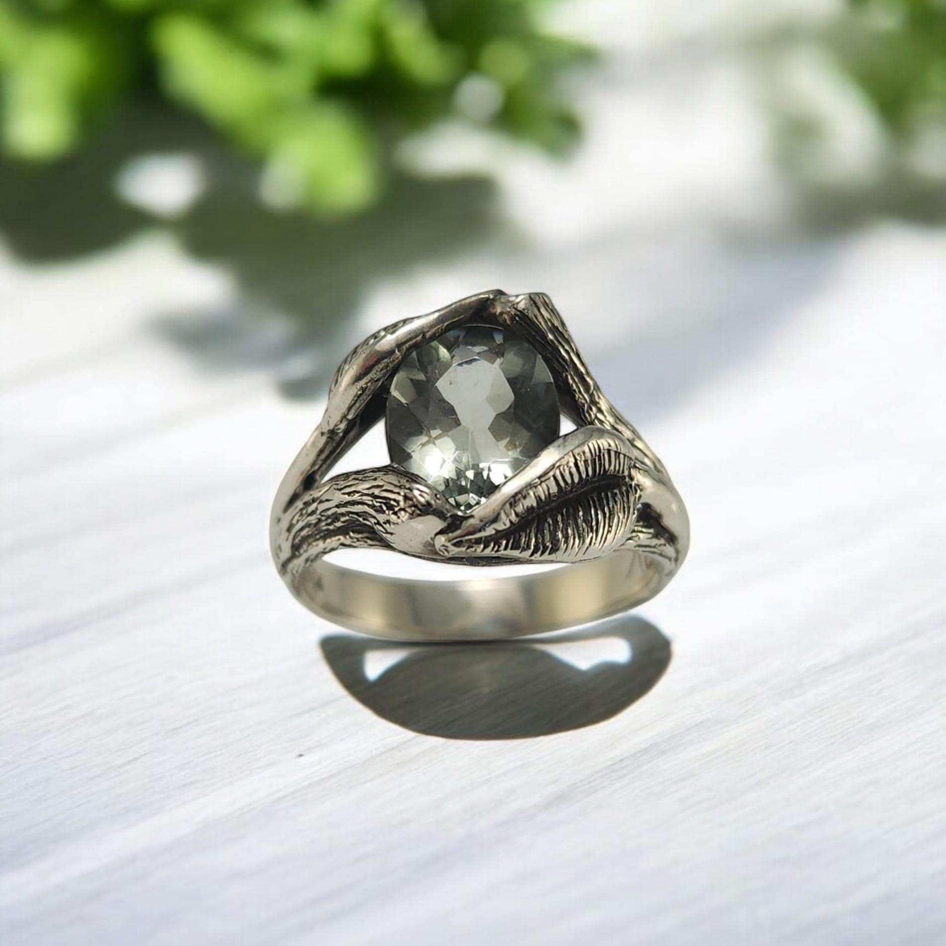 Floating Oval Green Amethyst Gemstone Sterling Silver Ring by DV Designs