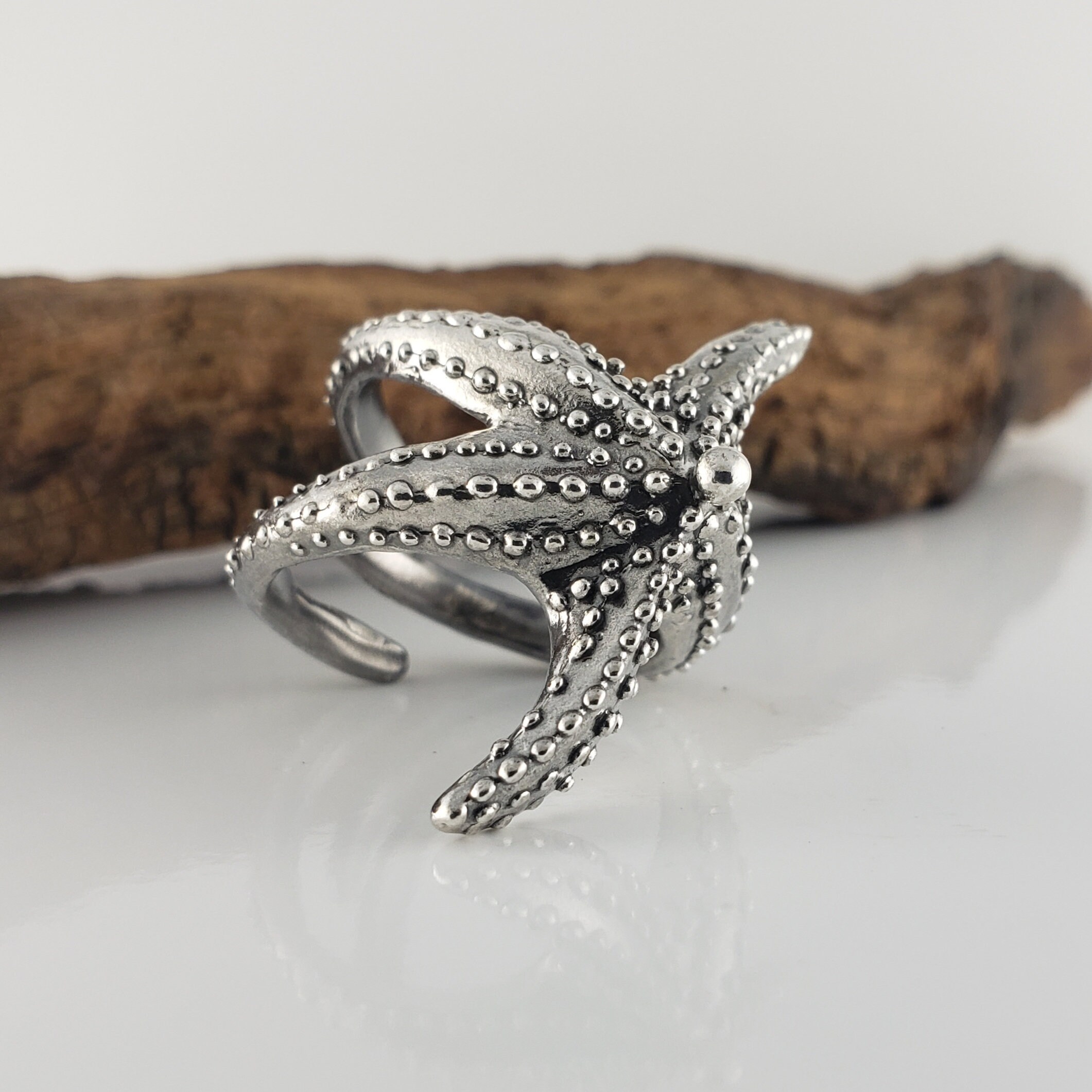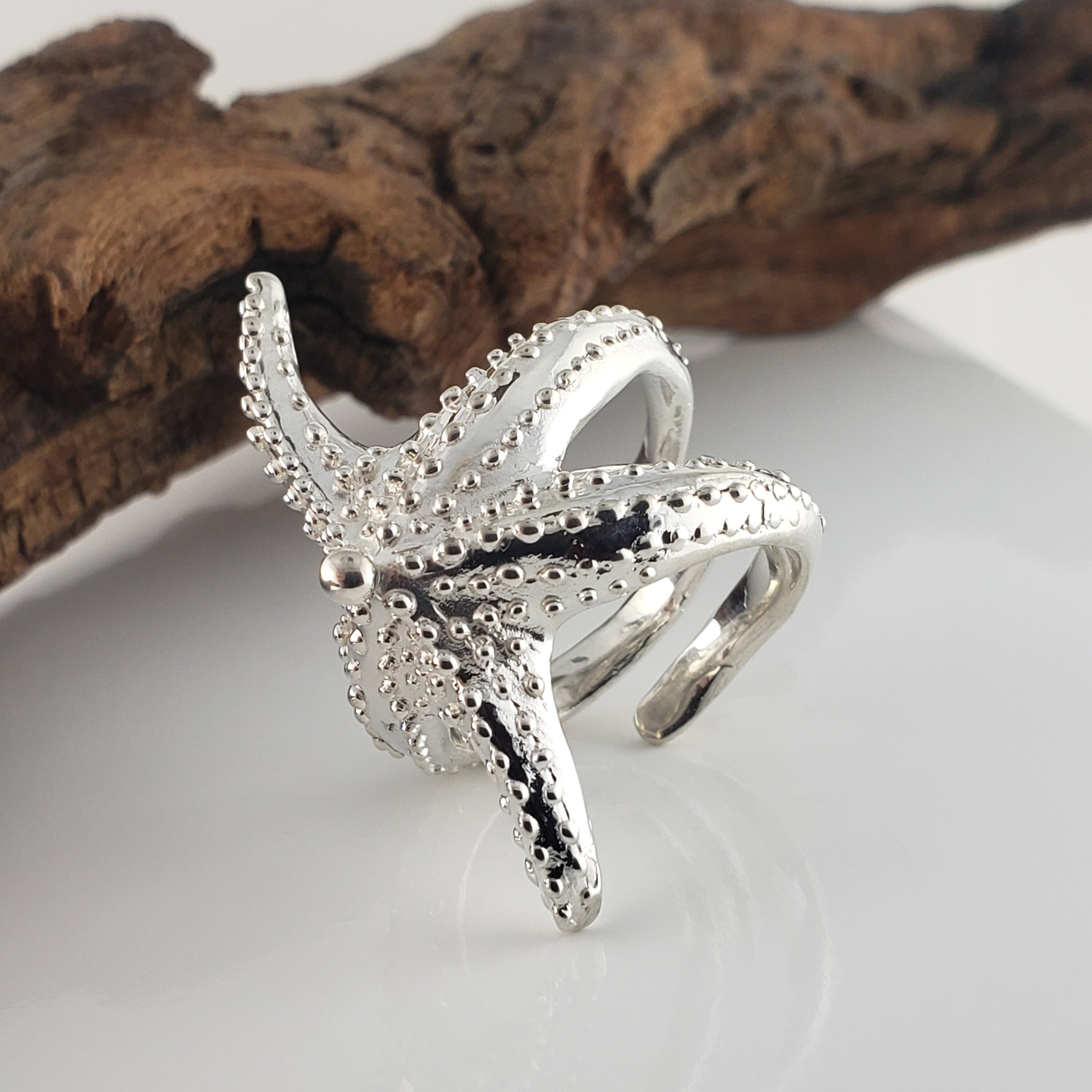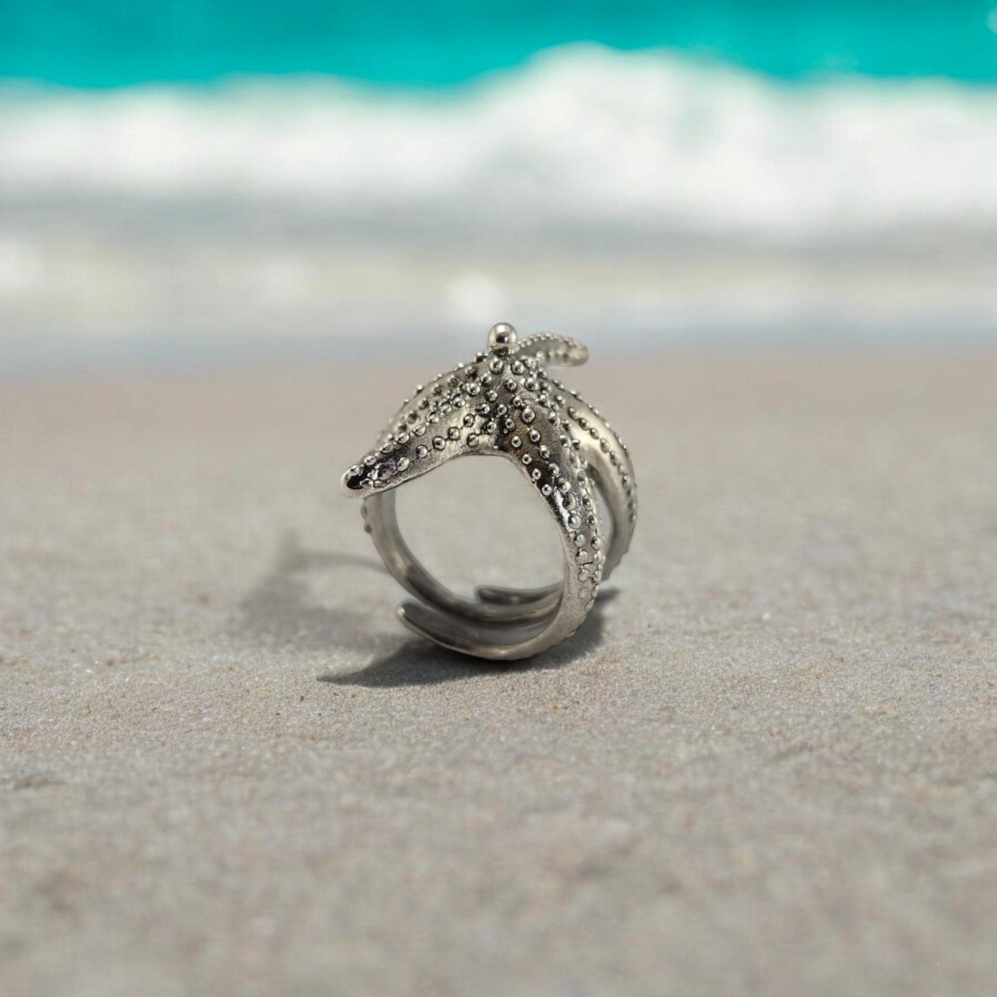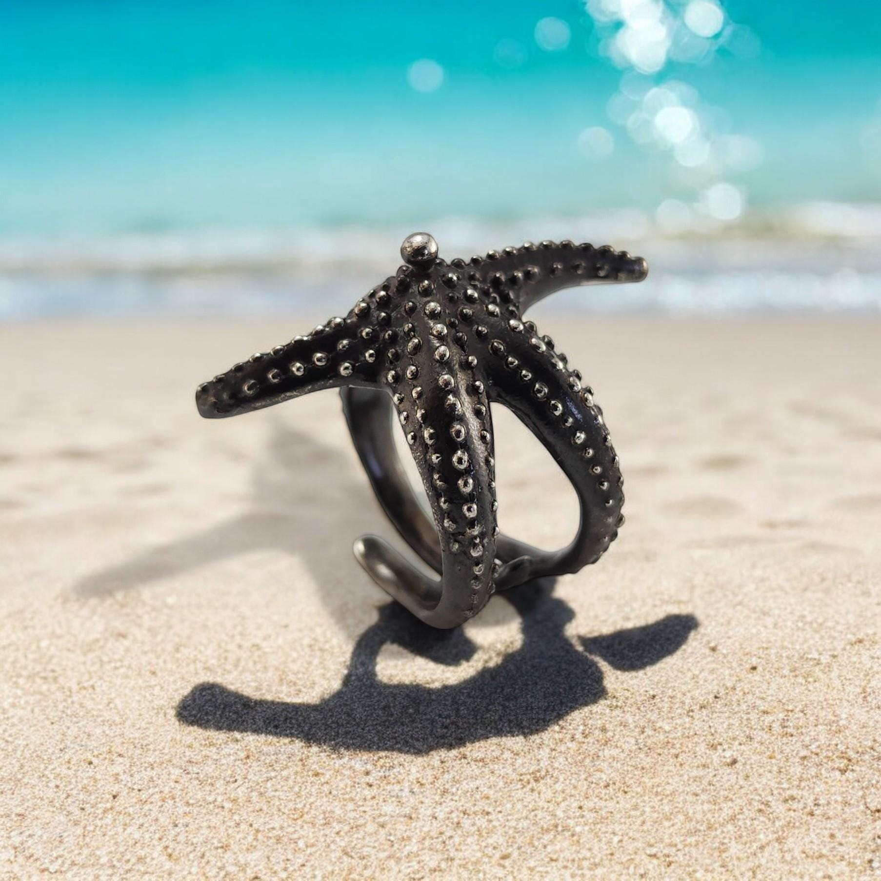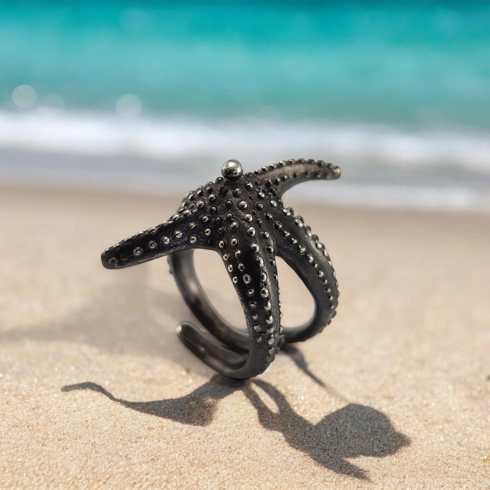 Sterling Silver Starfish Ring: Adjustable Beach Jewelry