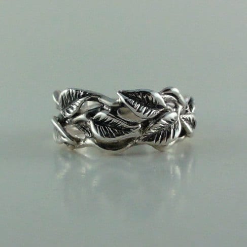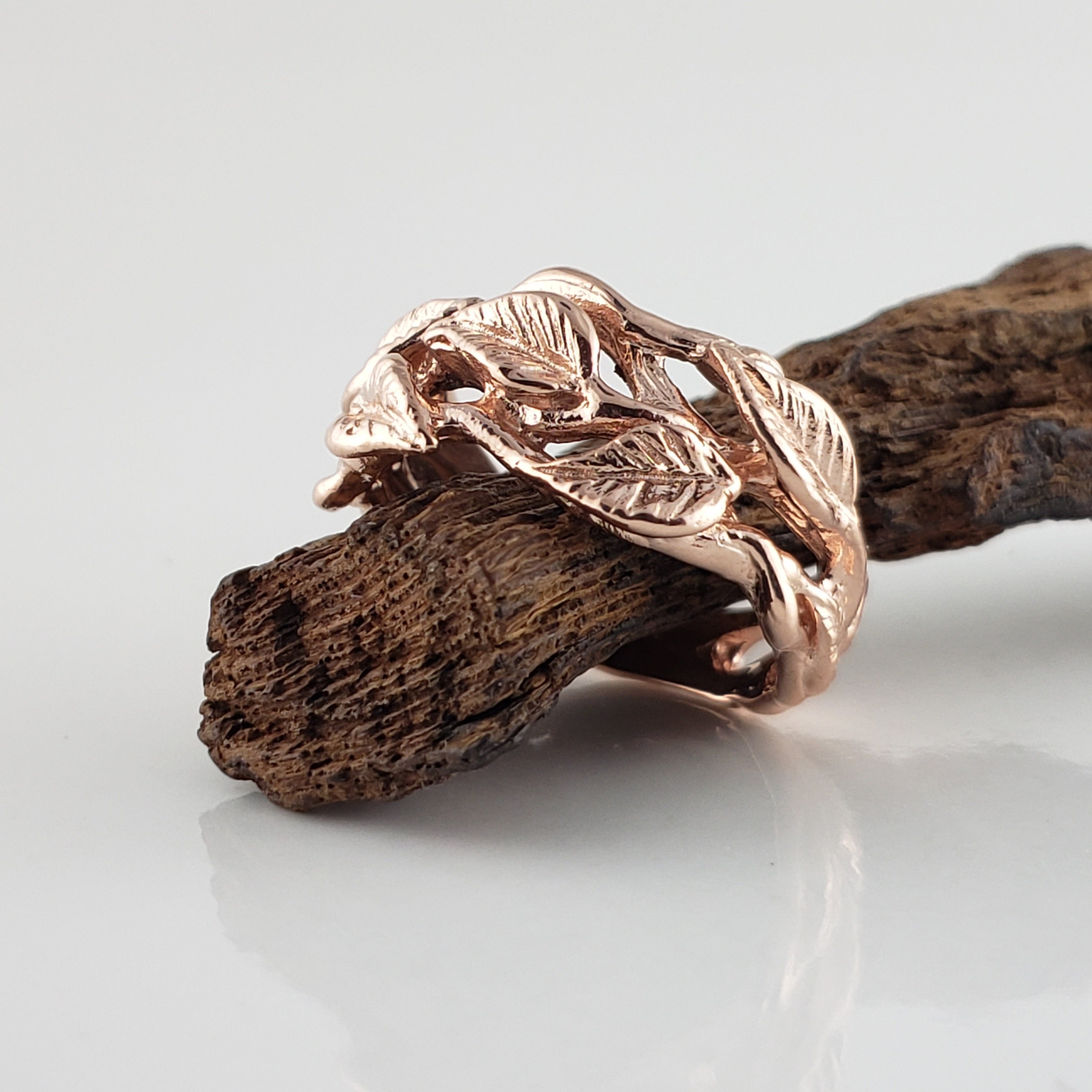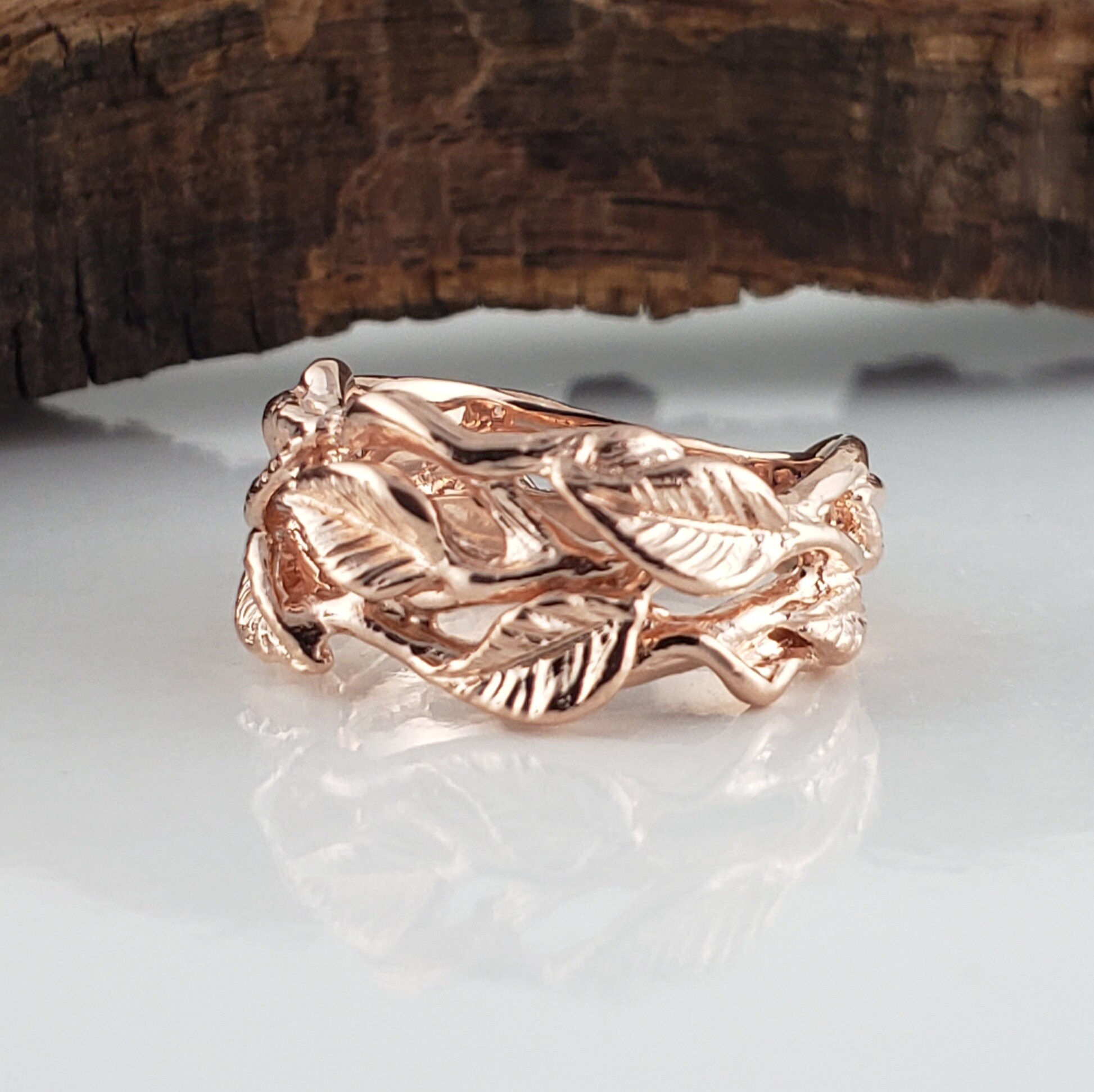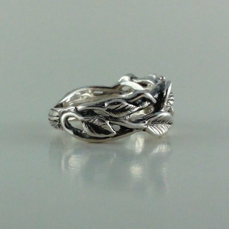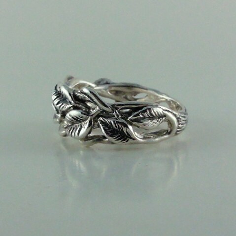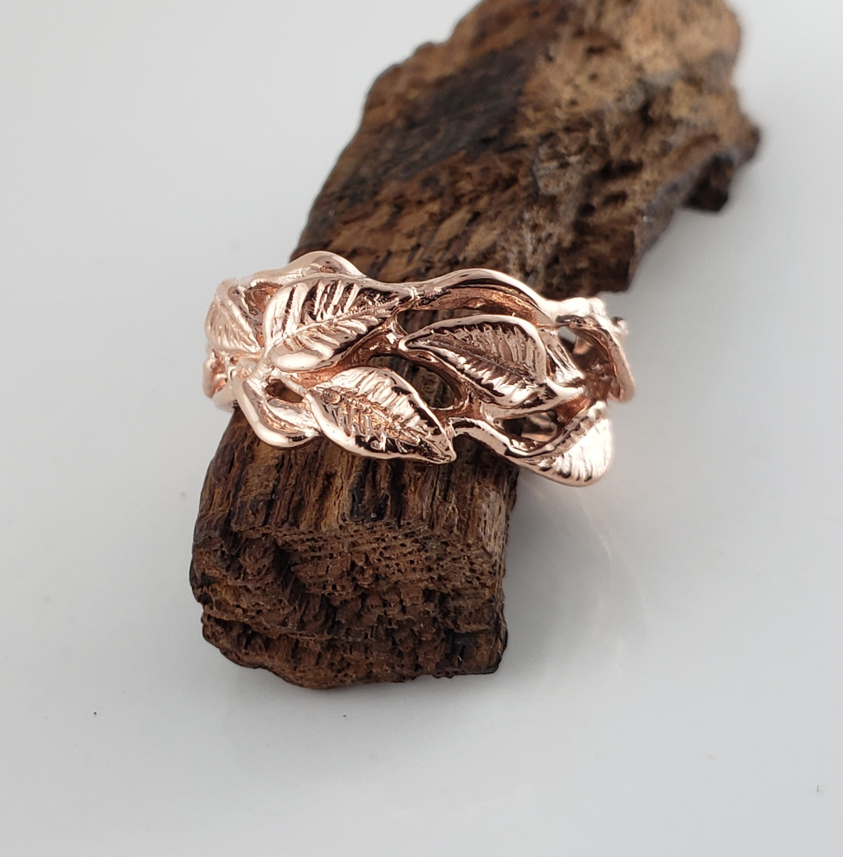 I wanted to create a beautiful Twig and Leaf Band, so I sculpted the stems first and then added eight beautiful natural flowing leaves. Similar to the original Leaf and Twig Design, just a bit more weight and no twigs on the edge of the ring.