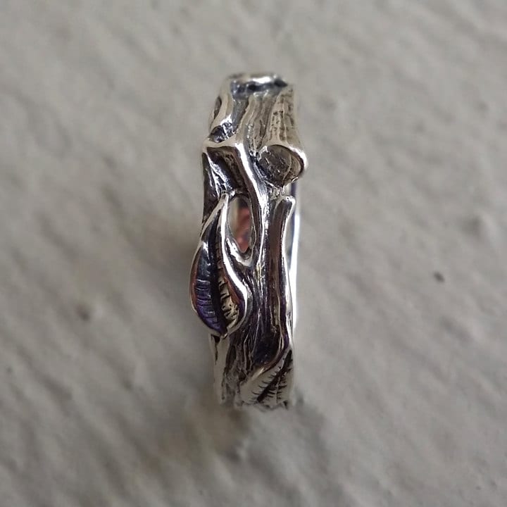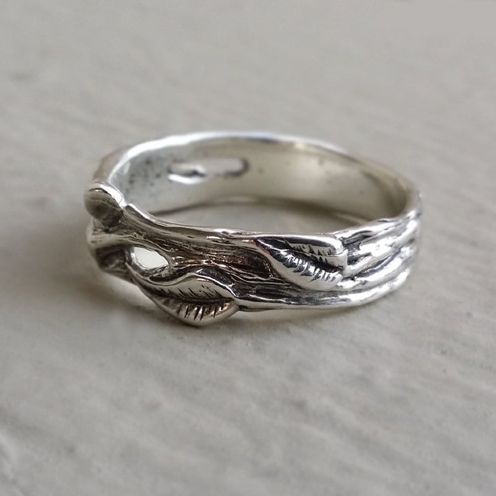 Hand Sculpted Leaf & Twig Wedding Band