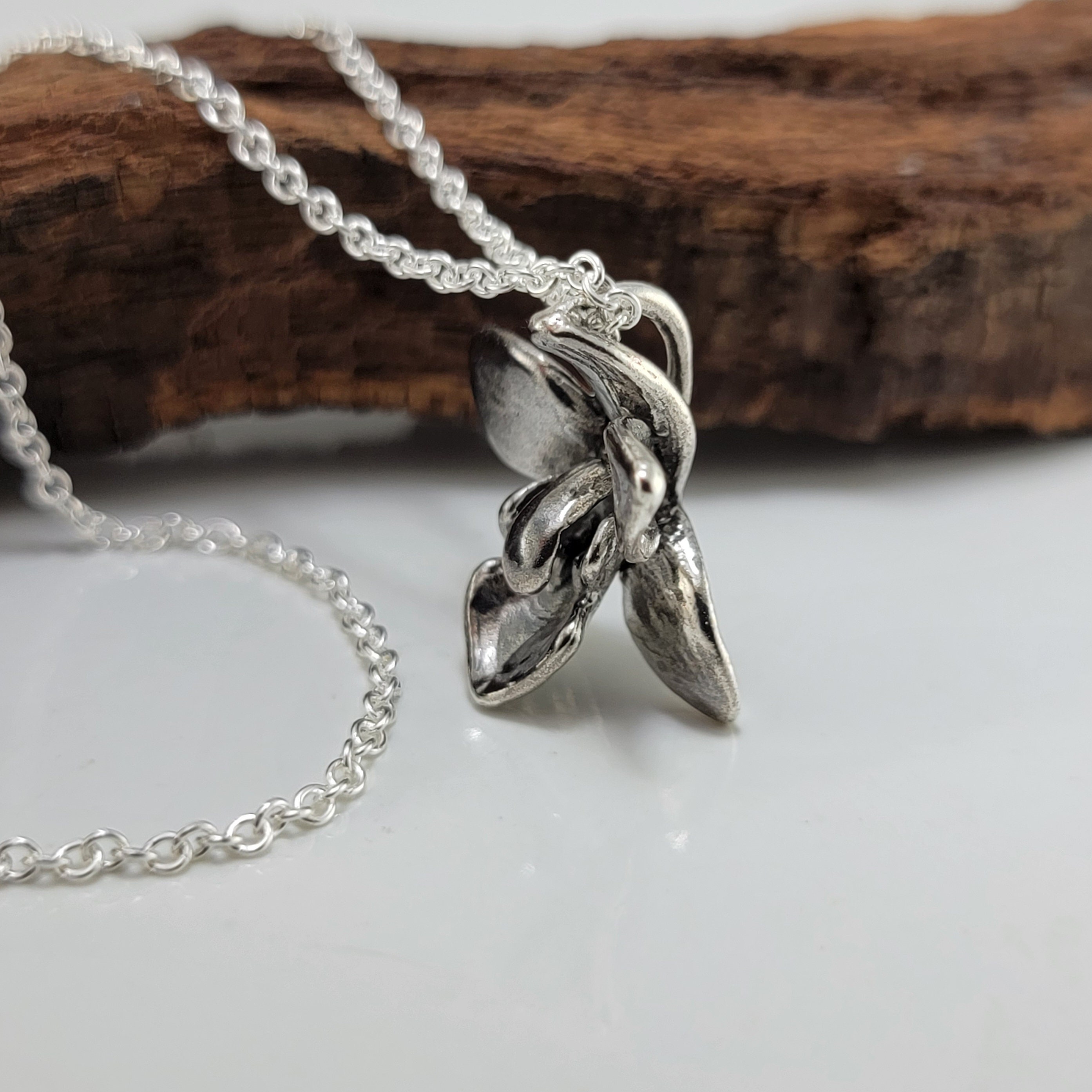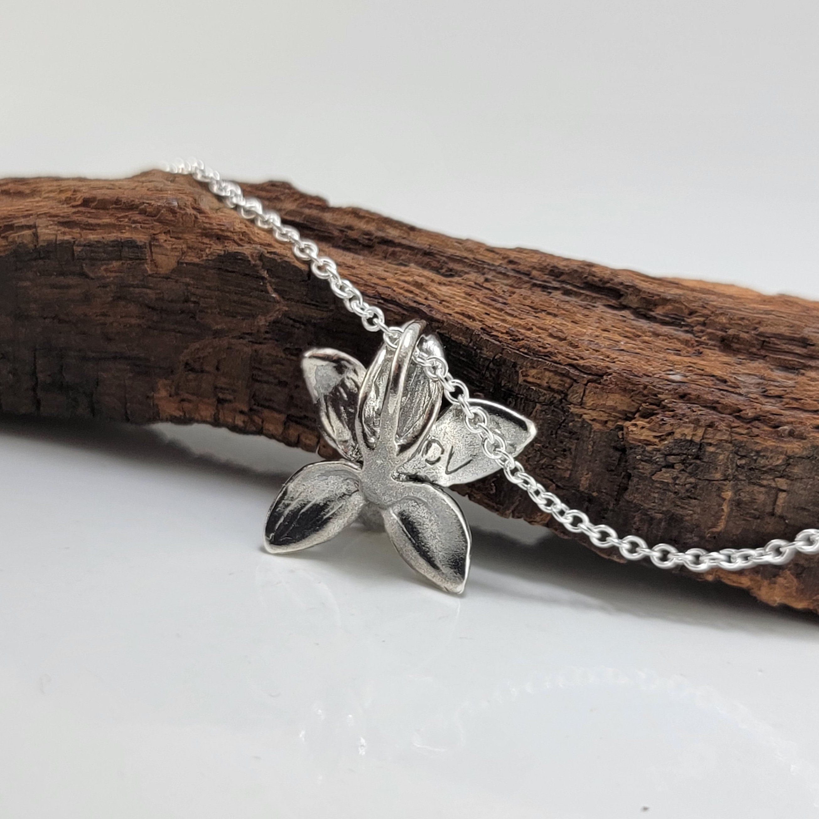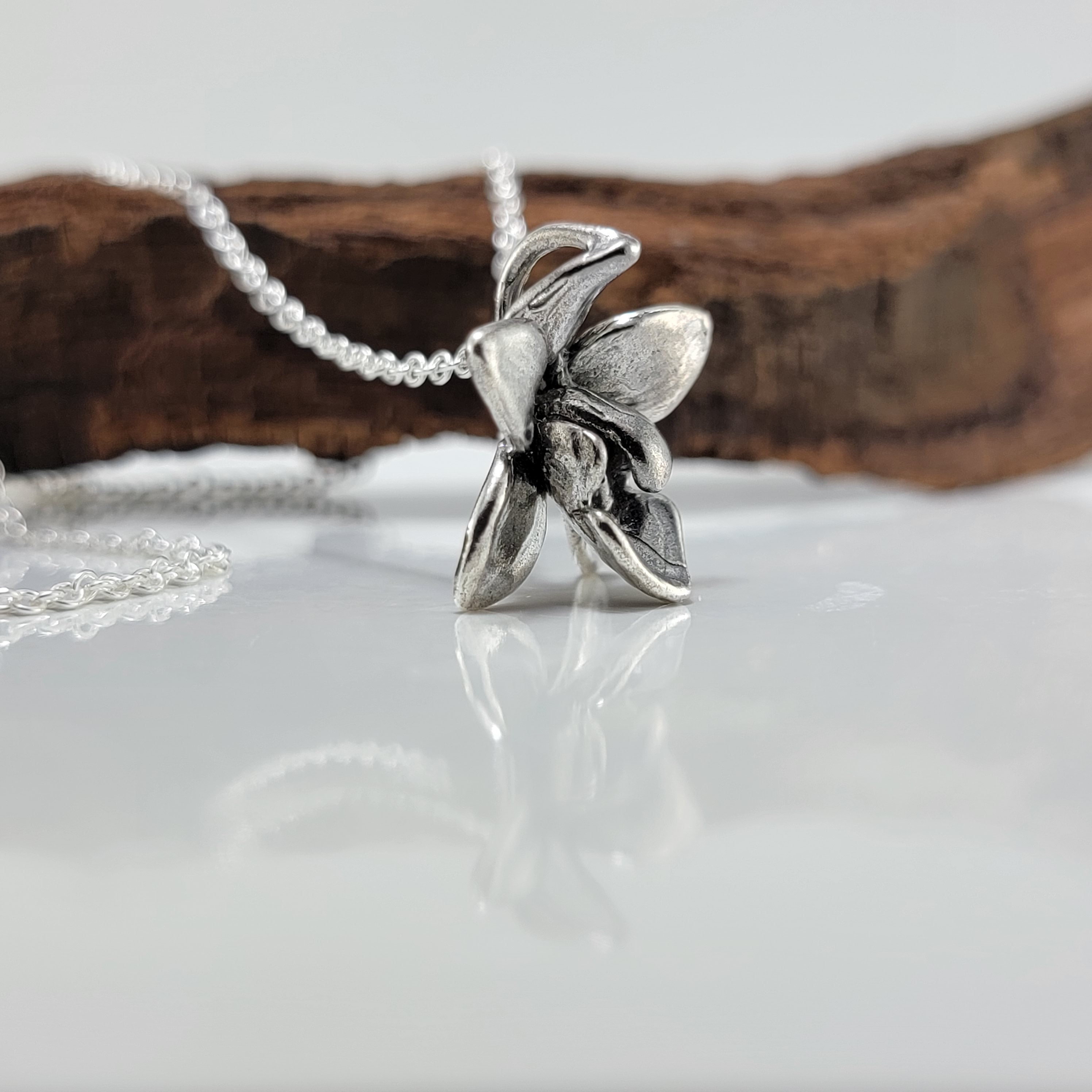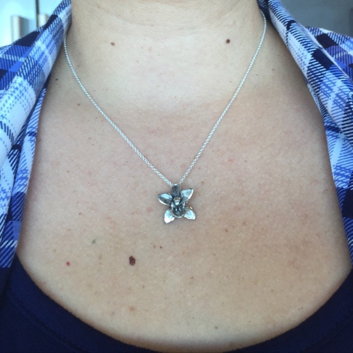 Elegant Dendrobium Orchid Necklace, Sterling Silver Floral Bridal Pendant by DV Jewelry Designs