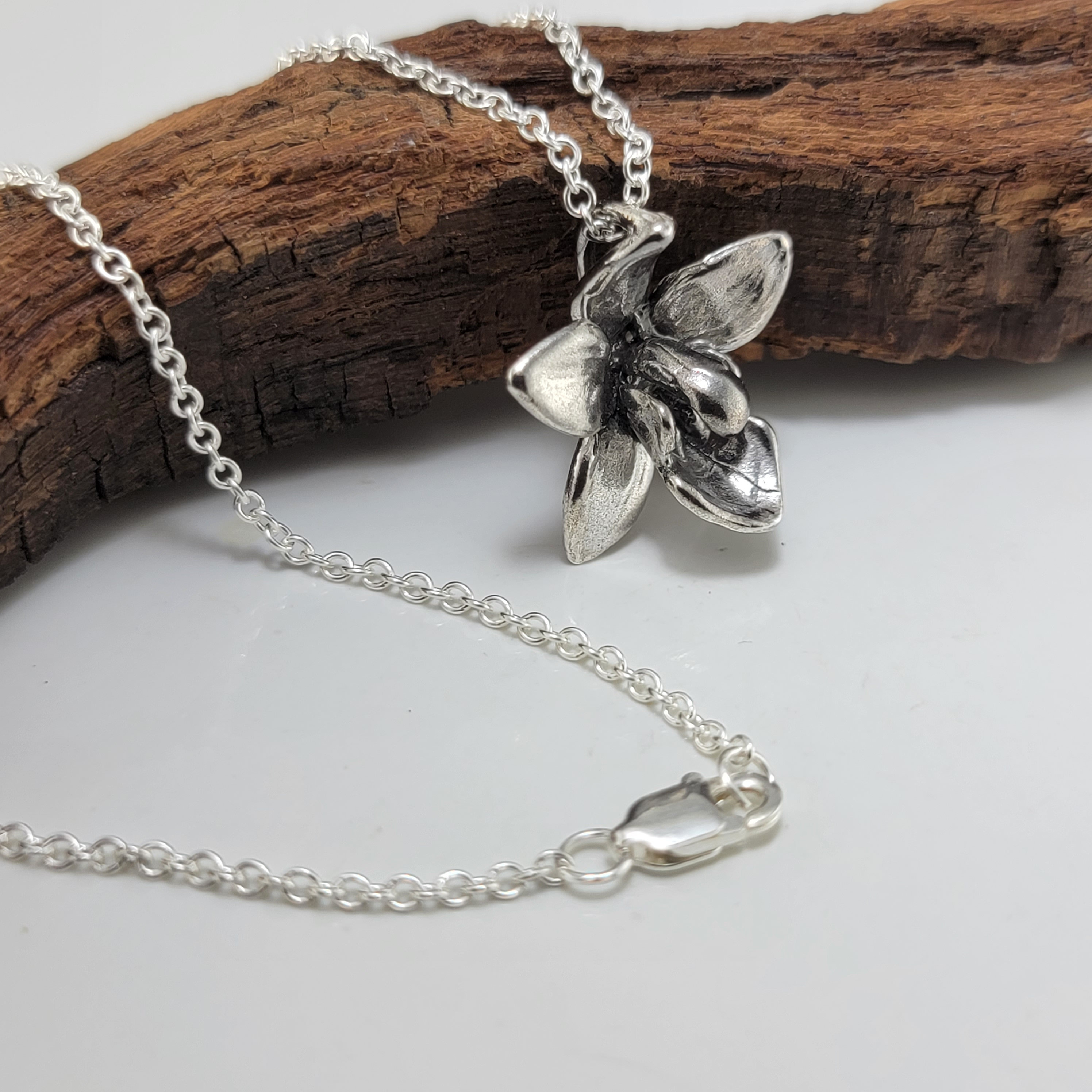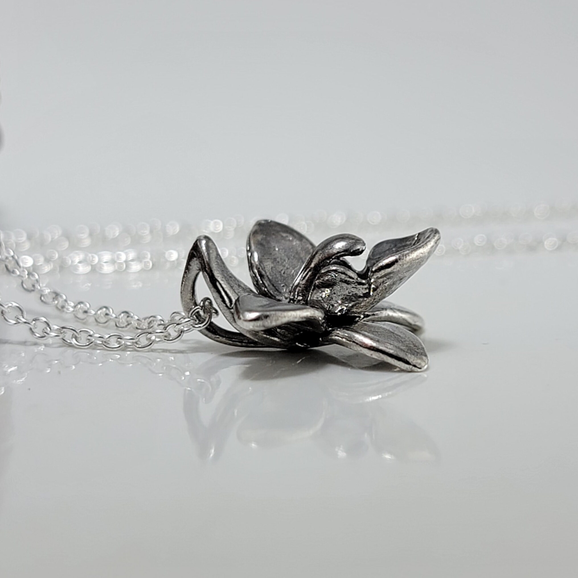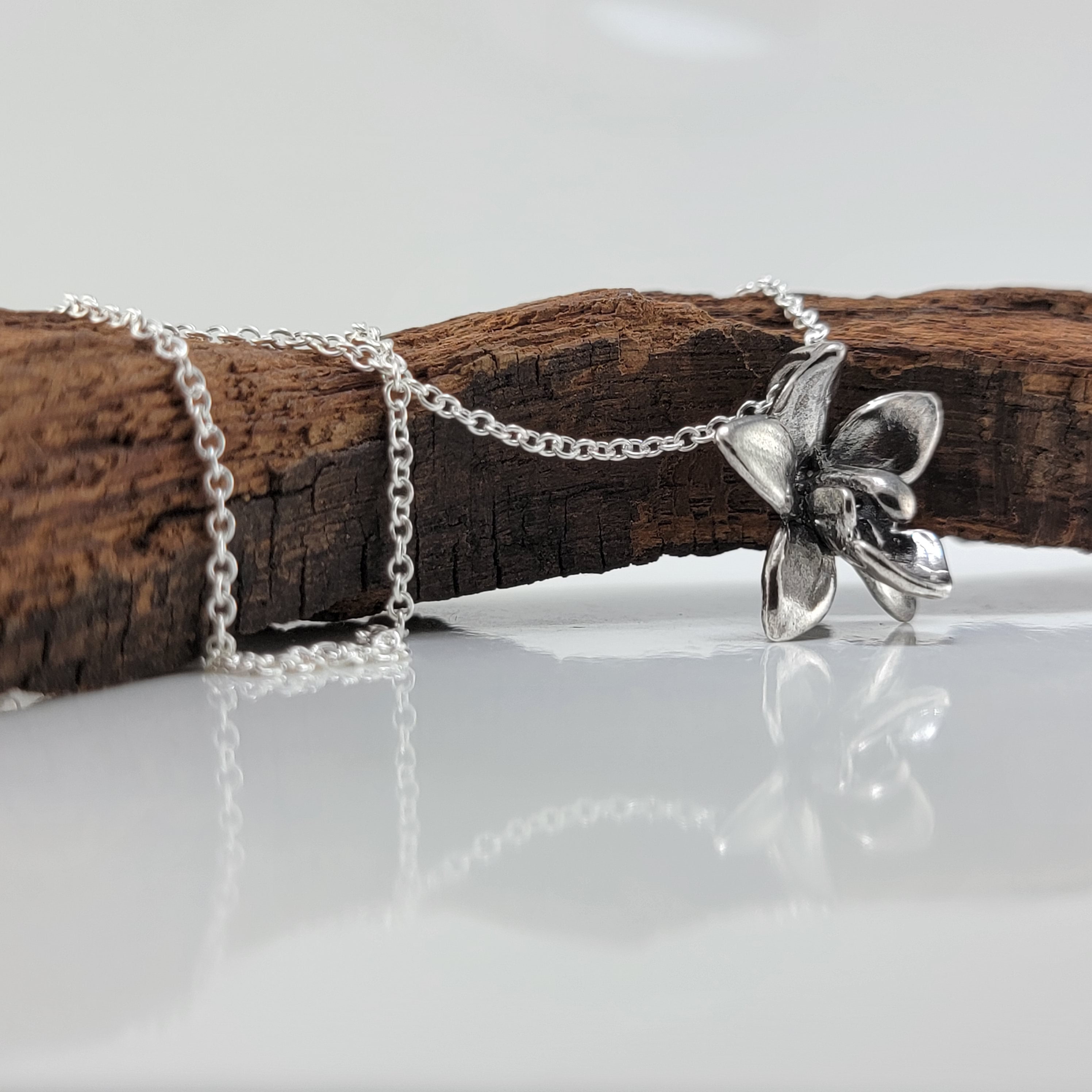 Elegant Dendrobium Orchid Necklace, Sterling Silver Floral Bridal Pendant by DV Jewelry Designs