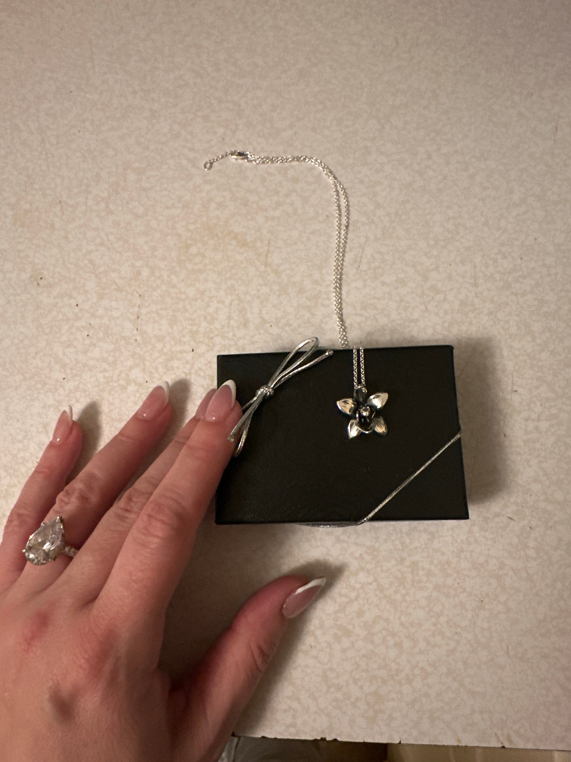 Elegant Dendrobium Orchid Necklace, Sterling Silver Floral Bridal Pendant