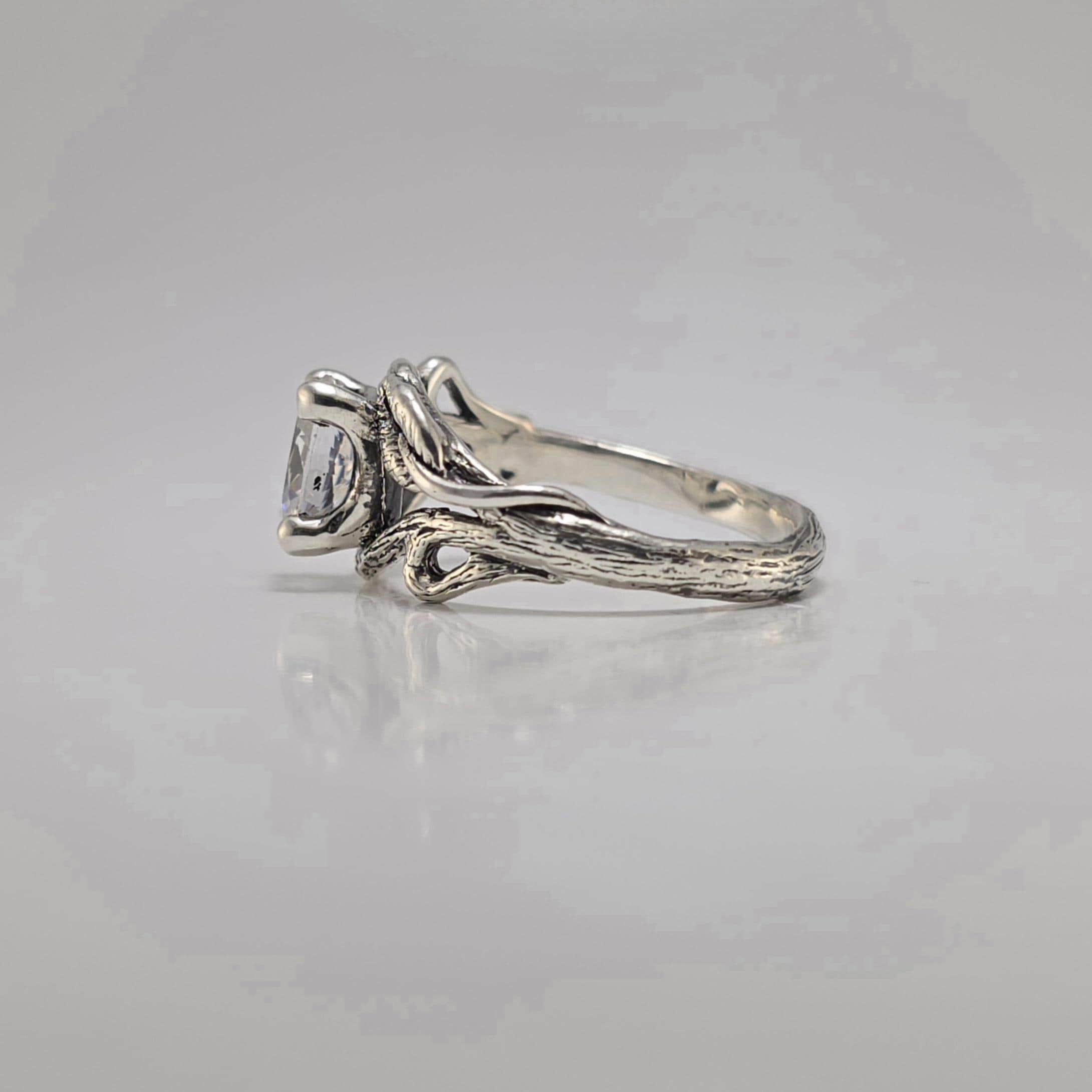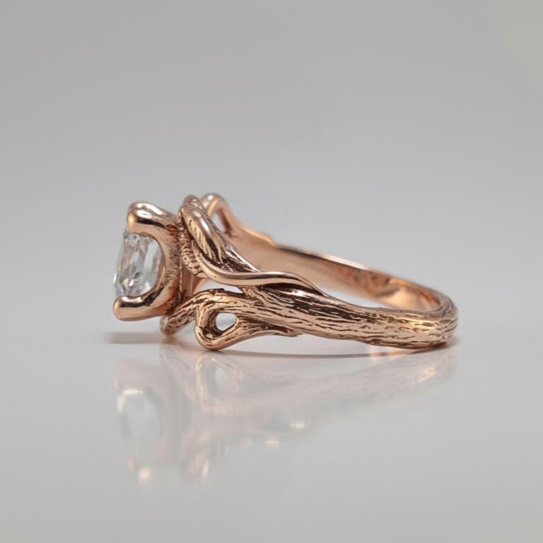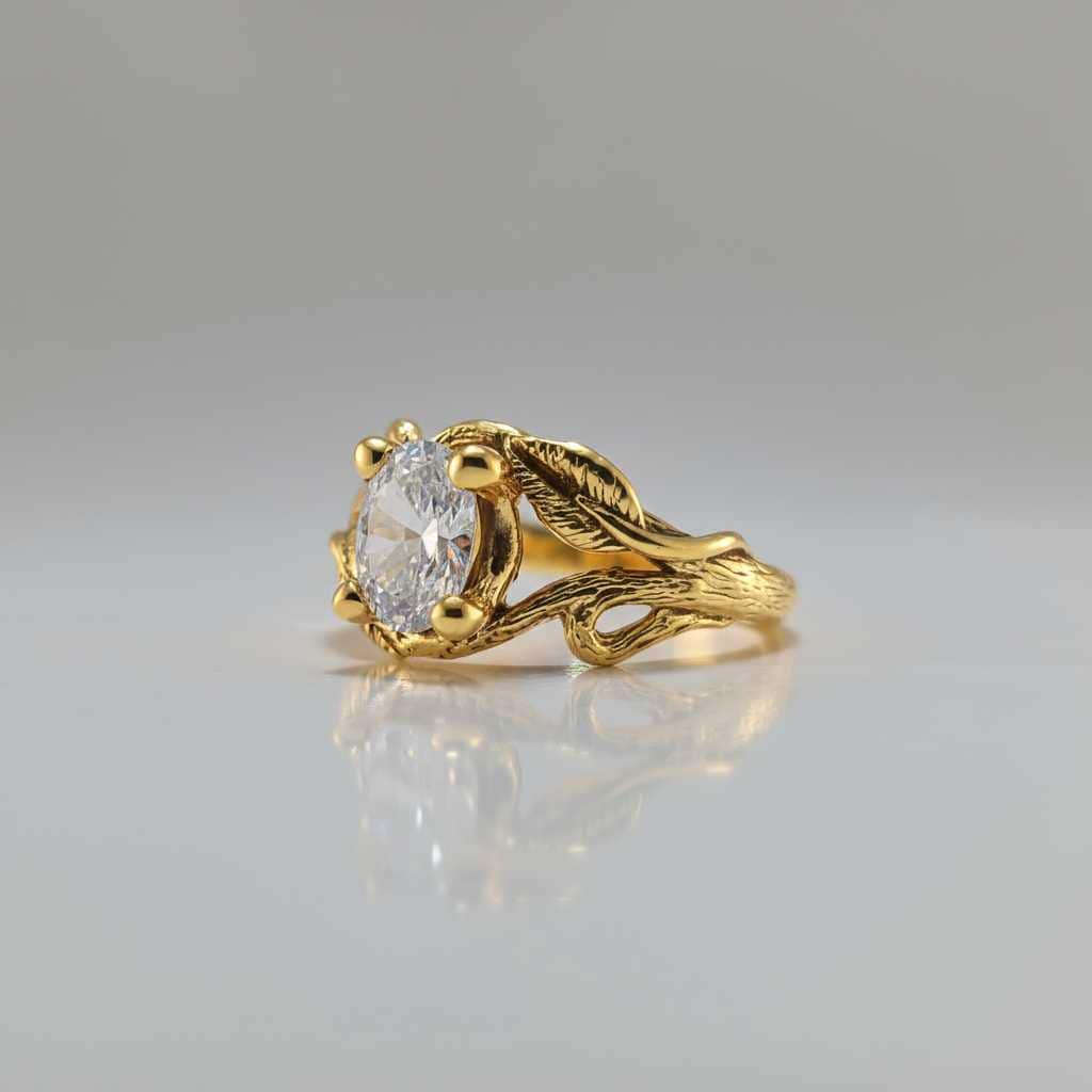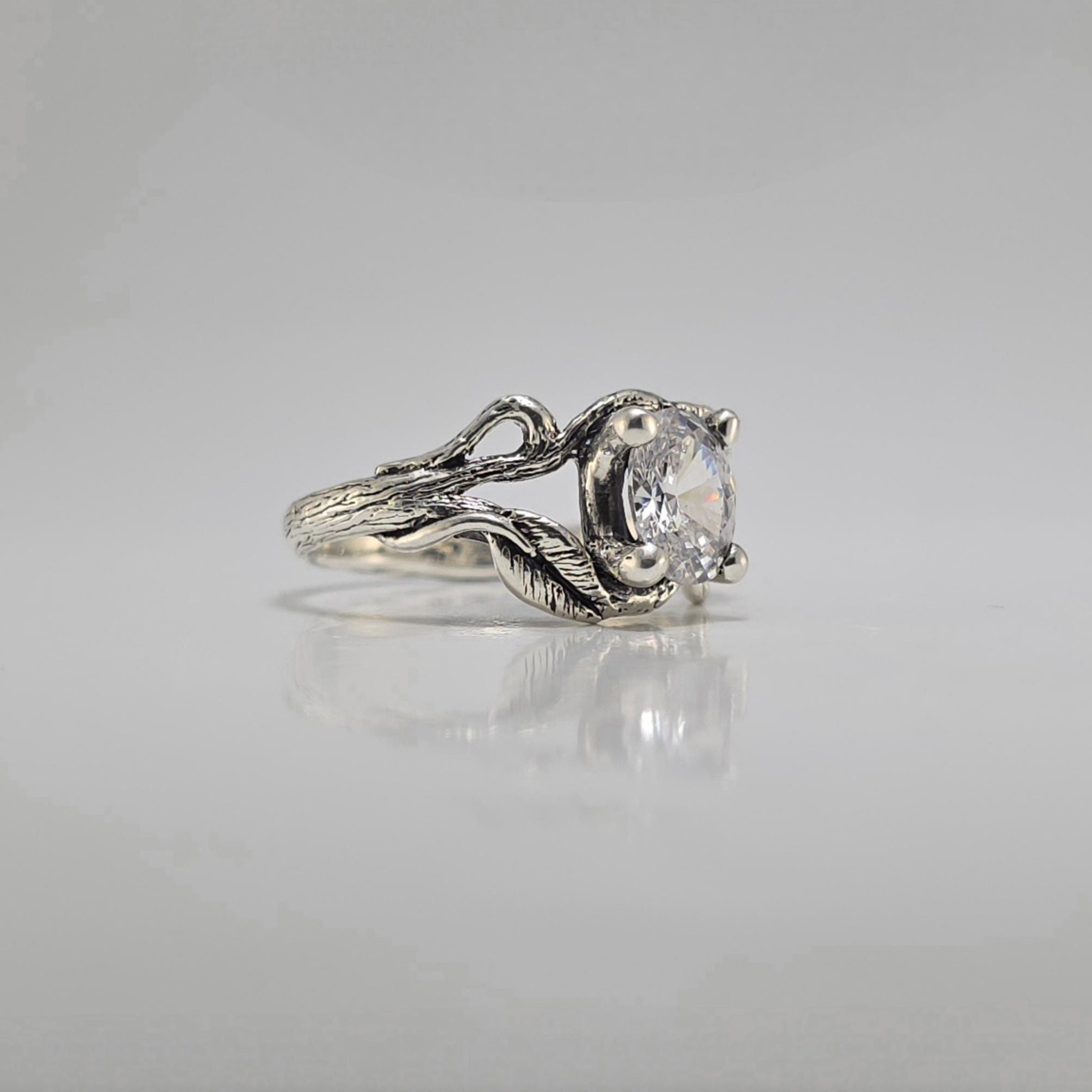 1.5ct Oval Moissanite Twig Engagement Ring – Handmade Nature-Inspired Branch & Leaf Design