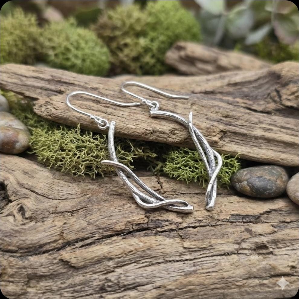 These sculptural earrings are designed to capture the graceful, twisting flow of natural branches. They gently curve below the ear, offering a look that is both rustic and refined. They are lightweight and comfortable, perfect for adding a touch of woodland whimsy to your everyday style.