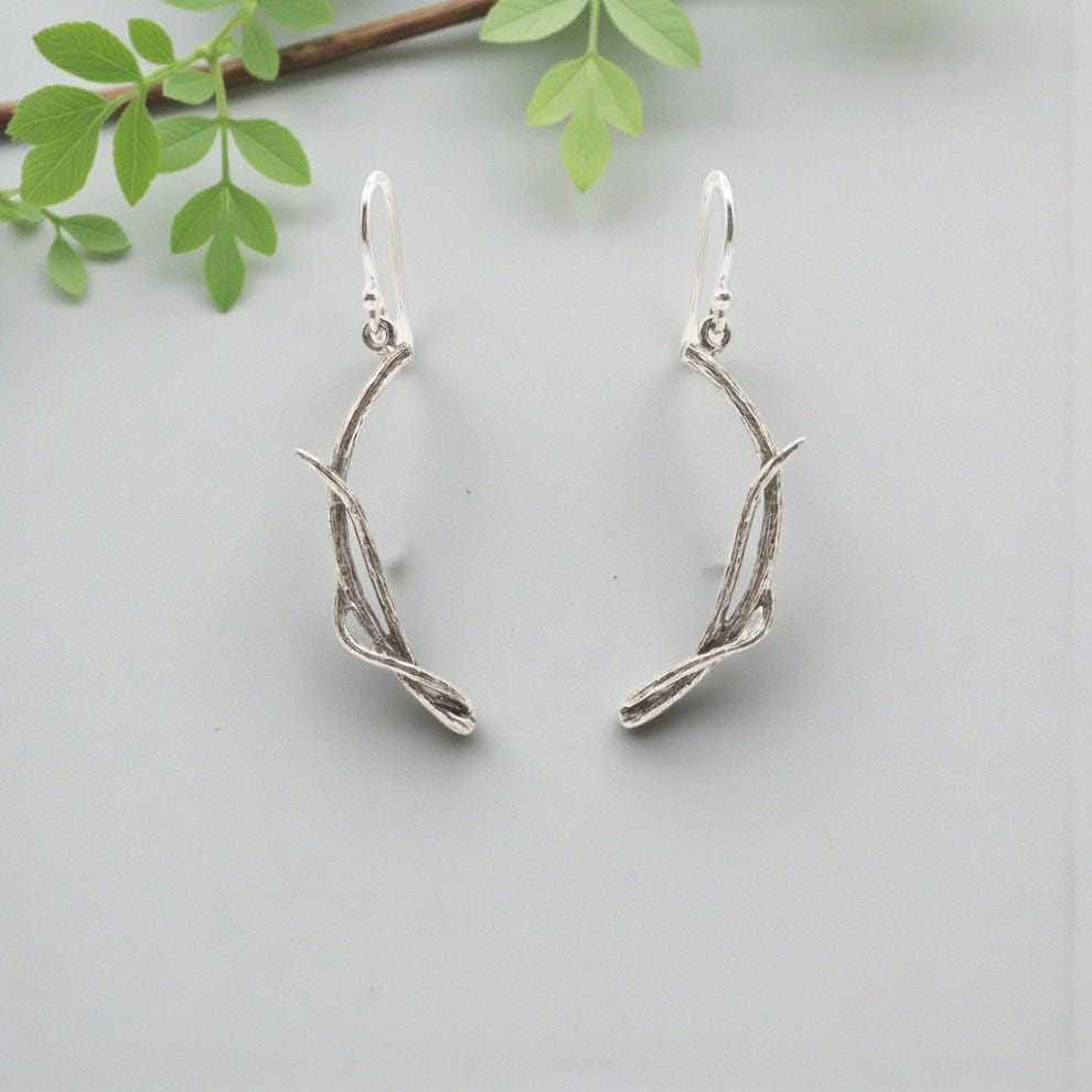 Sterling Silver Twig Earrings – Nature Woven Botanical Dangle Earrings, Valentine's Day Gift, Jewelry