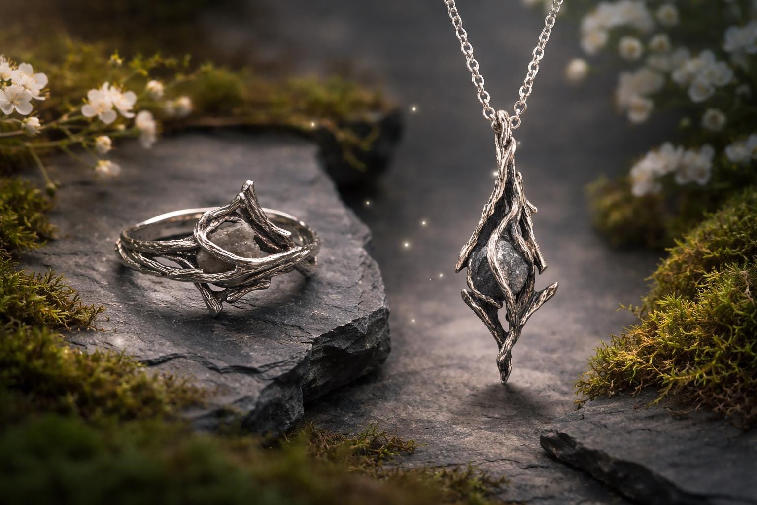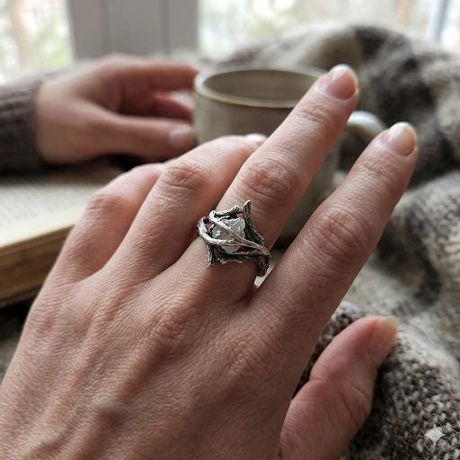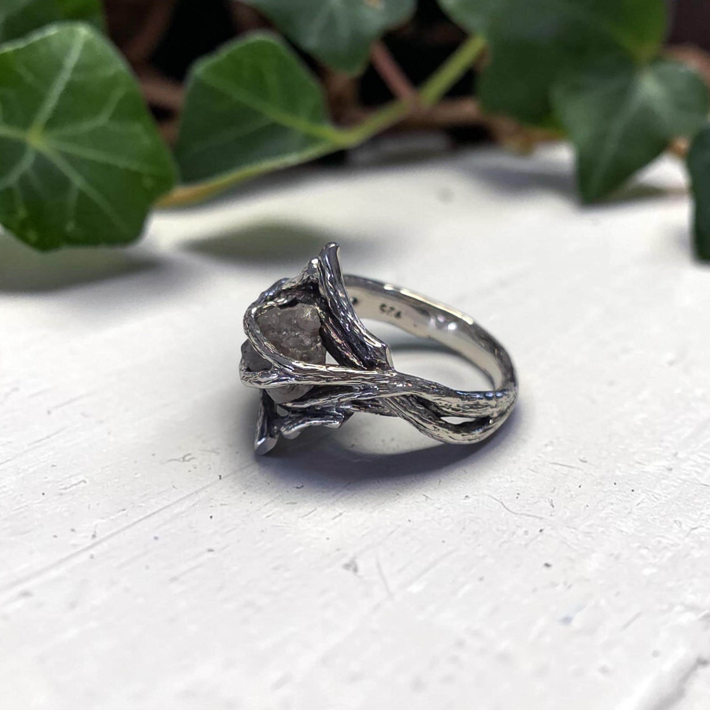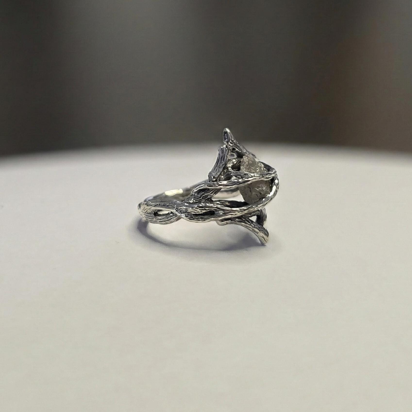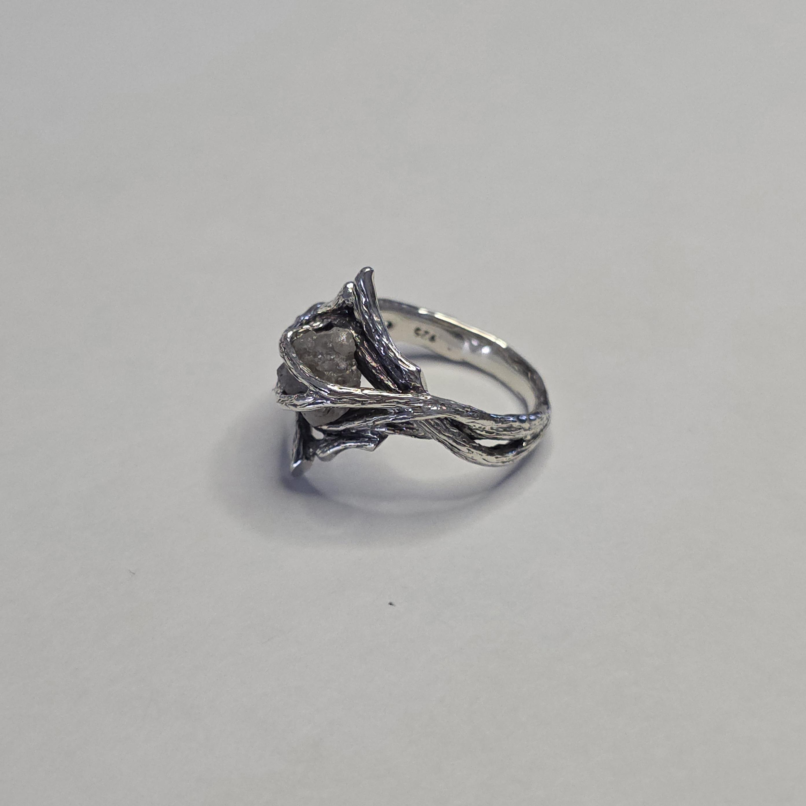 Rough Diamond Twig Ring - One-of-a-Kind Hand-Sculpted Branch Weave Style