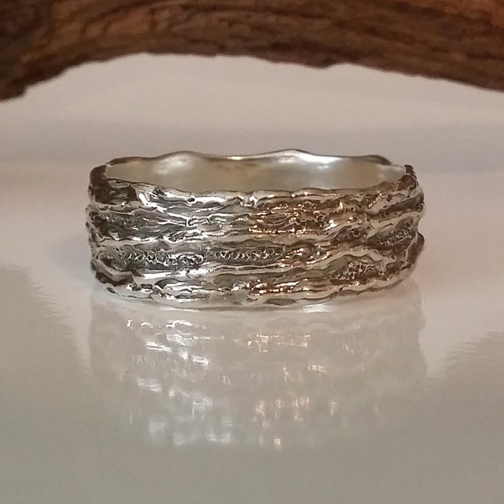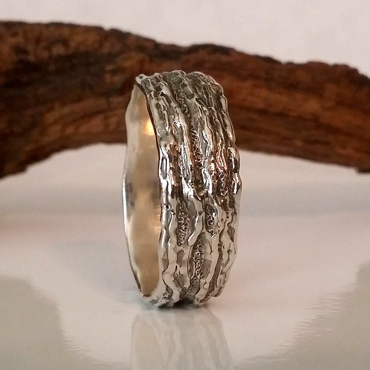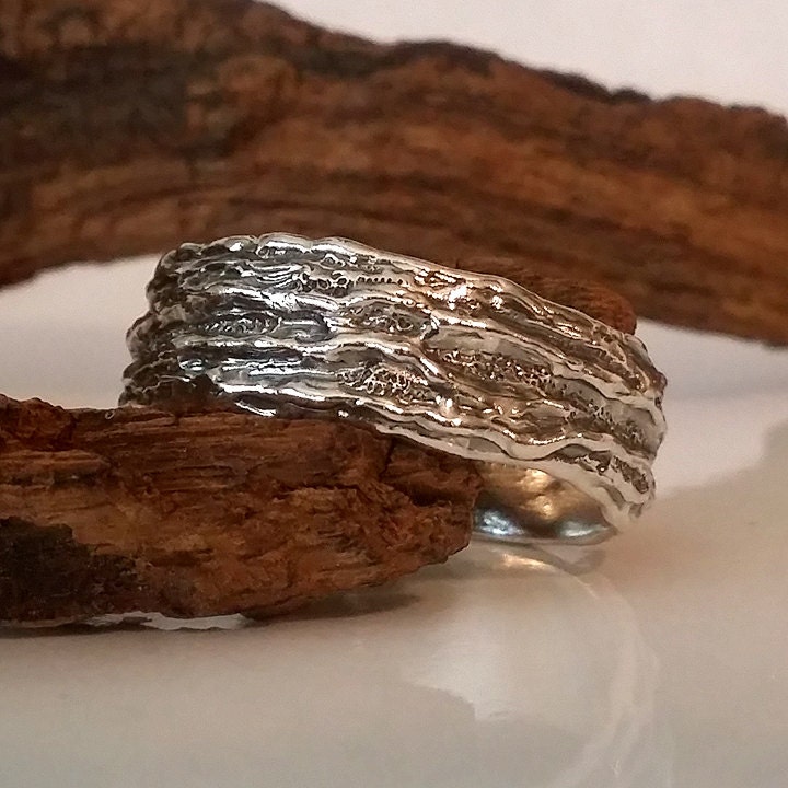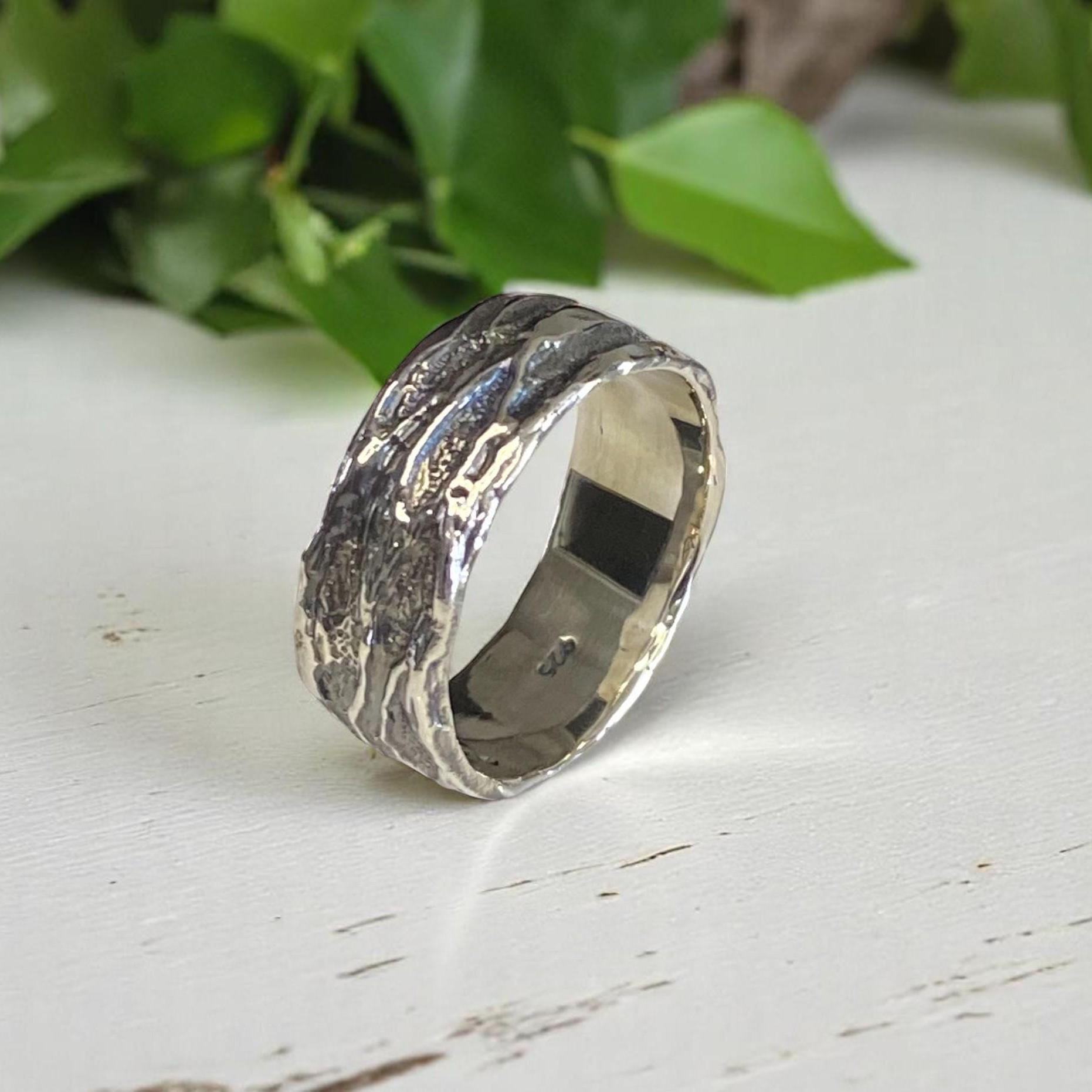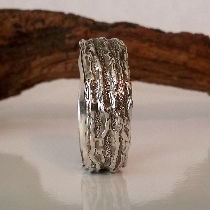 Sterling Silver Wood Texture Wide Men’s Wedding Band by DV Jewelry