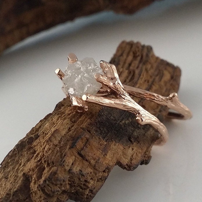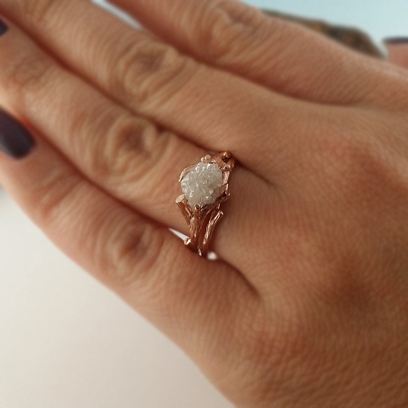 Made-to-Order Custom Twig Engagement Ring using a White Uncut Rough Diamonds in Rose Gold.