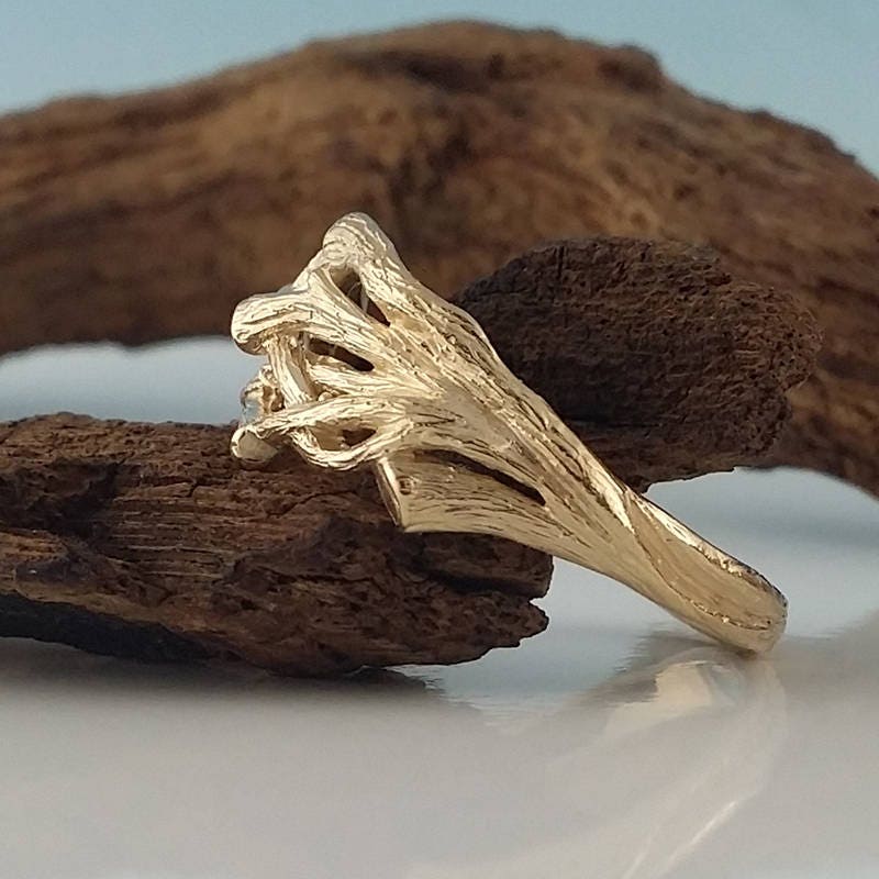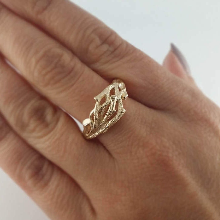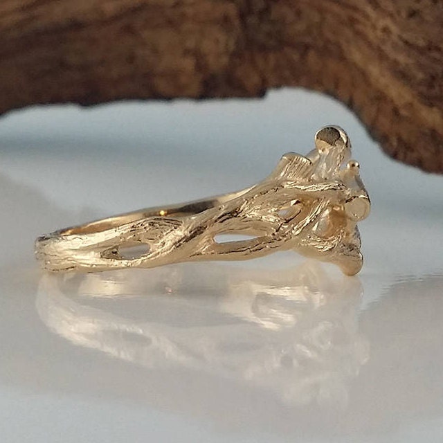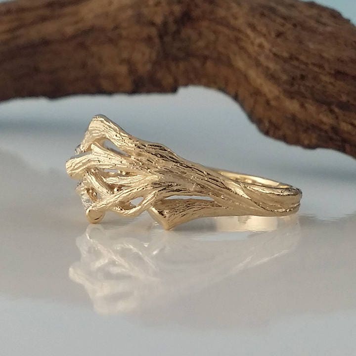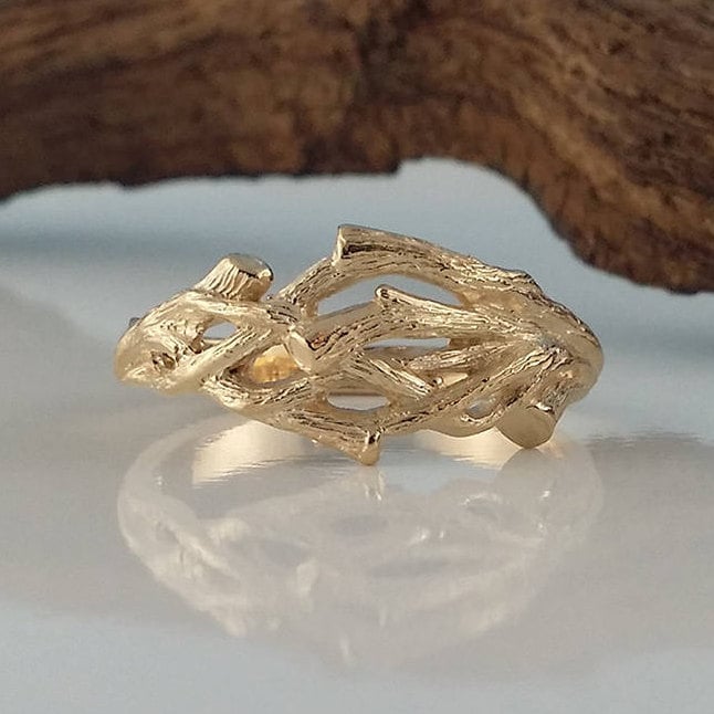 Men's Or Women's Organic Branch Wedding Band cast in solid 14k and 18k Gold.