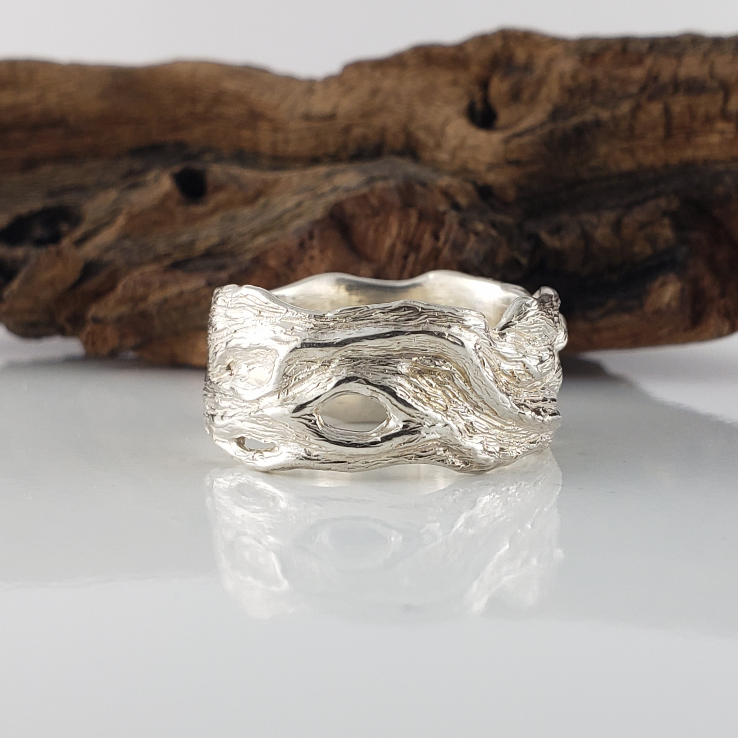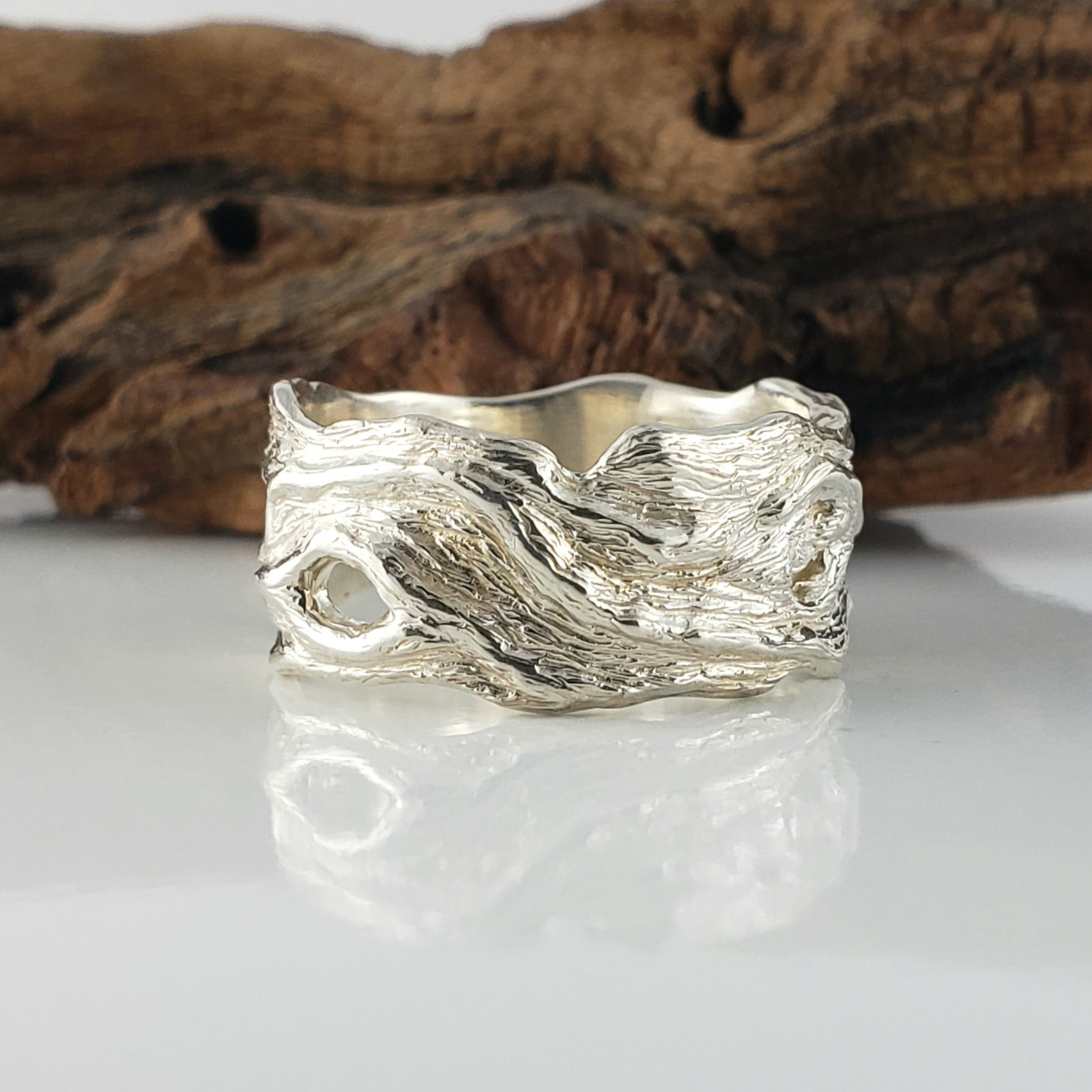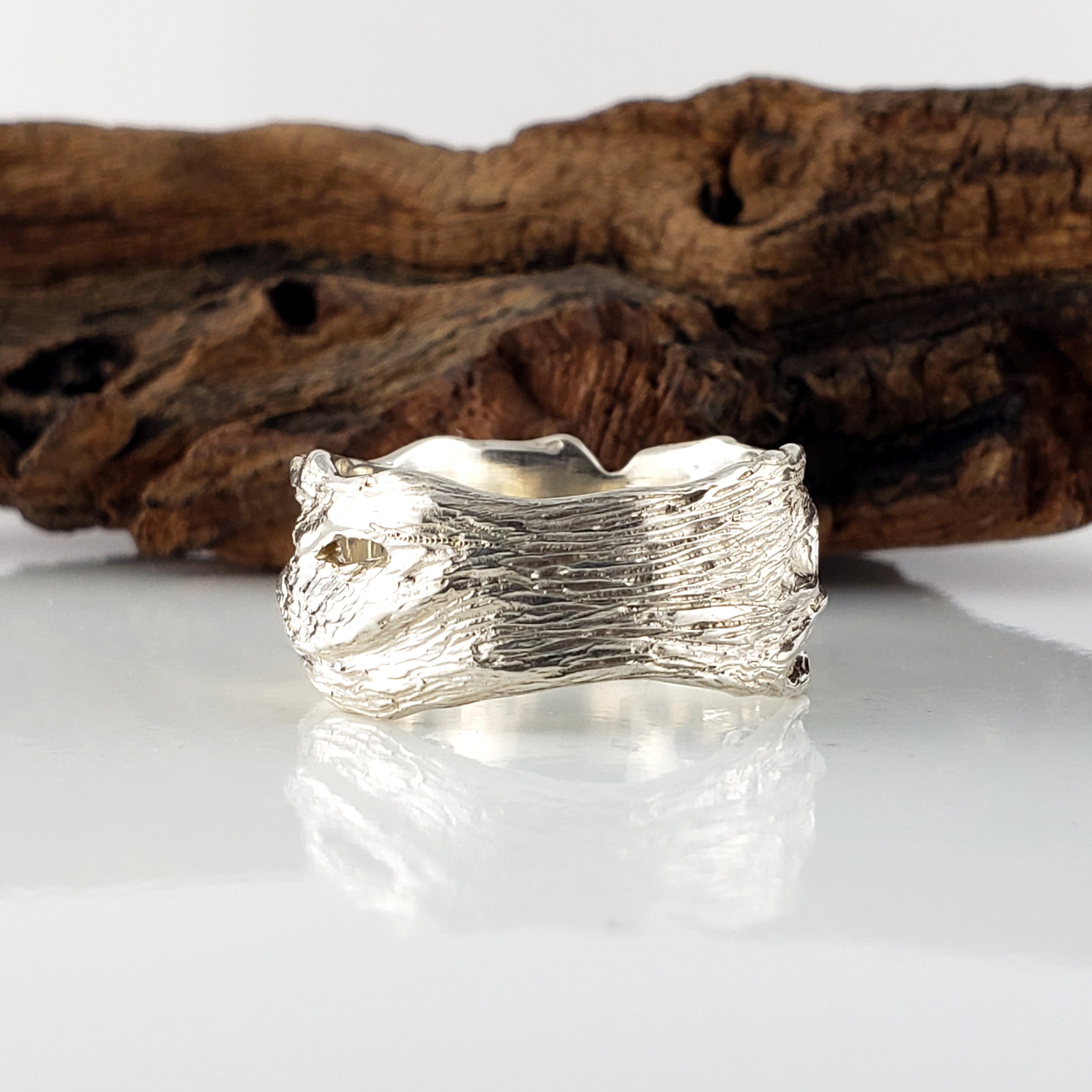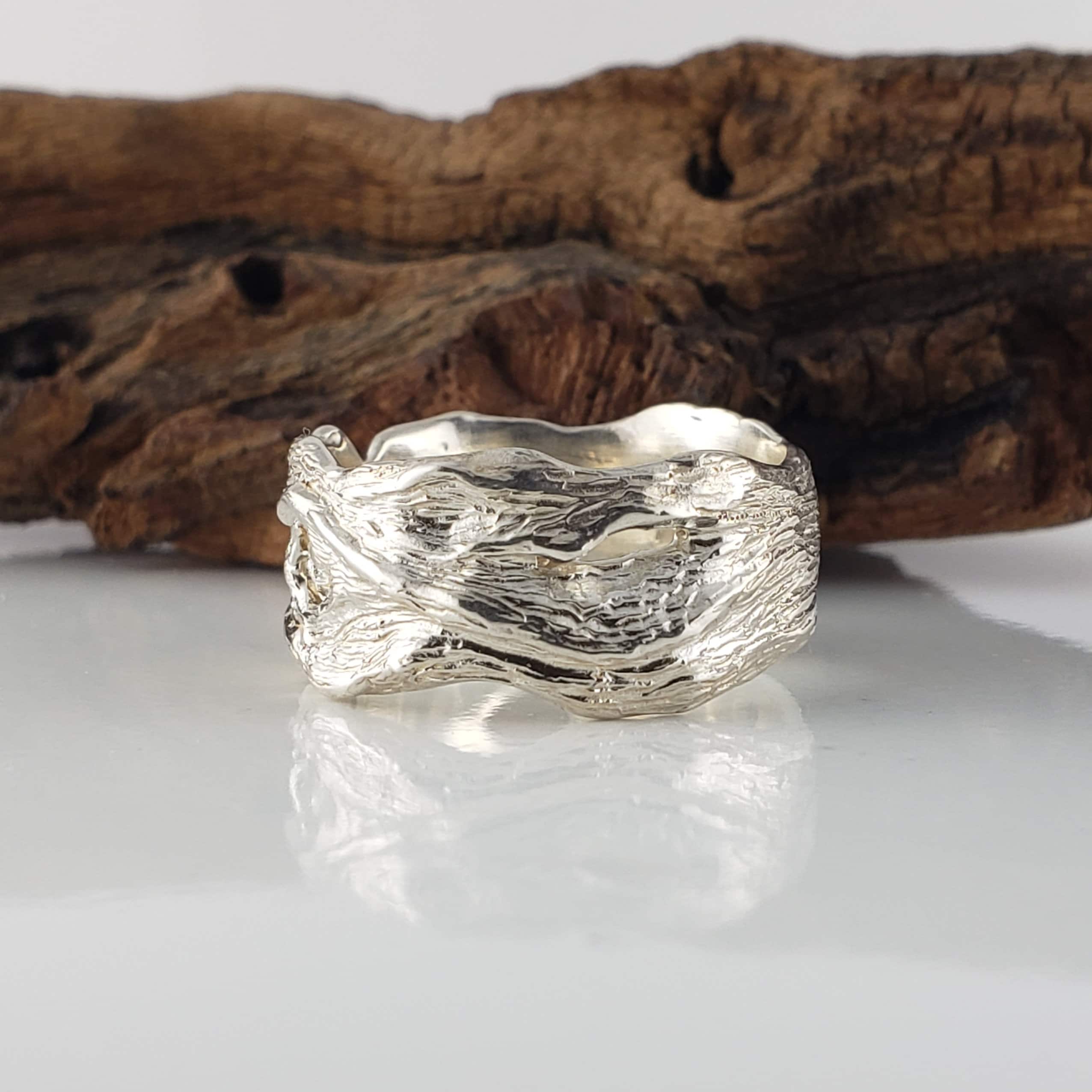 Unisex 14k or 18k Hand Sculpted Driftwood Inspired Wedding Band, or Statement Ring by Dawn