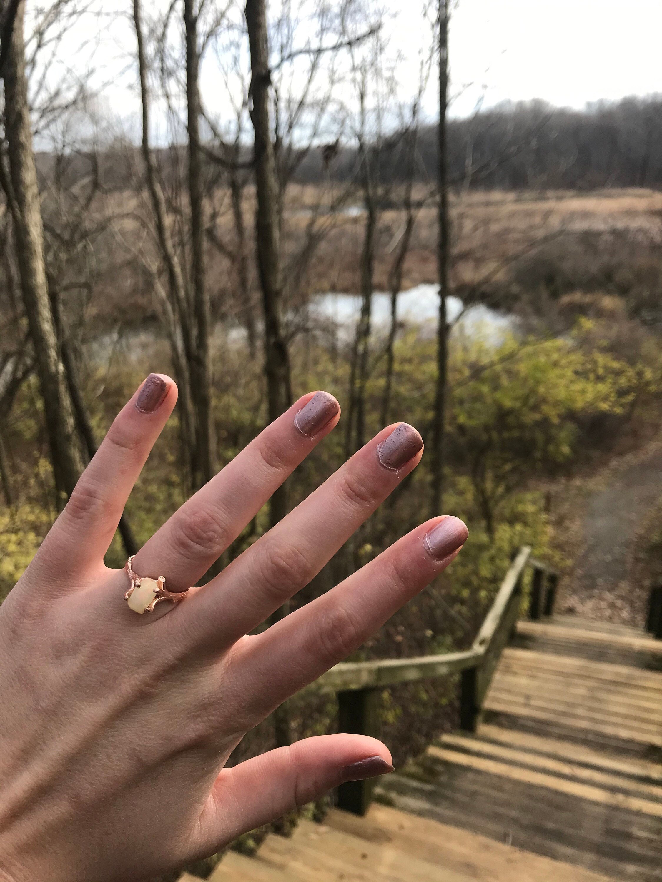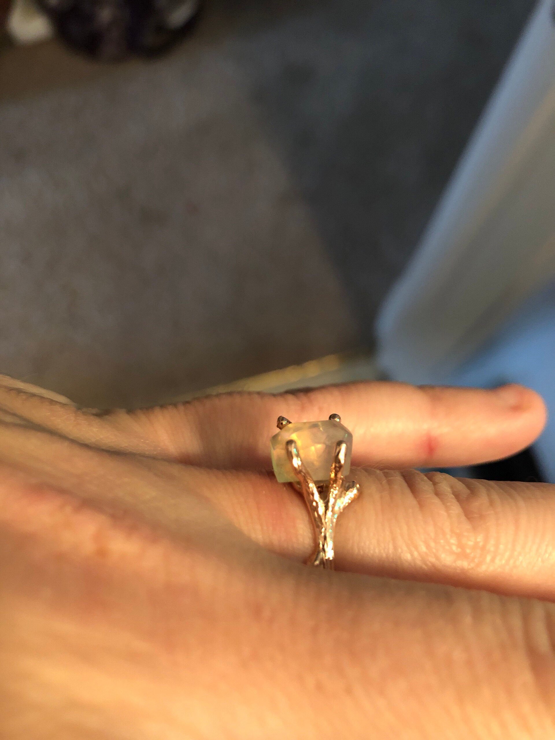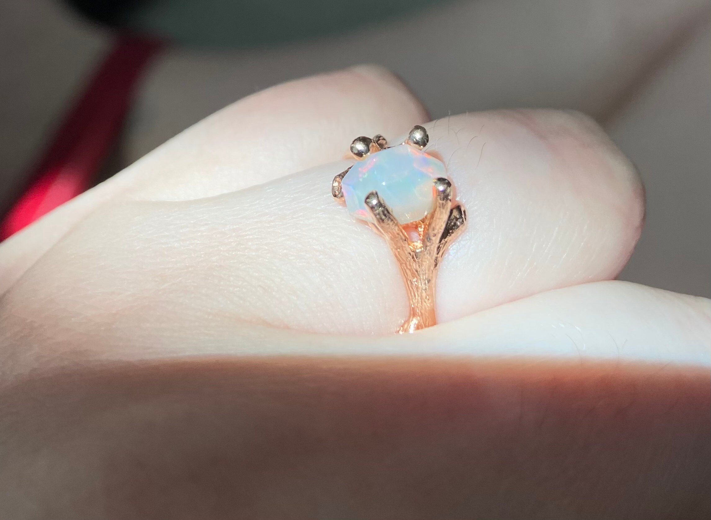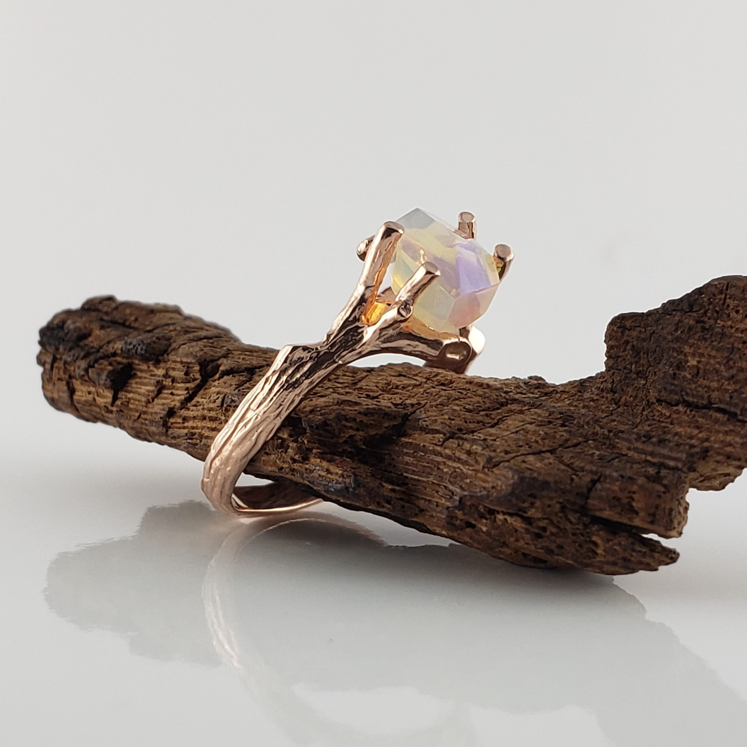 Opal Engagement Ring: Hand-Cut Gem, 14k Rose Gold Twig Band