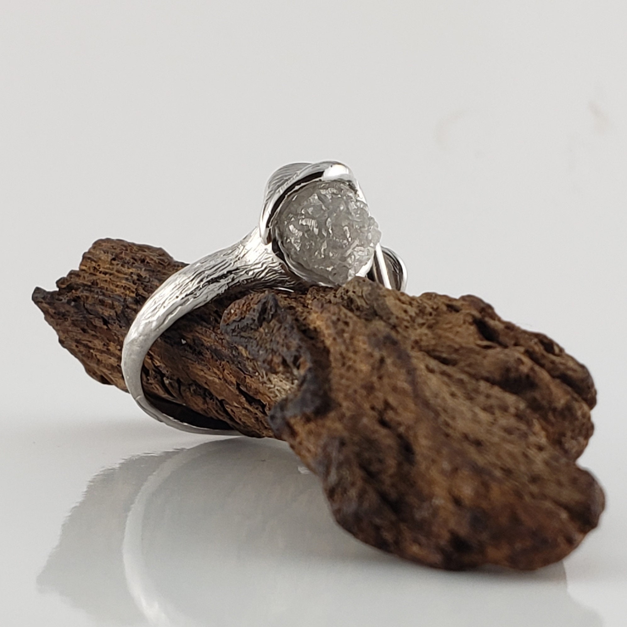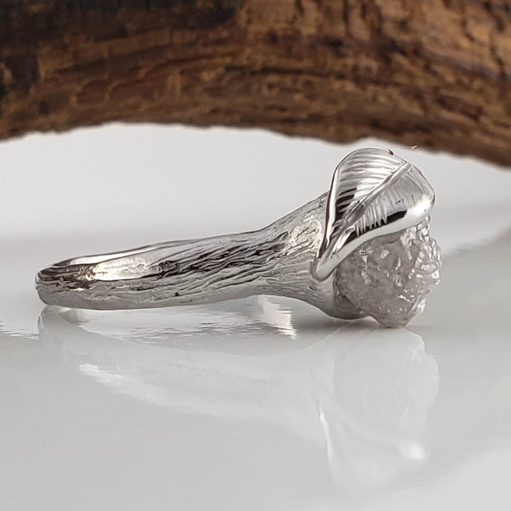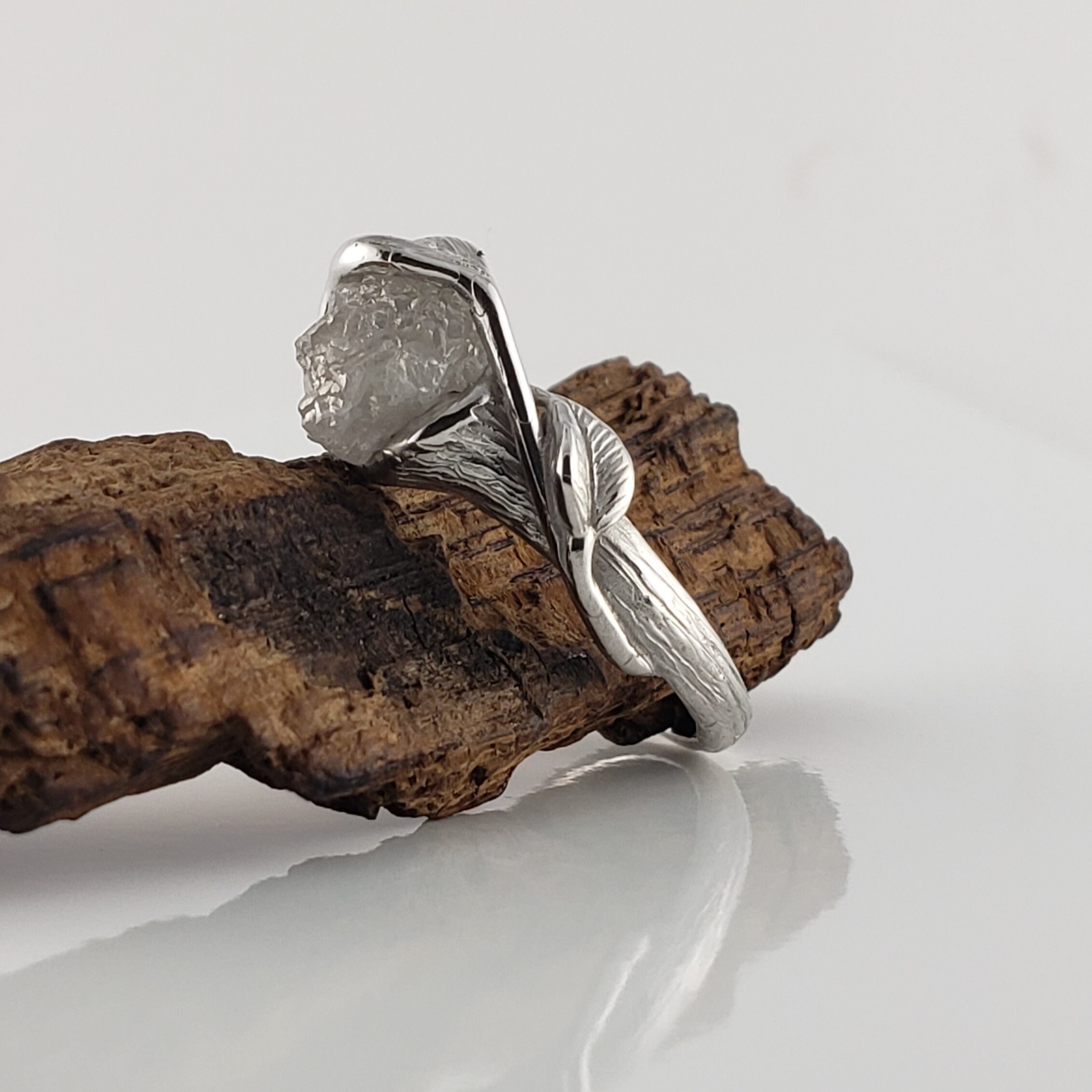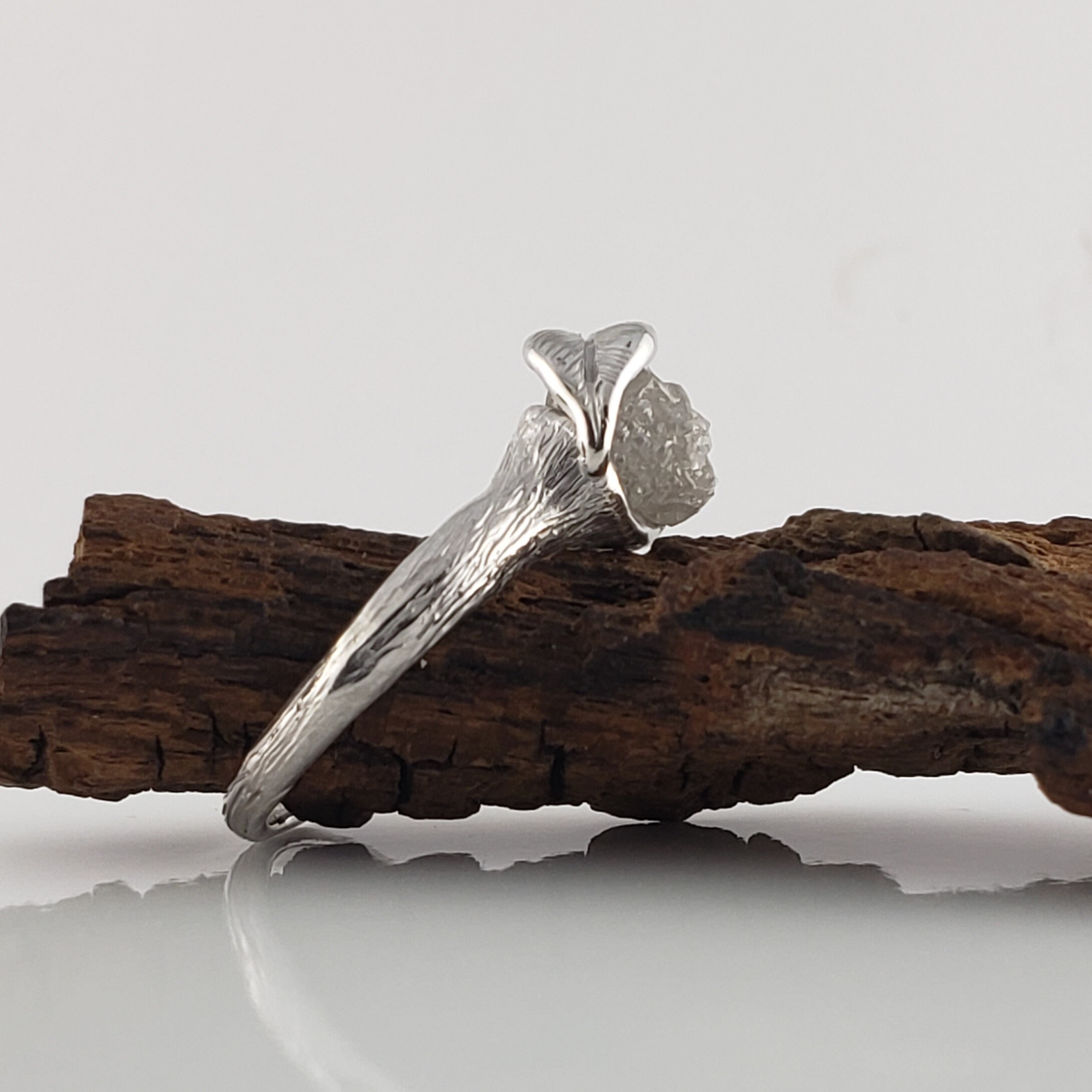 Custom Twig Engagement Ring with White Uncut Rough Diamond