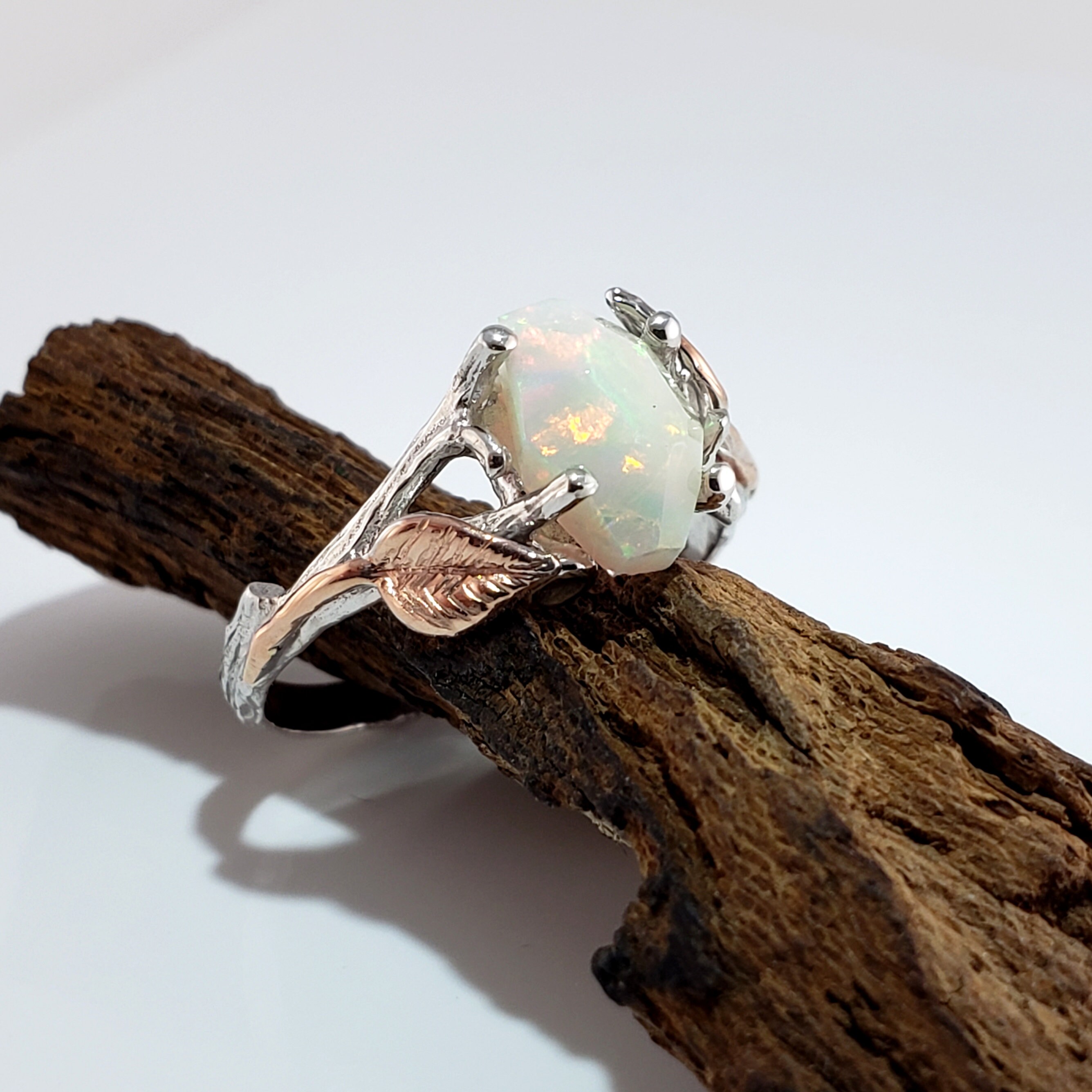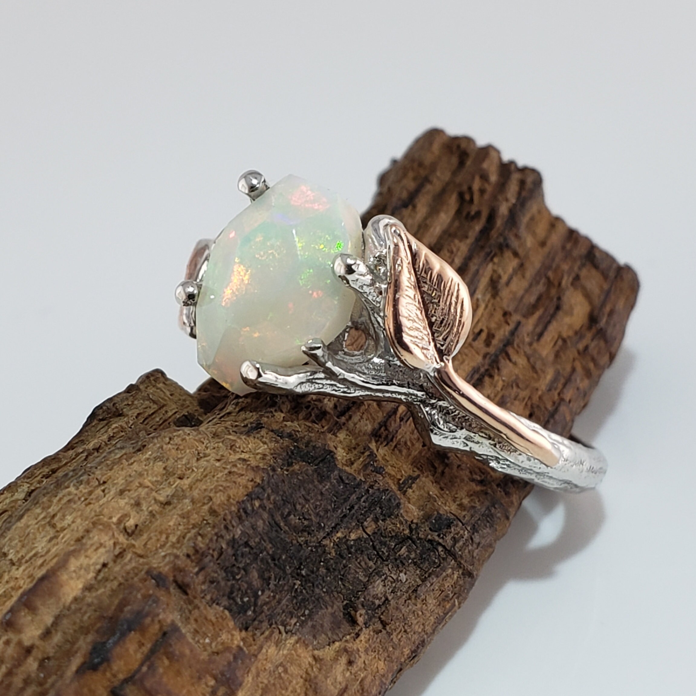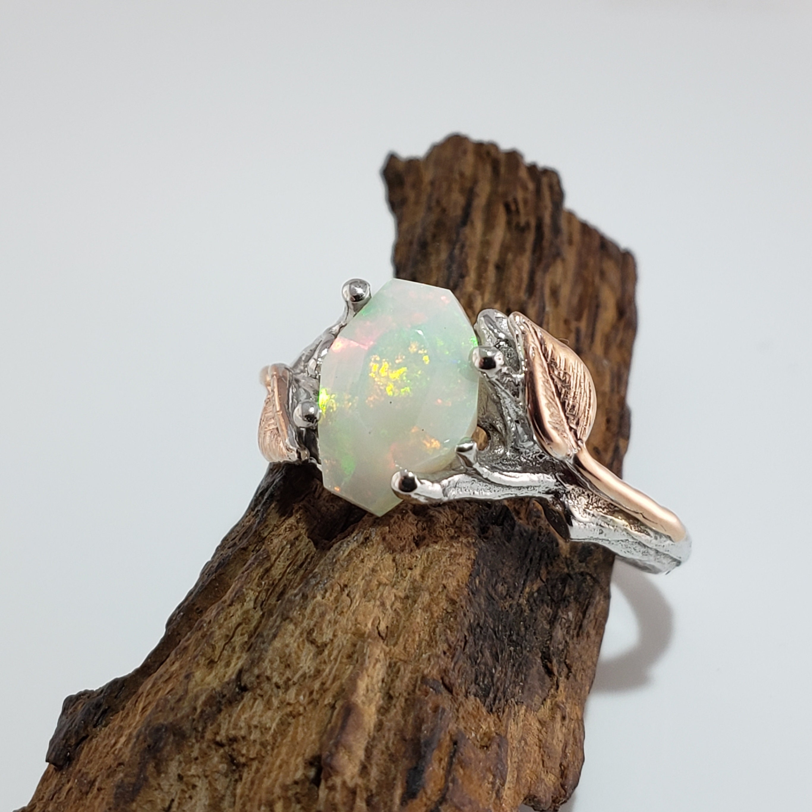 Leaf and Twig Engagement Ring, Two Tone Gold Raw Opal Ring, Unique Engagement Ring, Opal Engagement Ring Hand sculpted by Dawn Vertrees